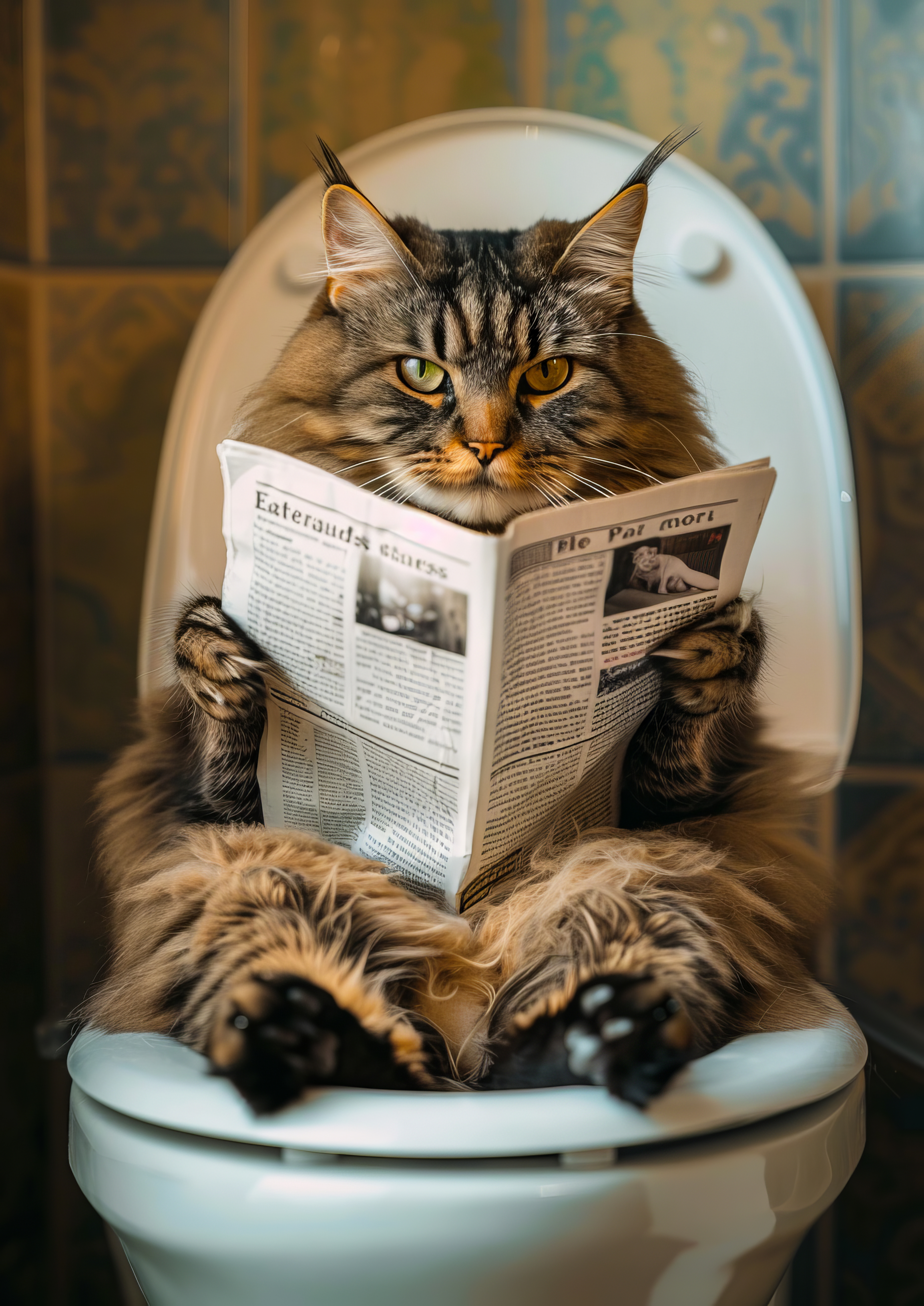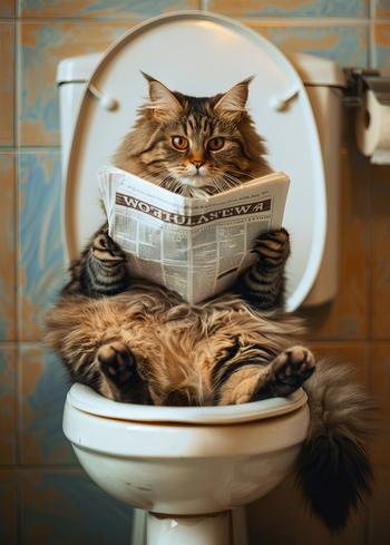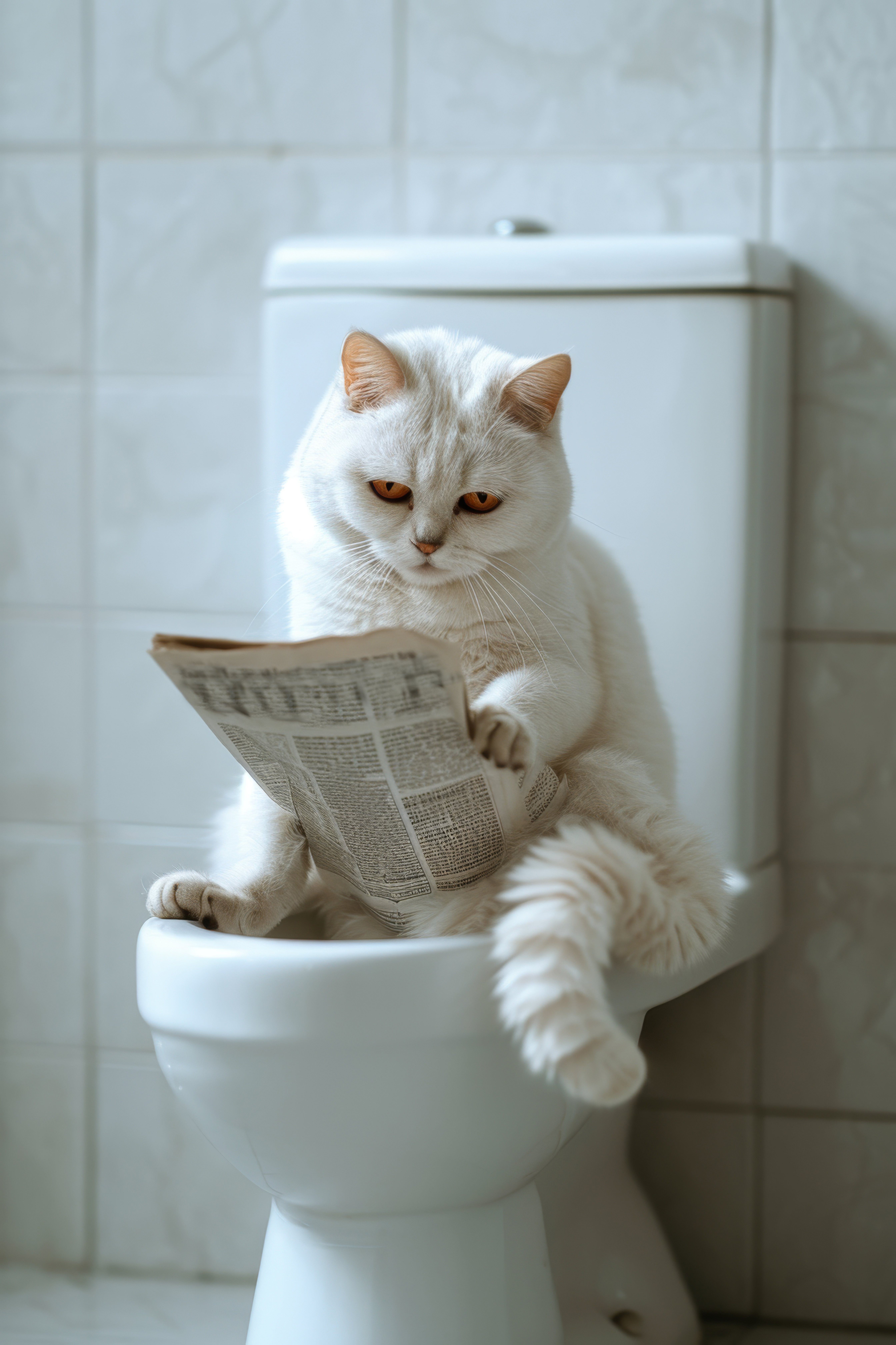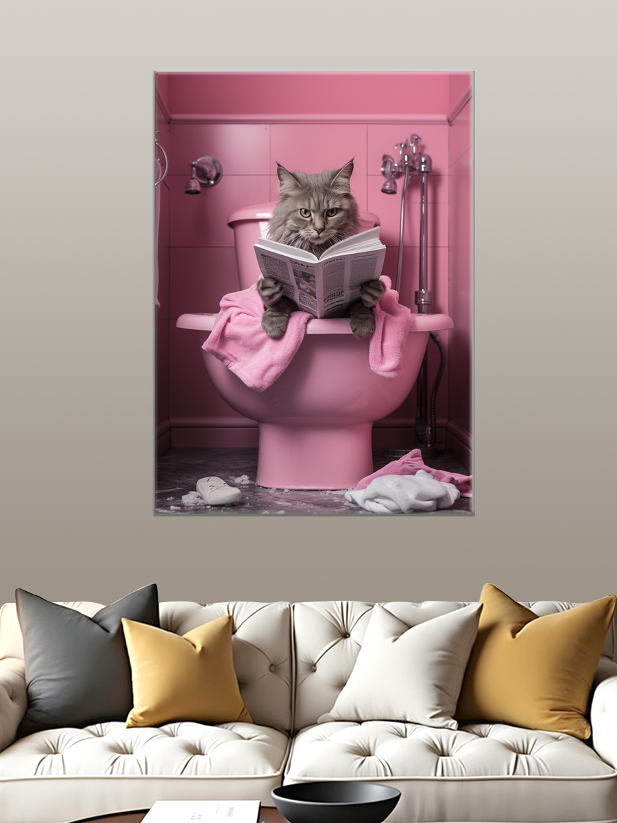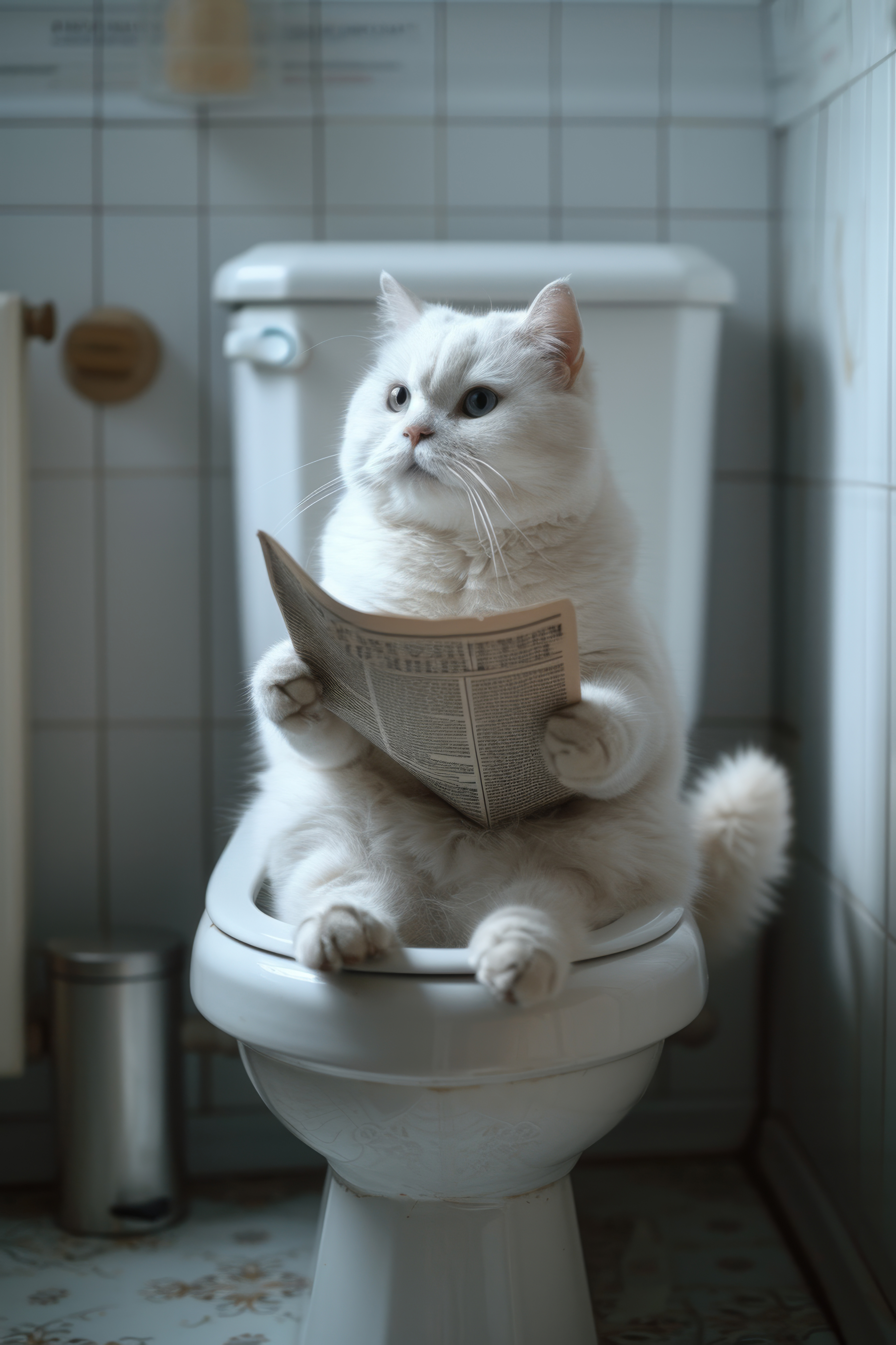 Описание: Картина 50 на 70 'Кошка с газетой' изображает игривую белую кошку, удобно устроившуюся на унитазе, внимательно читающую газету. Эта уникальная работа привлекает внимание своим юмором и игривостью, создавая атмосферу легкости и веселья в вашем доме. Кошка, с выразительными оранжевыми глазами, словно погружена в мир новостей, что вызывает улыбку у каждого, кто на нее смотрит. Эмоции, которые вызывает эта картина, — это радость и умиротворение. Она добавляет немного игривости и тепла в любую обстановку, идеально подходя для создания уютного уголка в вашем доме. Представьте, как она будет радовать вас и ваших гостей, привнося в интерьер нотку оригинальности и шутливости. Эта картина станет великолепным акцентом в ванной комнате, туалете или даже в кухне. Благодаря своим светлым и нейтральным оттенкам, она гармонично впишется в любой интерьер — от современного до классического — и украсит пространство, добавляя ему индивидуальности. 'Кошка с газетой' — это не просто картина, это элемент, который оживит ваш дом и поднимет настроение каждый день.
