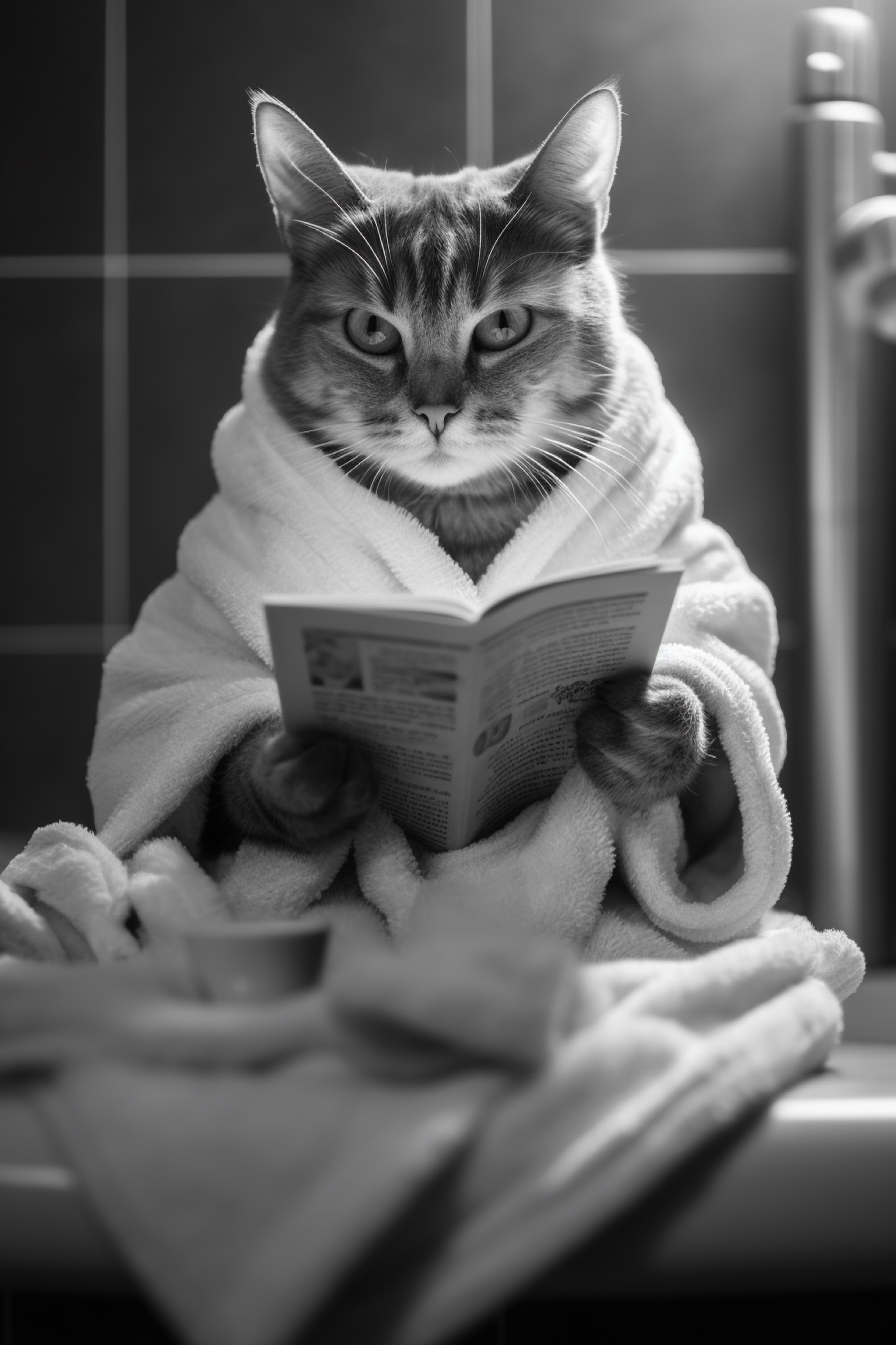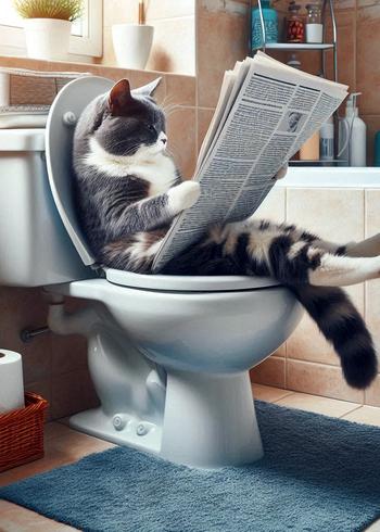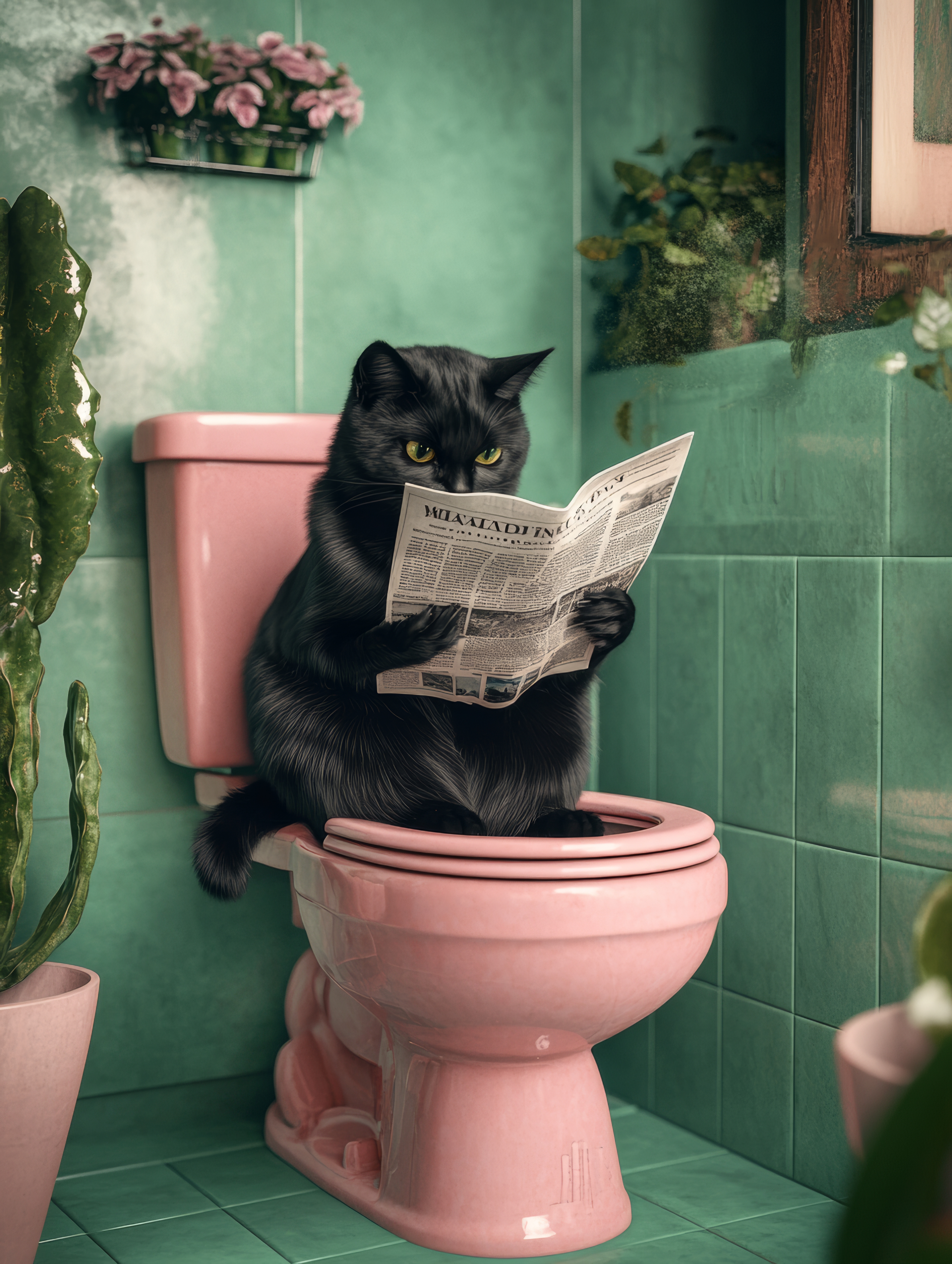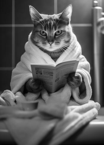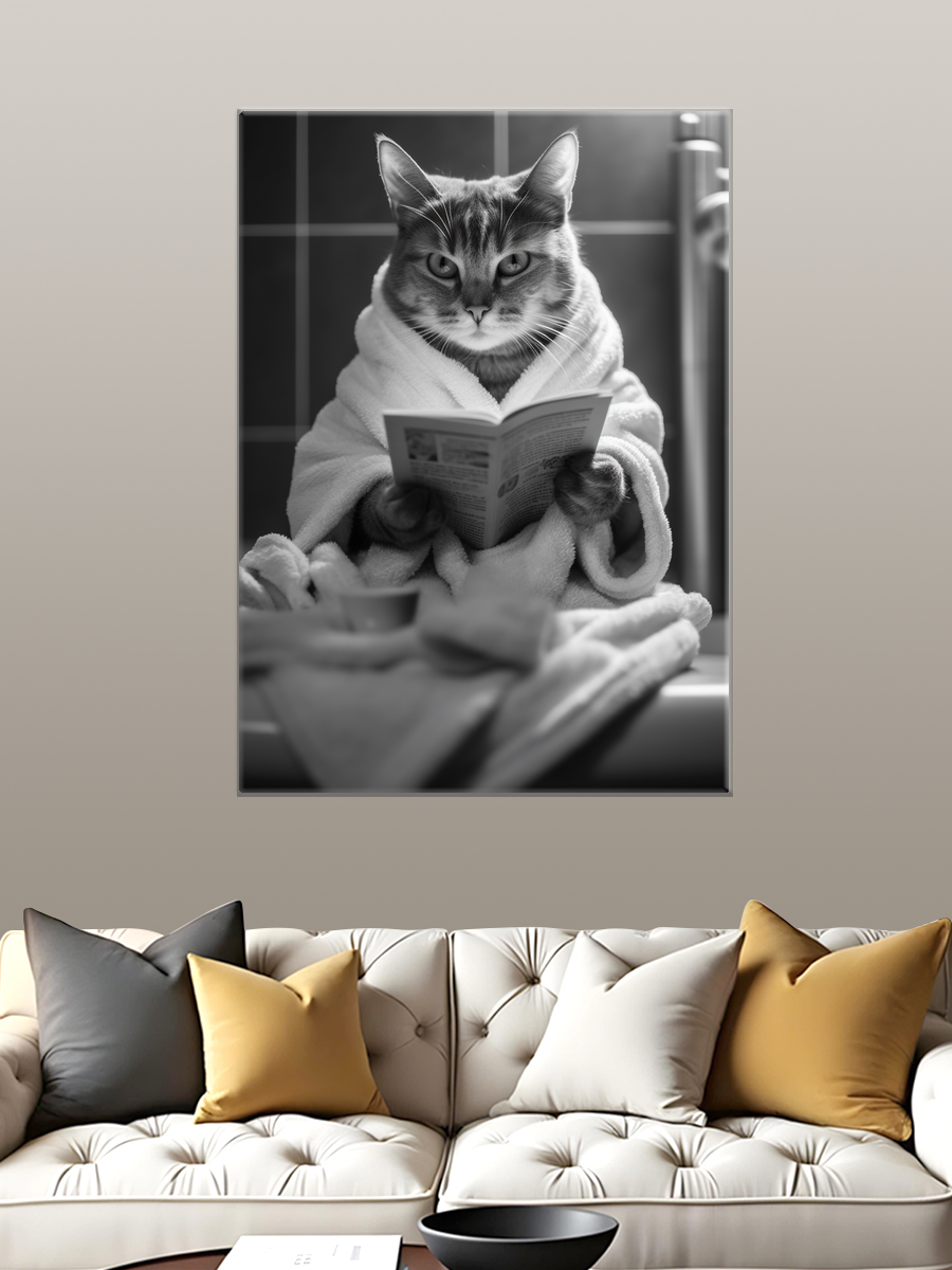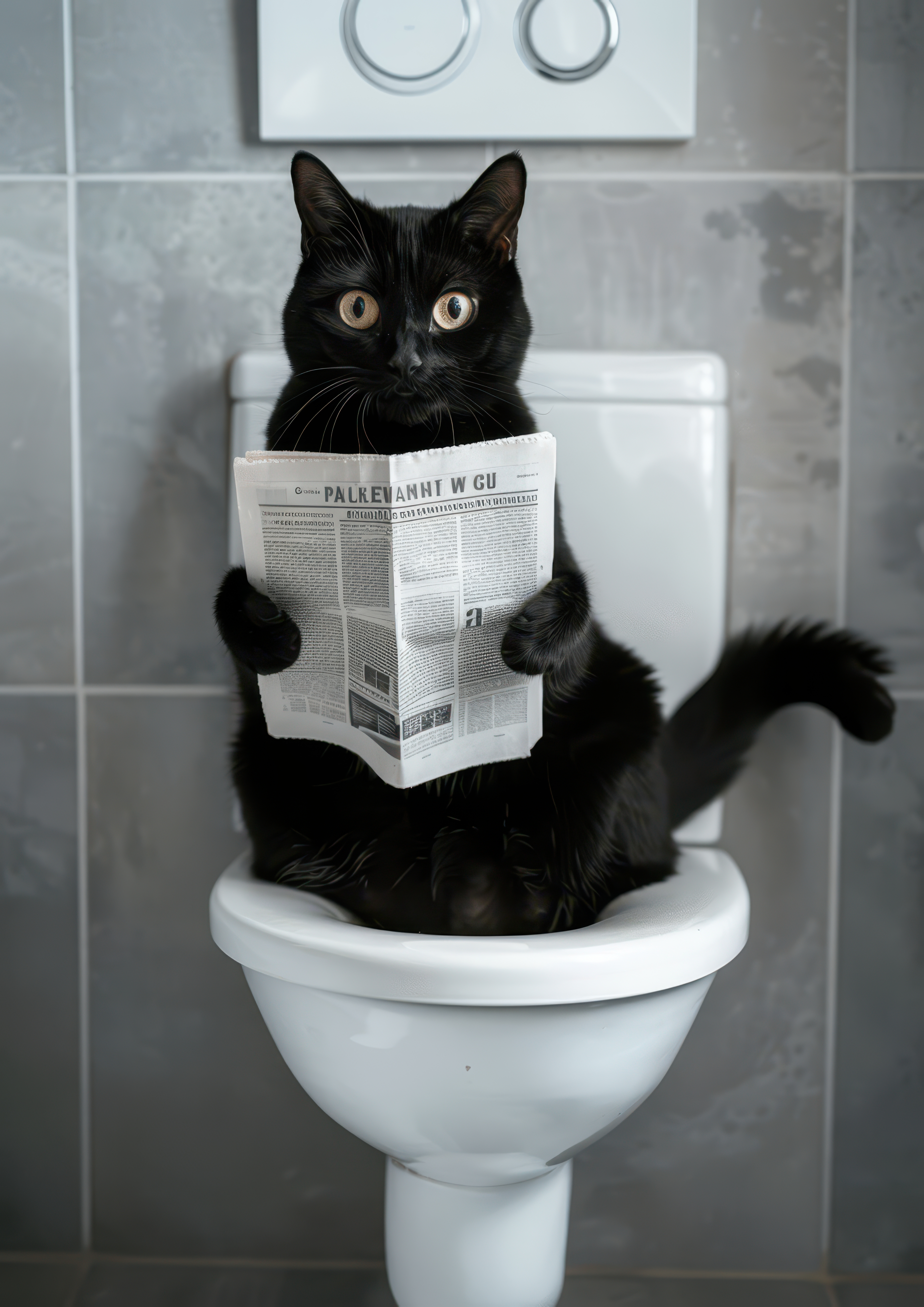 Описание: Картина 50 на 70 'Кошка с газетой' изображает игривую белую кошку, удобно устроившуюся на унитазе, внимательно читающую газету. Эта уникальная работа привлекает внимание своим юмором и игривостью, создавая атмосферу легкости и веселья в вашем доме. Кошка, с выразительными оранжевыми глазами, словно погружена в мир новостей, что вызывает улыбку у каждого, кто на нее смотрит. Эмоции, которые вызывает эта картина, — это радость и умиротворение. Она добавляет немного игривости и тепла в любую обстановку, идеально подходя для создания уютного уголка в вашем доме. Представьте, как она будет радовать вас и ваших гостей, привнося в интерьер нотку оригинальности и шутливости. Эта картина станет великолепным акцентом в ванной комнате, туалете или даже в кухне. Благодаря своим светлым и нейтральным оттенкам, она гармонично впишется в любой интерьер — от современного до классического — и украсит пространство, добавляя ему индивидуальности. 'Кошка с газетой' — это не просто картина, это элемент, который оживит ваш дом и поднимет настроение каждый день.
