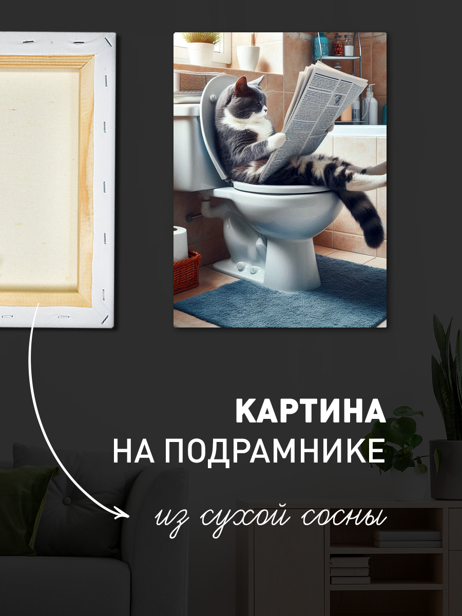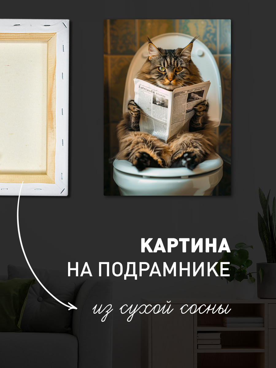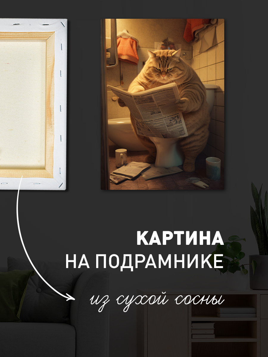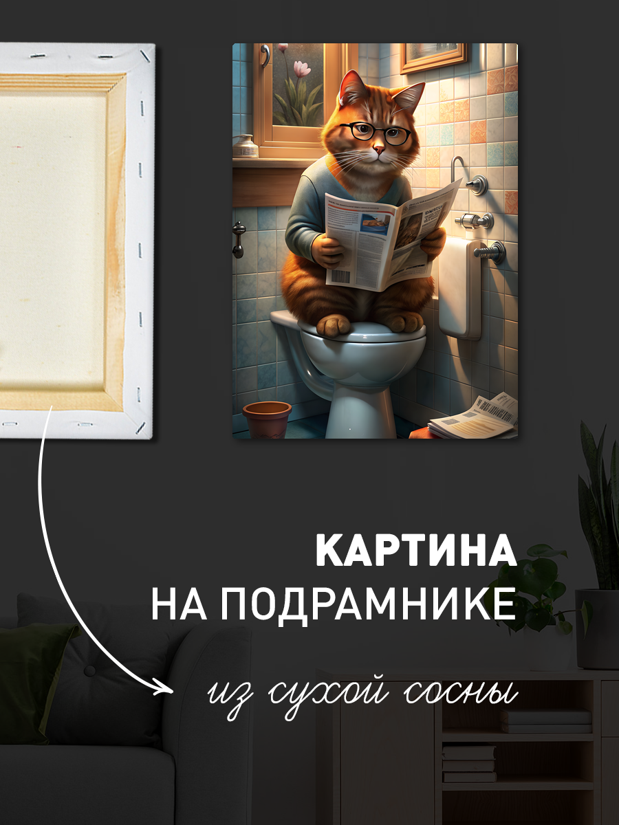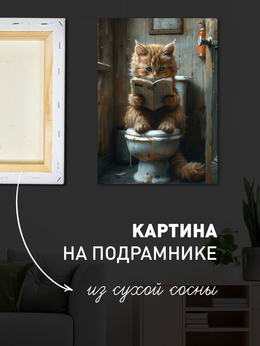 Описание: Картина 50 на 70 "Кот на унитазе" изображает забавного кота, сосредоточенно читающего газету, сидя на унитазе. Эта уникальная композиция вызывает улыбку и легкость, превращая повседневный момент в нечто смешное и неожиданное. Кот с пушистой золотистой шерстью и выразительными глазами создает атмосферу комфорта и уюта, а его занятие добавляет нотку игривости. Эта картина станет отличным акцентом в любом интерьере — от уютной кухни до стильной ванной комнаты. Она прекрасно впишется в пространство, оформленное в современном, минималистичном или даже ретро-стиле, добавляя живости и очарования. Представьте, как эта картина будет радовать вас и ваших гостей, вызывая легкую улыбку и создавая непринужденную атмосферу. Она идеально подойдет для людей с хорошим чувством юмора и любовью к животным. Не упустите возможность добавить в свой дом частичку счастья и позитива с этим произведением искусства!