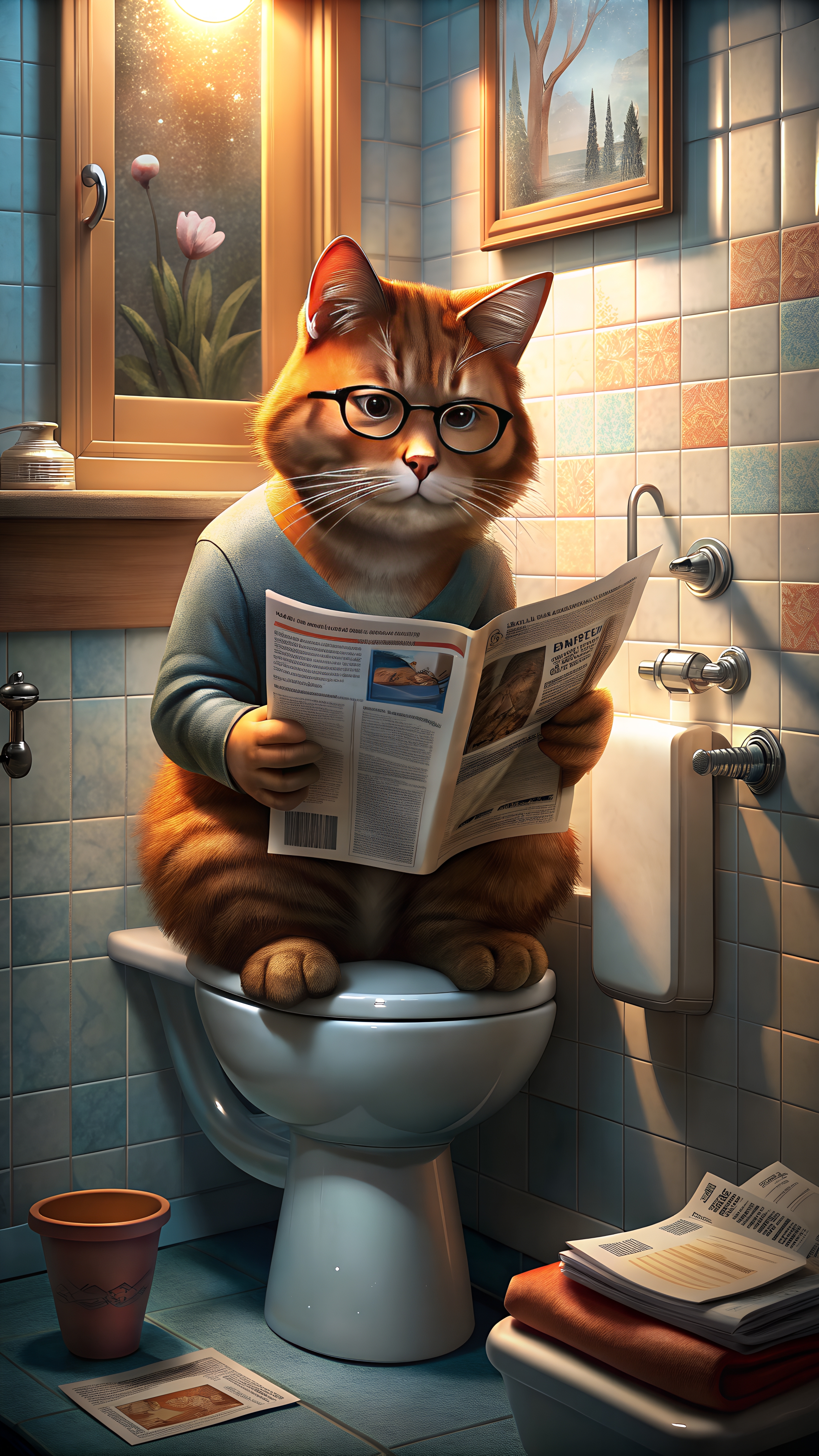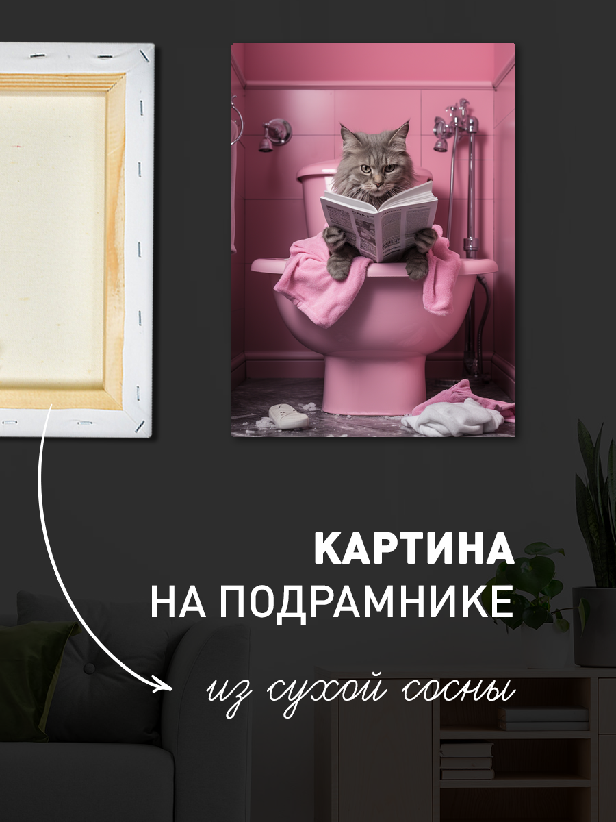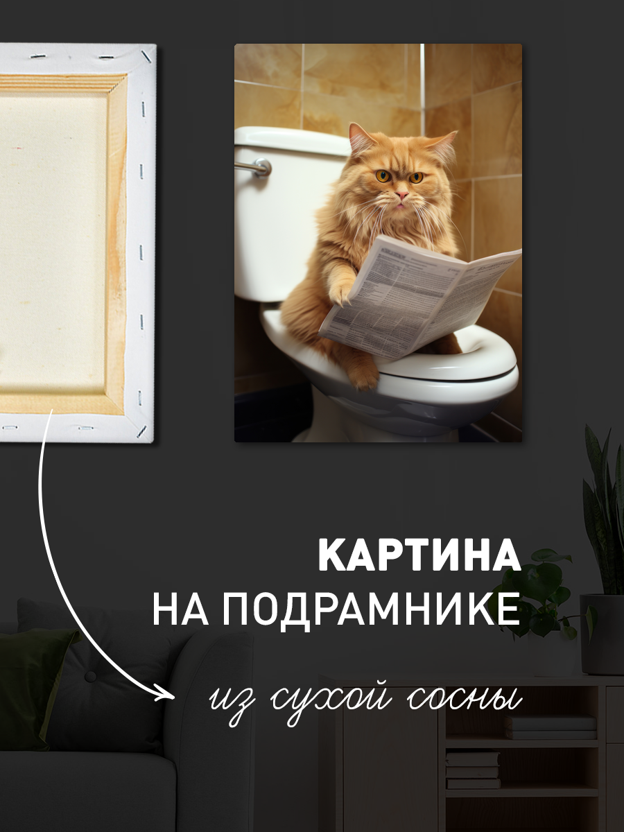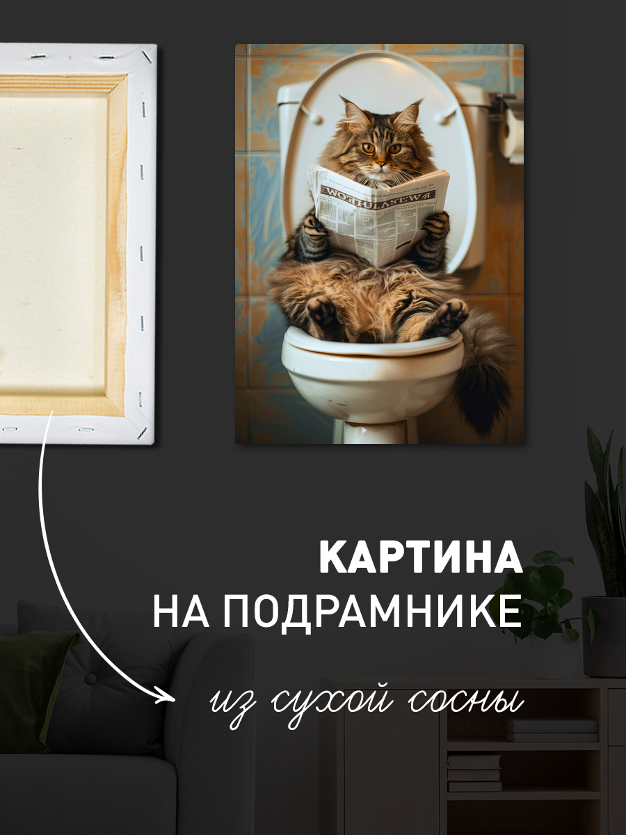 Описание: Картина 50 на 70 "Кот на унитазе" изображает забавного кота, сосредоточенно читающего газету, сидя на унитазе. Эта уникальная композиция вызывает улыбку и легкость, превращая повседневный момент в нечто смешное и неожиданное. Кот с пушистой золотистой шерстью и выразительными глазами создает атмосферу комфорта и уюта, а его занятие добавляет нотку игривости. Эта картина станет отличным акцентом в любом интерьере — от уютной кухни до стильной ванной комнаты. Она прекрасно впишется в пространство, оформленное в современном, минималистичном или даже ретро-стиле, добавляя живости и очарования. Представьте, как эта картина будет радовать вас и ваших гостей, вызывая легкую улыбку и создавая непринужденную атмосферу. Она идеально подойдет для людей с хорошим чувством юмора и любовью к животным. Не упустите возможность добавить в свой дом частичку счастья и позитива с этим произведением искусства!