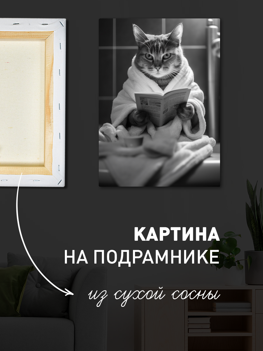 Описание: Картина 50 на 70 "Кот с газетой" представляет собой забавный и уникальный сюжет, на котором изображен кот, сидящий на унитазе и читающий газету. Эта картина вызывает улыбку и поднимает настроение, благодаря своему игривому и необычному подходу к изображению повседневной жизни. Кот, с его выразительными глазами и пушистым мехом, привлекает внимание и создает атмосферу уюта и комфорта. Эта работа наполнена юмором и легкостью, она заставляет задуматься о том, как порой животные могут вести себя, как люди. Картина идеально подходит для любителей кошек и тех, кто ценит оригинальные произведения искусства. Она может стать отличным акцентом в интерьере, добавляя нотку веселья и индивидуальности. Эта картина будет прекрасно смотреться в ванной комнате, гостиной или даже в офисе, где сможет поднять настроение всем, кто ее увидит. Она станет не только украшением интерьера, но и поводом для приятных бесед и улыбок. Не упустите возможность добавить в свое пространство этот уникальный элемент, который несомненно привлечет внимание и вызовет положительные эмоции у всех гостей.