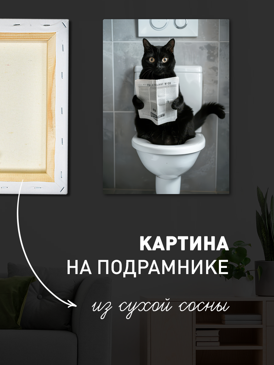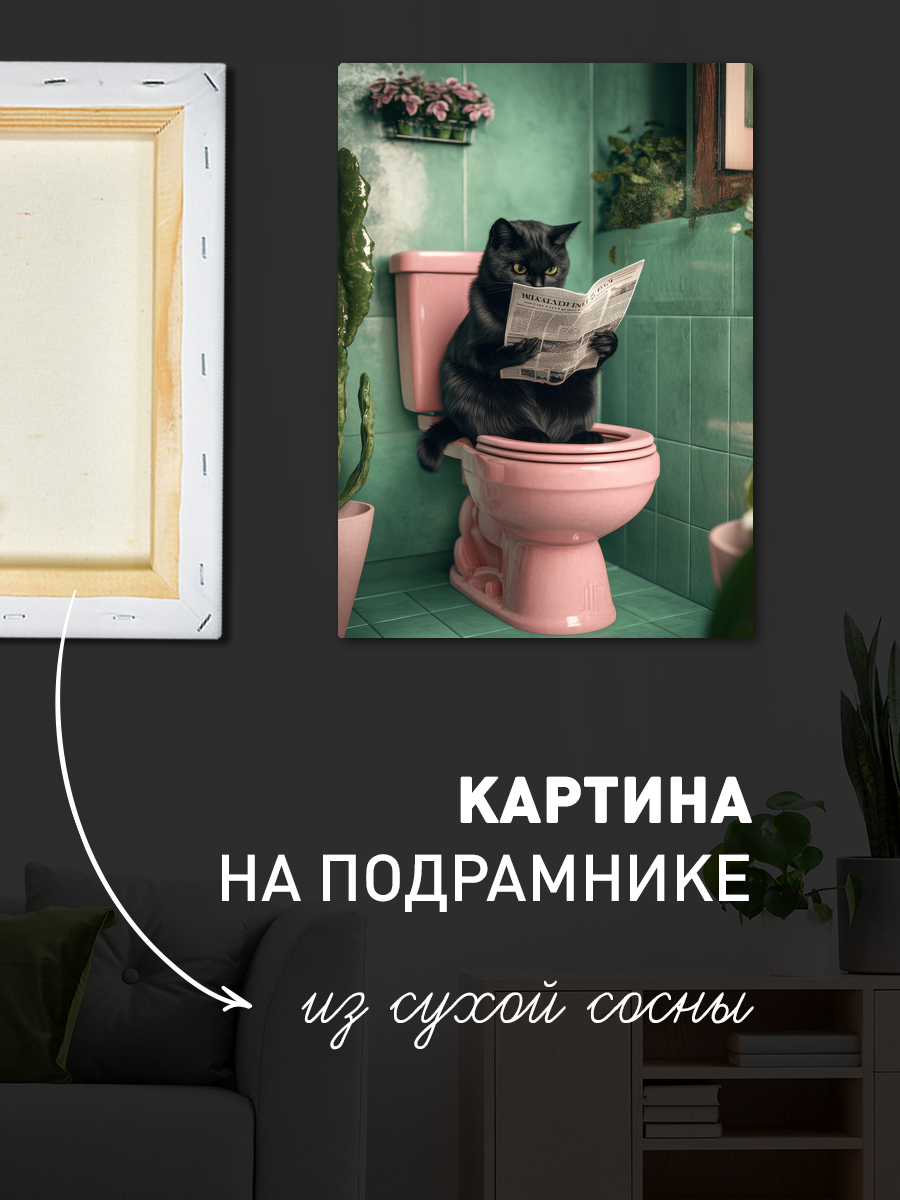 Описание: Картина 50 на 70 'Кот на унитазе' представляет собой забавное и оригинальное изображение, где черный кот, сидящий на унитазе, читает газету. Эта уникальная композиция не только вызывает улыбку, но и пробуждает интерес к повседневным моментам жизни, превращая их в искусство. Кот с большими глазами и выразительной мимикой создает атмосферу легкости и игривости, что делает картину идеальным акцентом для любого интерьера. Эта работа вызывает положительные эмоции и заставляет задуматься о том, как часто мы упускаем из виду забавные моменты нашей жизни. Она станет отличным дополнением к вашему дому или офису, добавляя нотку юмора и тепла в обстановку. Картина будет отлично смотреться в кухне, ванной, а также в кабинете, где она сможет поднимать настроение и вдохновлять на креативные идеи. Создавая уютную атмосферу, данное произведение искусства привнесет в ваше пространство индивидуальность и стиль. Это отличный подарок для любителей животных и тех, кто ценит оригинальные и необычные вещи. Не упустите возможность добавить этот шедевр в свою коллекцию и наслаждайтесь его присутствием каждый день.
