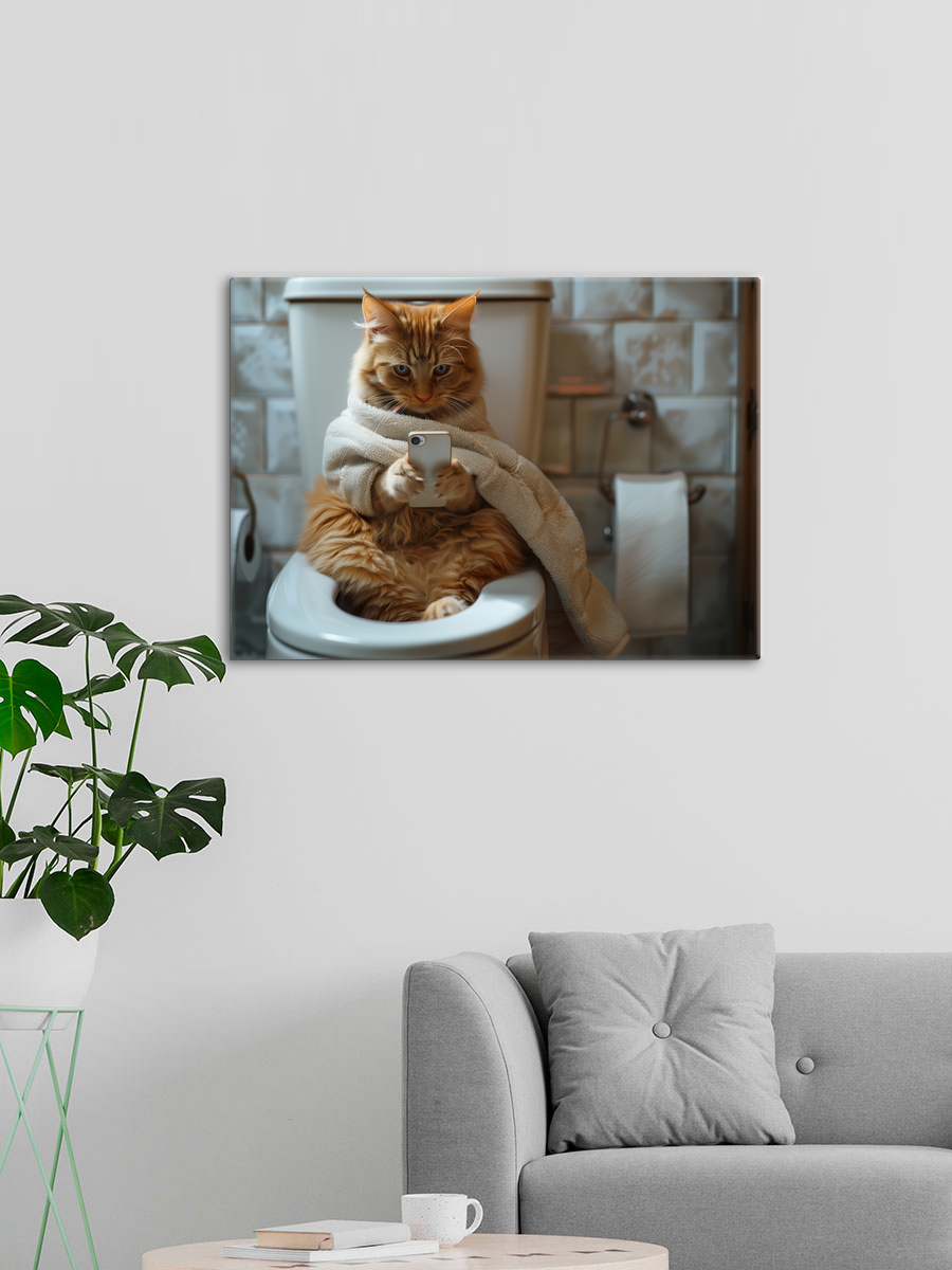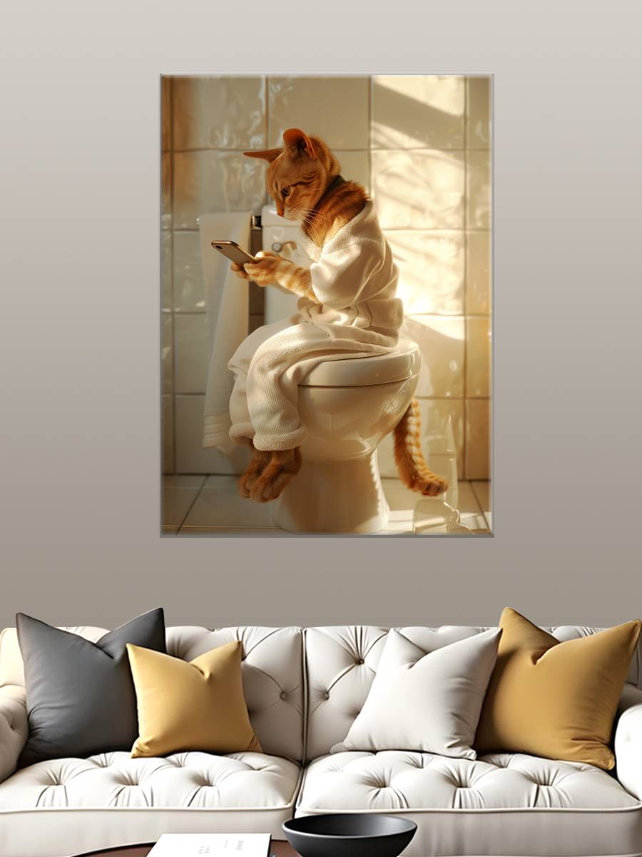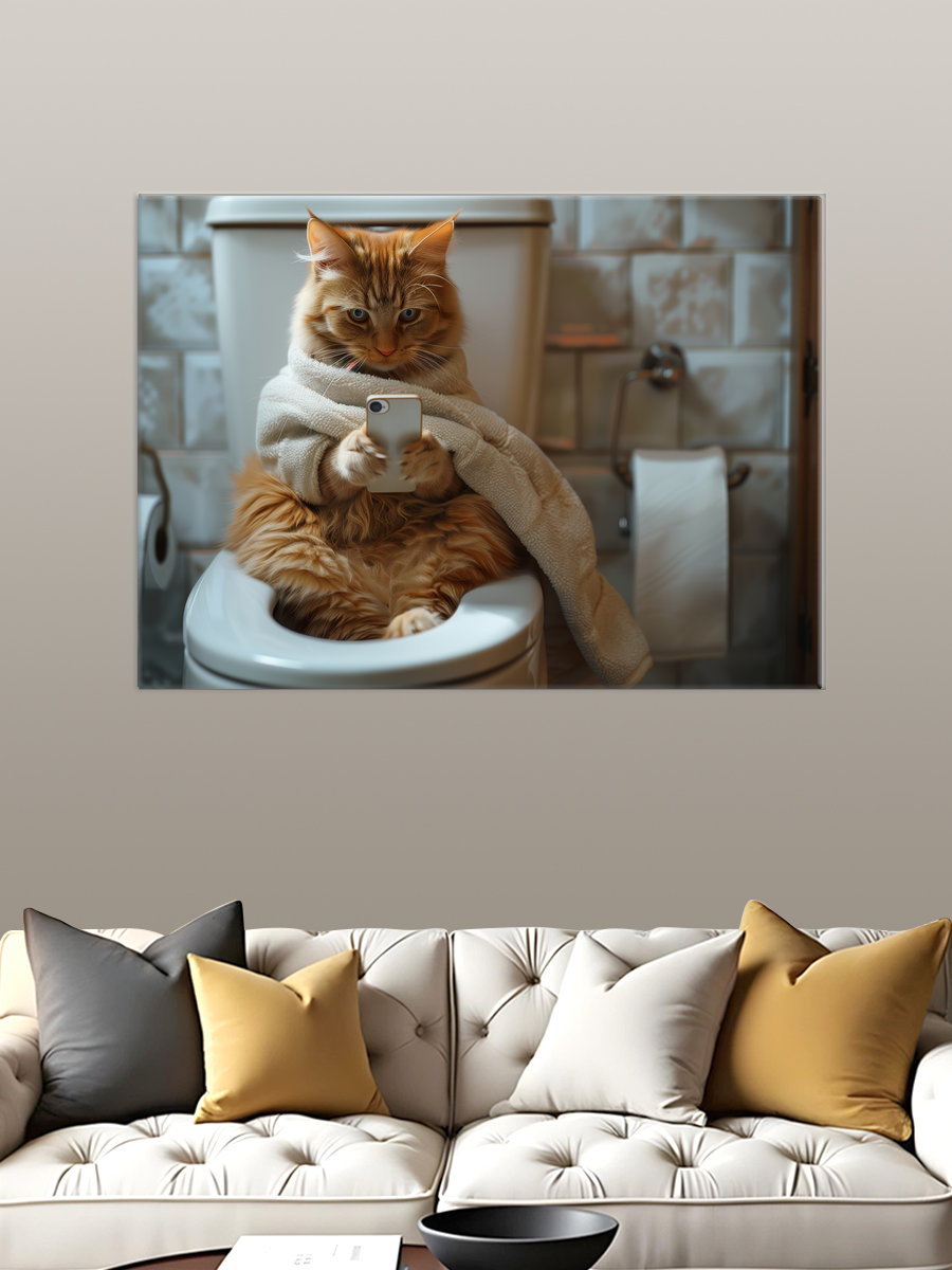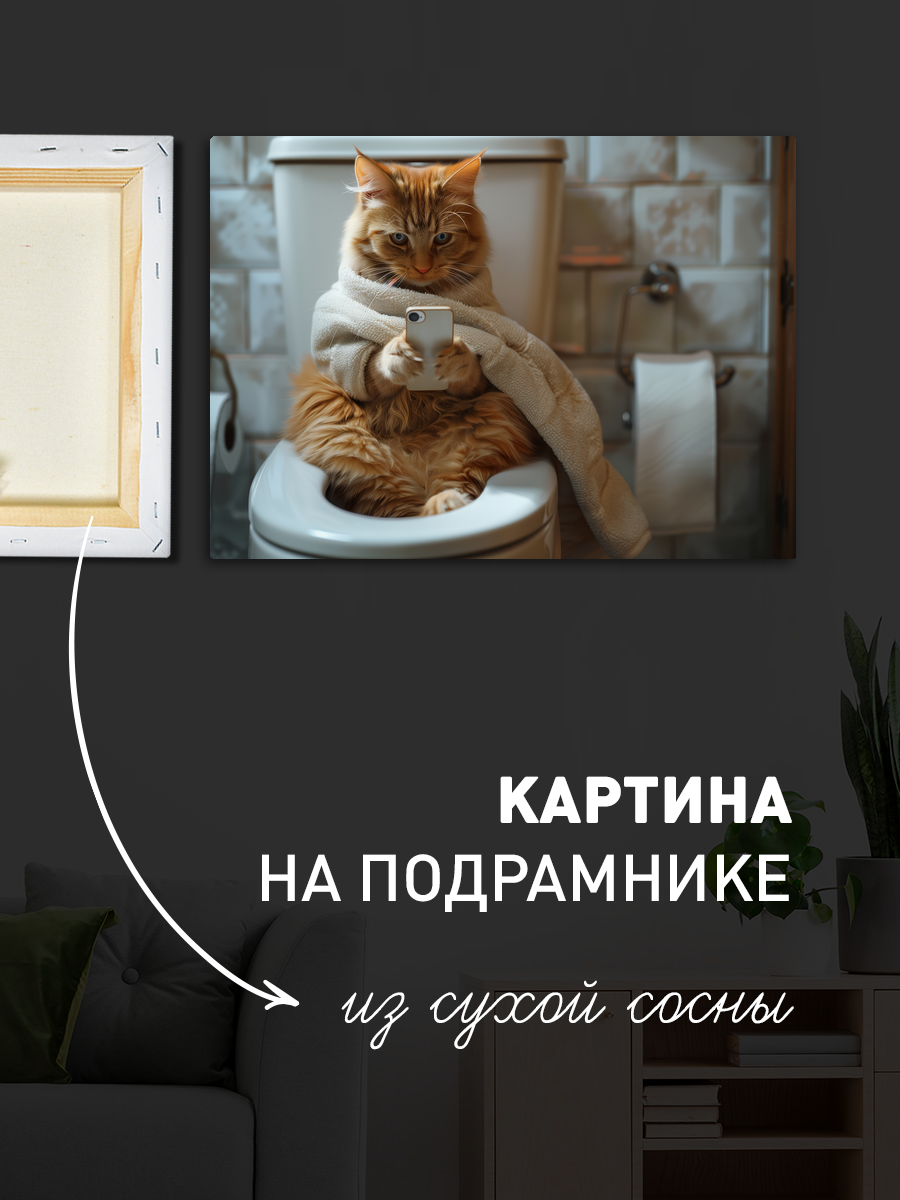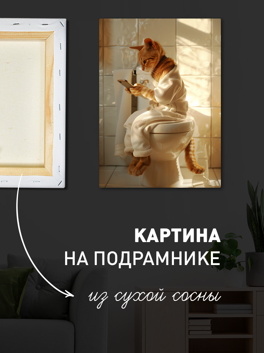 Описание: Картина 50 на 70 "Кот на унитазе" изображает забавную сцену, где пушистый рыжий кот удобно устроился на унитазе, завернувшись в мягкое одеяло и увлеченно смотря на экран своего телефона. Эта уникальная работа сочетает в себе юмор и уют, создавая атмосферу легкости и непринужденности.Автор мастерски передает выражение лица кота, заставляя зрителя улыбнуться и вспомнить о забавных моментах из жизни домашних любимцев. Картина вызывает теплые чувства и улыбку, позволяя каждому зрителю почувствовать радость и игривость, которые приносит общение с питомцами. Она станет отличным акцентом в любом интерьере, добавляя нотку юмора и уюта в ваше пространство. Эта работа прекрасно подойдет для размещения в гостиной, кабинете или детской комнате, а также в кафе или ресторане, где ценят атмосферу дружелюбия и комфорта. Картина станет отличным подарком для любителей котов и всех, кто ценит необычные и оригинальные произведения искусства.