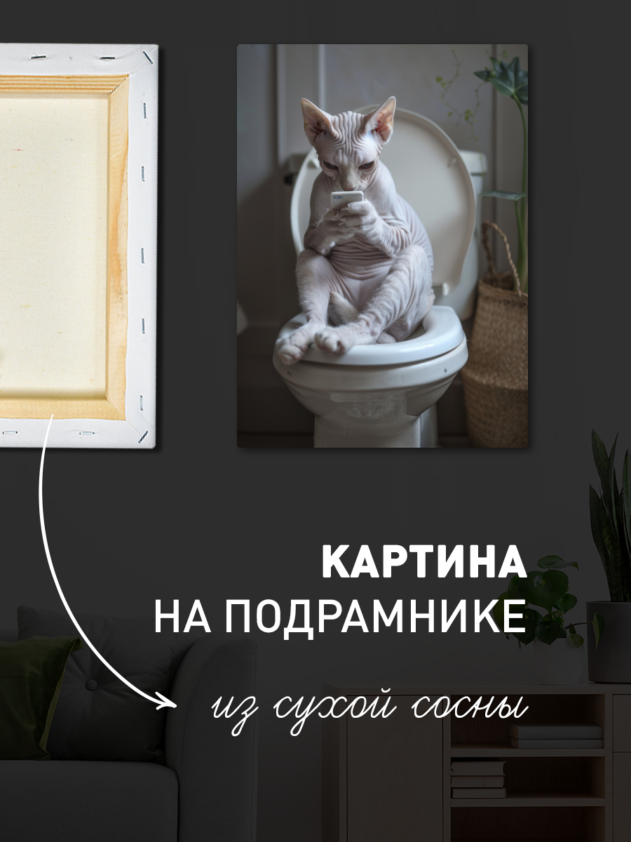 Описание: Картина 50 на 70 "Кошачьи Забавы" представляет собой уникальное изображение сфинкса, увлеченно смотрящего в свой телефон, сидя на унитазе. Это забавное и оригинальное произведение искусства сочетает в себе элементы юмора и повседневной жизни, что делает его идеальным для любого современного интерьера. Основная идея картины заключается в том, чтобы показать, как наши питомцы становятся частью нашей повседневной рутины, придавая ей лёгкую и игривую атмосферу. Эта картина вызывает улыбку и радость, напоминая о том, что даже в самых обычных моментах можно найти весёлые и забавные моменты. Она идеально подходит для любителей животных и тех, кто ценит креативный подход к искусству. "Кошачьи Забавы" станет отличным акцентом в вашем доме, будь то гостиная, кабинет или даже ванная комната. Она добавит нотку игривости и индивидуальности в любое пространство, создавая уютную и расслабляющую атмосферу. Эта картина станет отличным подарком для друзей и семьи, а также прекрасным дополнением к вашему собственному интерьеру.