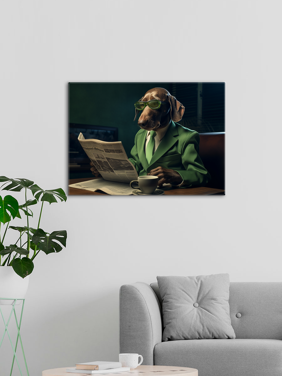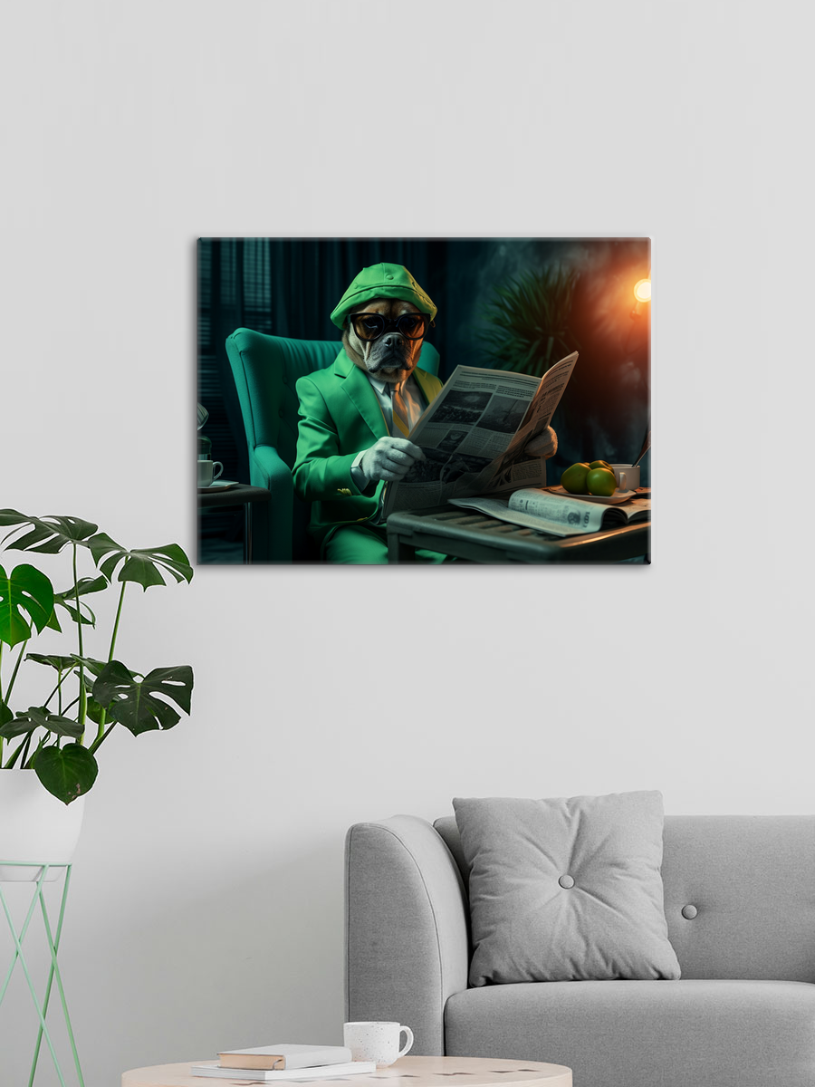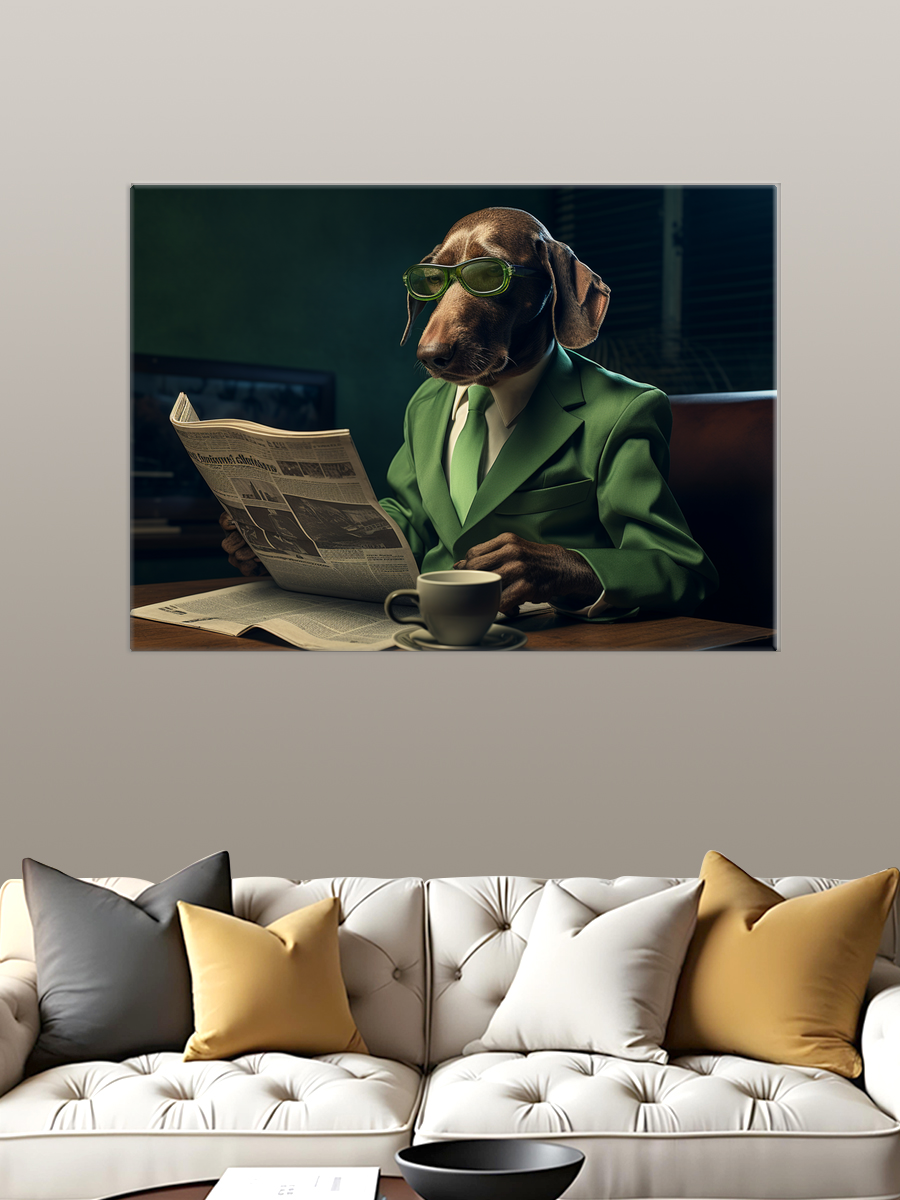 Описание: Картина 50 на 70 "Деловой Пес" изображает очаровательного пса в элегантном зеленом костюме, который уверенно читает газету, сидя в уютном кресле. Эта работа сочетает в себе элементы юмора и стиля, создавая уникальную атмосферу, где собака одета как истинный джентльмен. Уникальность картины заключается в её способности вызывать улыбку и поднимать настроение, ведь такое необычное изображение заставляет задуматься о том, как непривычно и весело может выглядеть привычный мир. Картина вызывает положительные эмоции, наполняя пространство теплом и игривостью. Она станет отличным акцентом в вашем интерьере, идеально вписываясь в современные гостиные, кабинеты или даже офисы, добавляя нотку оригинальности и уюта. Вы можете повесить её над диваном, в уголке для чтения или в любом месте, где хотите создать атмосферу легкости и хорошего настроения. Эта картина станет не просто элементом декора, а истинным произведением искусства, которое будет радовать вас и ваших гостей в течение многих лет.