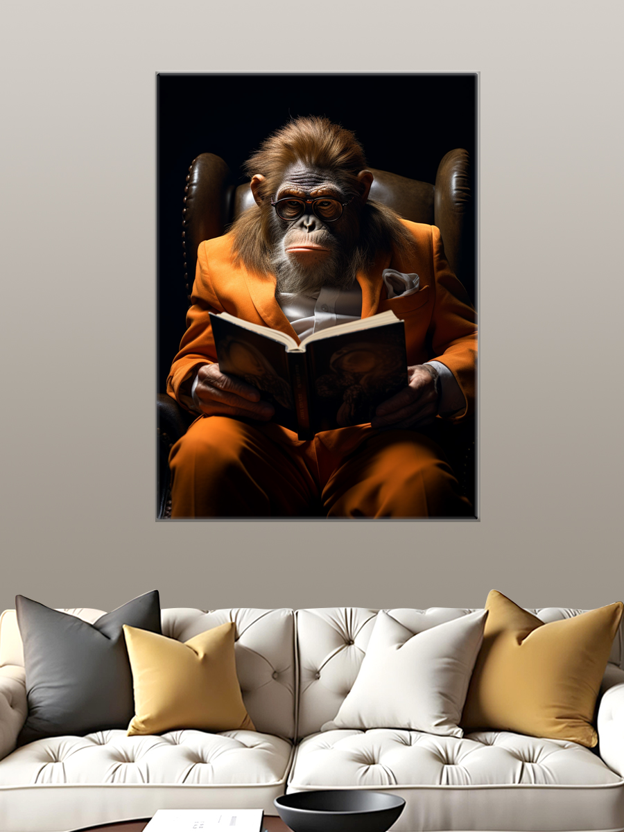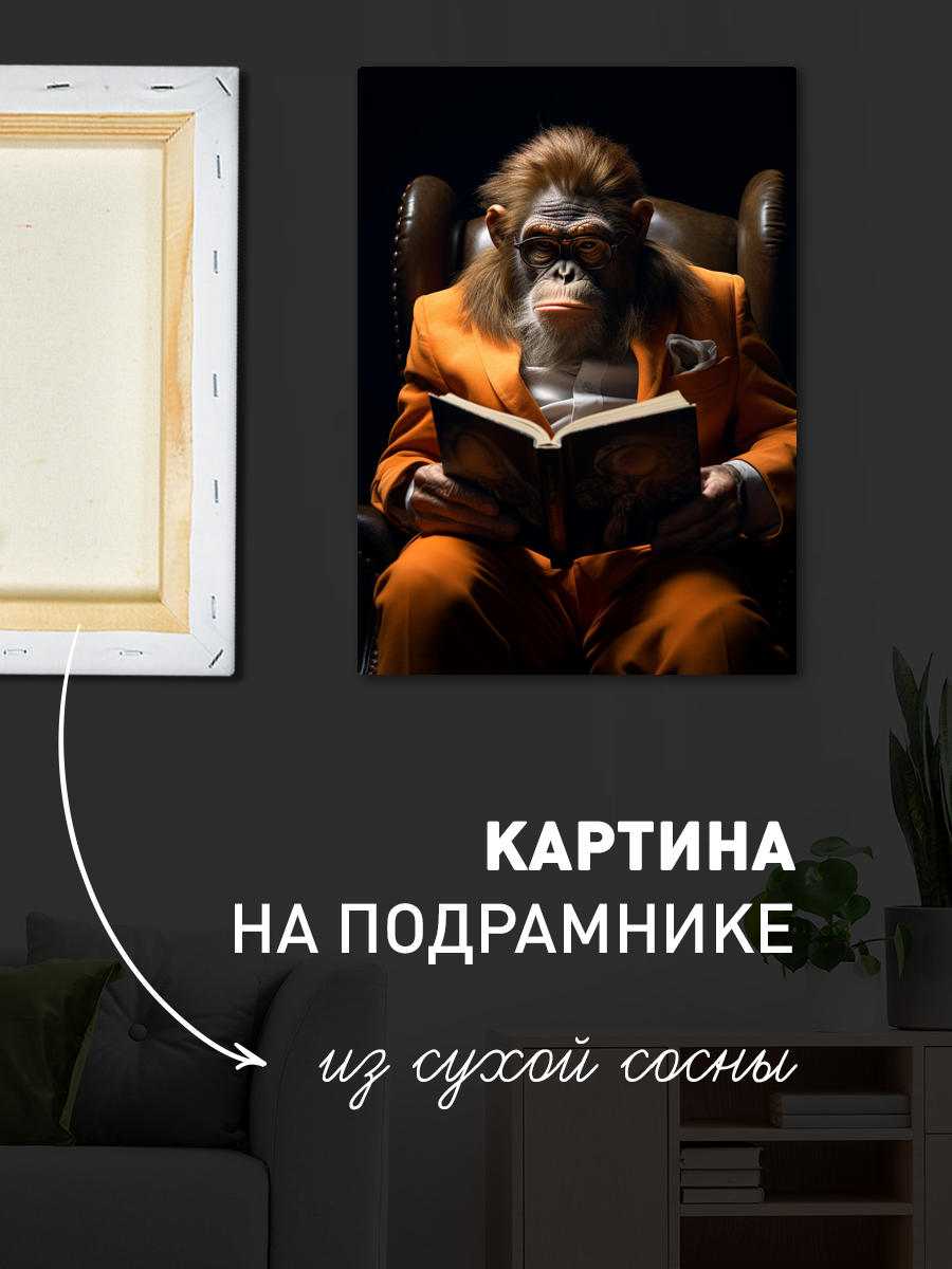 Описание: Картина 50 на 70 "Читающий Обезьяна" представляет собой уникальное произведение искусства, где изображена обезьяна в стильном оранжевом костюме, сидящая в кресле и читающая книгу. Эта картина, наполненная иронией и юмором, вызывает улыбку и заставляет задуматься о человеческих качествах, отраженных в животном. Основная идея картины — показать, как мы можем видеть себя через призму других существ, что делает её уникальной и запоминающейся. Эмоции, которые вызывает эта картина, варьируются от веселья до глубокого размышления. Она может стать центром внимания в любой комнате, вызывая интерес и обсуждения среди гостей. Каждая деталь, от выразительных глаз обезьяны до текстуры костюма, создает атмосферу тепла и уюта. Эта картина прекрасно впишется в современный интерьер, добавляя яркие акценты в гостиную, офис или учебное пространство. Она подойдет как для домашних коллекций, так и для общественных пространств, таких как кафе или библиотеки, где её уникальность и чувство юмора могут привлекать внимание. "Читающий Обезьяна" — это не просто картина, это разговорный объект, который оживит любое пространство и сделает его более интересным.