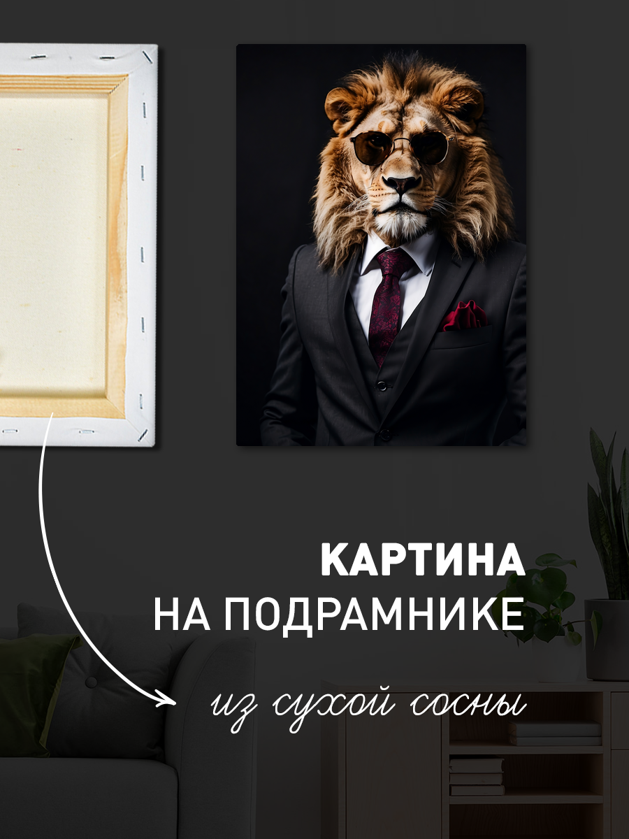 Описание: Картина 50 на 70 "Лев в костюме" представляет собой уникальное произведение искусства, на котором изображен величественный лев в элегантном костюме. Эта картина символизирует силу и уверенность, сочетая в себе элементы дикой природы и человеческой культуры. Уникальность этой работы заключается в гармоничном сочетании яркого образа льва и строгого делового стиля, что вызывает у зрителя чувство восхищения и уважения. Картина наполнена эмоциями, она может вызывать у зрителей чувство уверенности и решительности, вдохновляя на достижения. Взгляд льва, облаченного в стильный костюм и солнцезащитные очки, создает атмосферу успешности и харизмы. Это произведение искусства станет отличным акцентом в любом интерьере, добавляя в него нотки креативности и индивидуальности. Она прекрасно подойдет для офисного пространства, кабинета или личного рабочего уголка, наполняя его энергией и мотивацией. Также картина будет великолепно смотреться в домашней библиотеке или гостиной, создавая атмосферу тепла и уюта. Благодаря своему оригинальному дизайну и выразительности, эта картина привлечет внимание гостей и станет предметом обсуждения, а ее наличие в вашем пространстве подчеркнет ваш уникальный вкус и стиль.