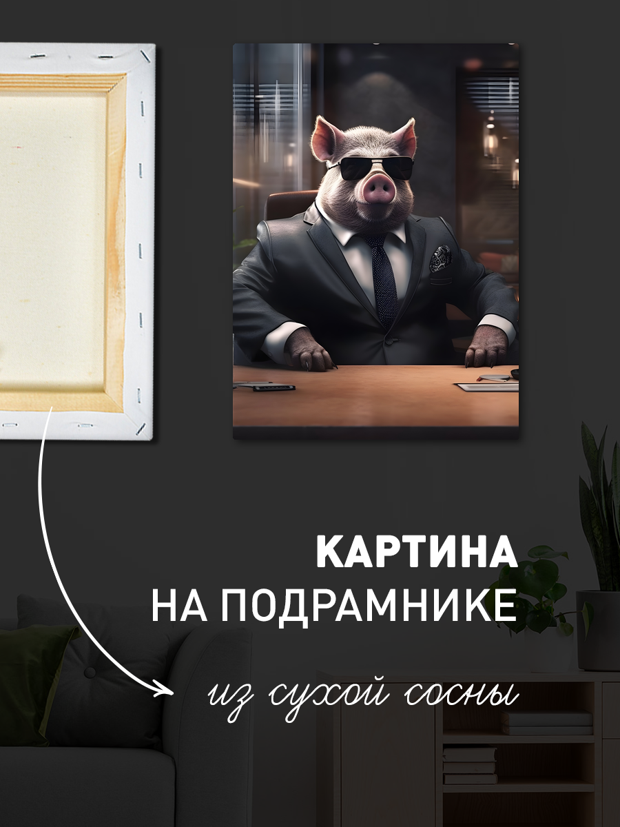 Описание: Картина 50 на 70 "Деловой свин" представляет собой уникальное произведение искусства, на котором изображена свинья в стильном костюме и солнечных очках, сидящая за офисным столом. Эта картина сочетает в себе элементы юмора и иронии, отражая интересный взгляд на мир бизнеса и современных деловых отношений. Основная идея картины заключается в том, что даже самые неожиданные персонажи могут обладать харизмой и уверенностью, что делает её особенно привлекательной. Создавая атмосферу уверенности и стиля, "Деловой свин" вызывает у зрителя смешанные чувства: от улыбки до глубокой задумчивости. Она может стать отличным акцентом в вашем интерьере, наполняя пространство позитивной энергией и оригинальностью. Эта картина идеально подойдет для офисов, кабинетов, коворкингов или даже домашнего пространства, где ценится креативный подход и необычные детали. Она станет отличным подарком для предпринимателей, креативщиков или просто людей с хорошим чувством юмора. Висеть такая картина может как в рамках, так и без них, на светлом фоне стены, что позволит ей выделяться и привлекать внимание. Добавьте яркую нотку в ваш интерьер с помощью "Делового свина" и создайте уникальное пространство, где стиль встречается с оригинальностью.