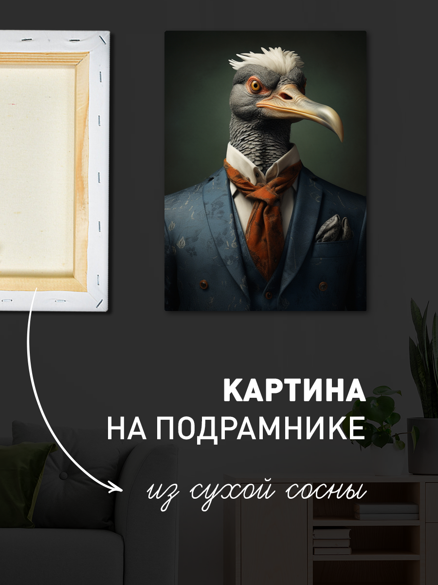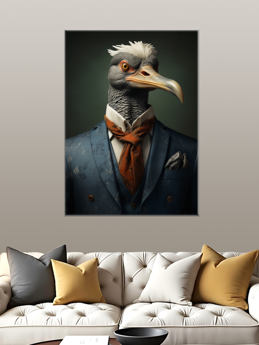 Описание: Картина 50 на 70 'Элегантный Птиц' представляет собой завораживающее изображение, где элегантный птиц в костюме с галстуком привлекает внимание своим уникальным стилем. Это произведение искусства сочетает в себе элементы сюрреализма и модерна, создавая необычную атмосферу, в которой природа и человеческое начало переплетаются. Основная идея картины заключается в том, чтобы показать, как животные могут выглядеть изысканно и стильно, вызывая у зрителя чувство восхищения и удивления. Эта картина вызывает различные эмоции: от удивления до восторга. Она наполняет пространство игривостью и оригинальностью, придавая интерьеру индивидуальность. Каждый взгляд на 'Элегантный Птиц' вызывает улыбку и дарит ощущение легкости и радости. Это произведение искусства станет настоящим акцентом в любом пространстве, поднимая настроение и создавая уютную атмосферу. Картина идеально подойдет для современных интерьеров, таких как стильные офисы, креативные студии, или даже жилые комнаты, где она будет гармонично сочетаться с минималистичным или эклектичным дизайном. Ее можно повесить над диваном, в уголке чтения или в коридоре, добавляя оригинальности и стиля в любое пространство. 'Элегантный Птиц' станет не только украшением вашего дома, но и предметом обсуждения среди гостей, делая ваш интерьер по-настоящему уникальным.