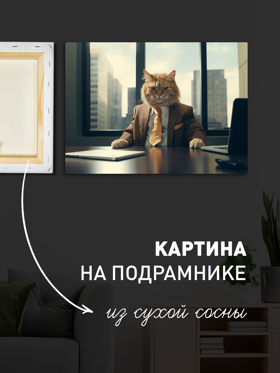 Описание: Картина 50 на 70 "Деловая кошка" привносит в интерьер нотки игривости и стиля. На ней изображен кот в деловом костюме, сидящий за офисным столом. Эта уникальная работа сочетает в себе элементы юмора и серьезности, создавая образ, который вызывает улыбку и поднимает настроение. Каждый взгляд на картину наполняет пространство теплом и комфортом, заставляя задуматься о том, как важно сохранять чувство юмора даже в рабочей обстановке. Эта картина идеально подойдет для офисных помещений, кабинетов, а также уютных уголков дома, где вы хотите создать атмосферу легкости и непринужденности. Она станет отличным акцентом в интерьере, привлекая внимание и вызывая положительные эмоции у гостей. "Деловая кошка" – это не просто картина, это возможность добавить в вашу жизнь немного креатива и вдохновения. Она отлично дополнит как современный, так и классический интерьер, позволяя вам выделиться и подчеркнуть свою индивидуальность. Разместите ее на стене в гостиной, кабинете или даже в детской комнате – она станет ярким элементом, который будет радовать вас каждый день.