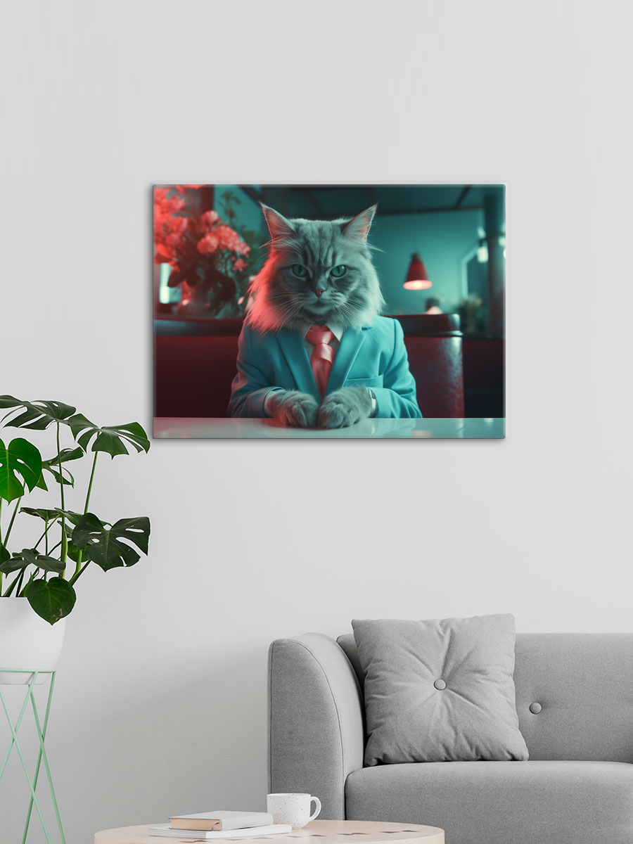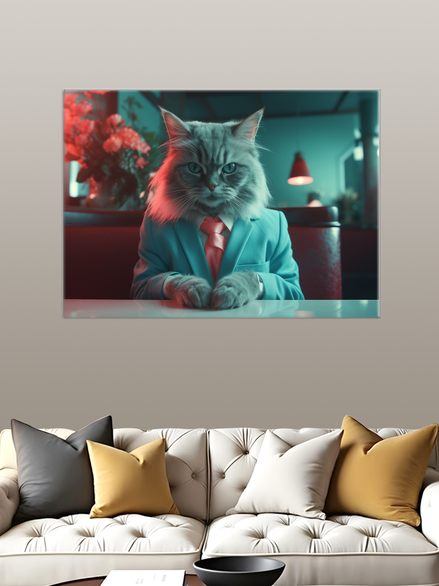 Описание: Картина 50 на 70 "Элегантный кот" - это уникальное произведение искусства, на котором изображен величественный кот в стильном голубом костюме с розовым галстуком. Эта работа сочетает в себе ироничный подход к классическим портретам и современное исполнение, что делает её особенной. Основная идея картины заключается в том, чтобы показать, как животные могут быть не только милыми, но и элегантными, вызывая улыбку и восхищение у зрителей. Картина вызывает целый спектр эмоций: от лёгкой улыбки до восхищения грацией и стилем. Она заставляет задуматься о том, как мы воспринимаем мир вокруг и как нестандартные идеи могут преобразить привычные вещи. Каждый раз, глядя на эту картину, вы будете ощущать радость и лёгкость, что делает её идеальным акцентом в любом интерьере. Эта картина отлично впишется как в современный, так и в классический интерьер. Она будет прекрасно смотреться в гостиной, на кухне или в кабинете, добавляя нотку оригинальности и изящества. Также она станет отличным подарком для любителей кошек и искусства, ведь её уникальность и стиль привлекут внимание и вызовут восторг у каждого, кто её увидит. Не упустите возможность привнести в своё пространство частичку изысканности и юмора с помощью этой удивительной картины.