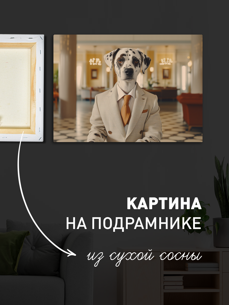 Описание: Картина 50 на 70 "Деловой Пес" представляет собой уникальное произведение искусства, на котором изображен стильный далматин в костюме, сидящий на фоне роскошного интерьера. Эта картина объединяет в себе игривость и элегантность, отражая современный взгляд на жизнь. Основная идея картины — показать, как можно сочетать серьезность и удовольствие, подчеркивая, что даже в формальных условиях можно найти место для веселья. При взгляде на это произведение, возникают положительные эмоции — улыбка и легкость. Оно вызывает ассоциации с дружелюбным общением и атмосферой уюта. Такой образ, как деловой пес, создает ощущение тепла и комфорта, наполняя пространство позитивной энергией. Эта картина идеально впишется в различные интерьеры: от офисов до домашних гостиных. Она станет отличным акцентом в любом современном пространстве, добавляя нотку оригинальности и стиля. "Деловой Пес" — это не просто картина, это разговорный объект, который привлечет внимание гостей и станет темой для обсуждений. Разместите её на стене в зоне отдыха, офисе или даже в прихожей, чтобы каждый, кто входит в ваше пространство, мог насладиться её уникальным шармом.