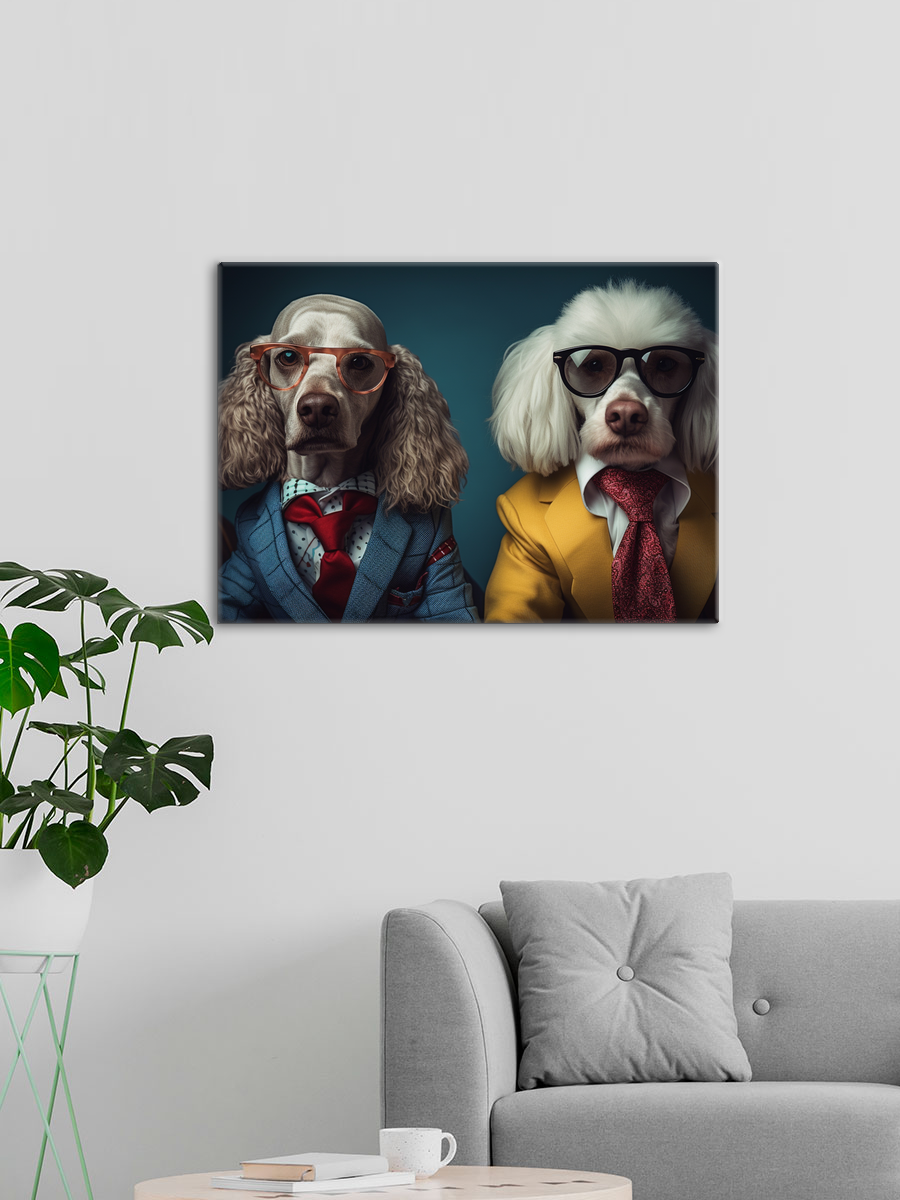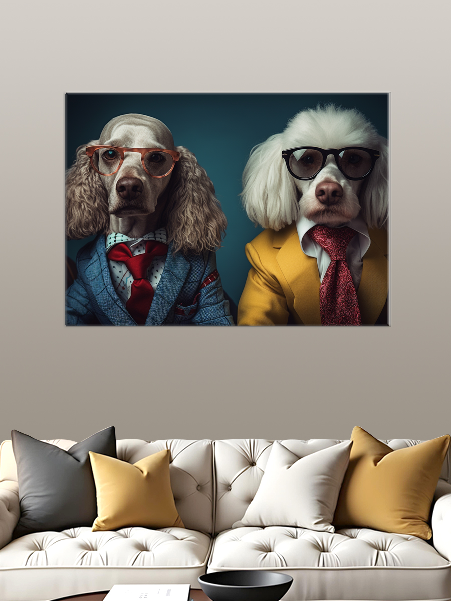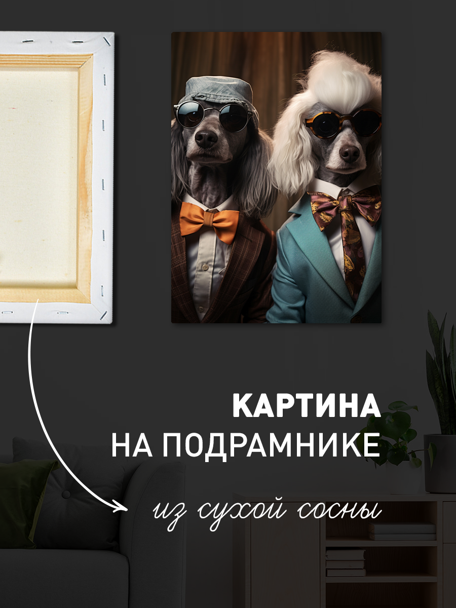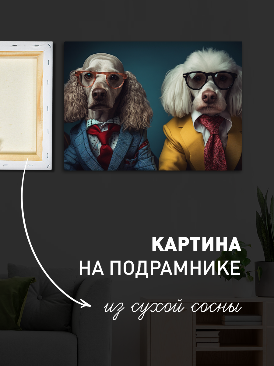 Описание: Картина 50 на 70 "Деловые собаки" представляет собой уникальное изображение двух собак, одетых в стильные костюмы и очки, что придаёт им комичный и одновременно элегантный вид. Эта работа вызывает улыбку и поднимает настроение, благодаря игривому сочетанию нарядов и выражений лиц животных. Основная идея картины заключается в том, чтобы показать, как даже самые серьёзные моменты жизни могут быть наполнены юмором и радостью. Эта картина способна вызвать положительные эмоции, наполняя пространство теплом и уютом. Она прекрасно отражает дружелюбный и игривый характер наших четвероногих друзей, напоминая о важности лёгкости и радости в повседневной жизни. "Деловые собаки" идеально впишется в любой интерьер, будь то стильный офис, где она добавит нотку креатива и позитива, или уютная гостиная, где станет ярким акцентом на стене. Также картину можно разместить в детской комнате, создавая атмосферу веселья и игривости. Эта работа станет отличным подарком для любителей собак и людей с чувством юмора, а также украсит любое пространство, привнося в него уникальность и жизнерадостность.