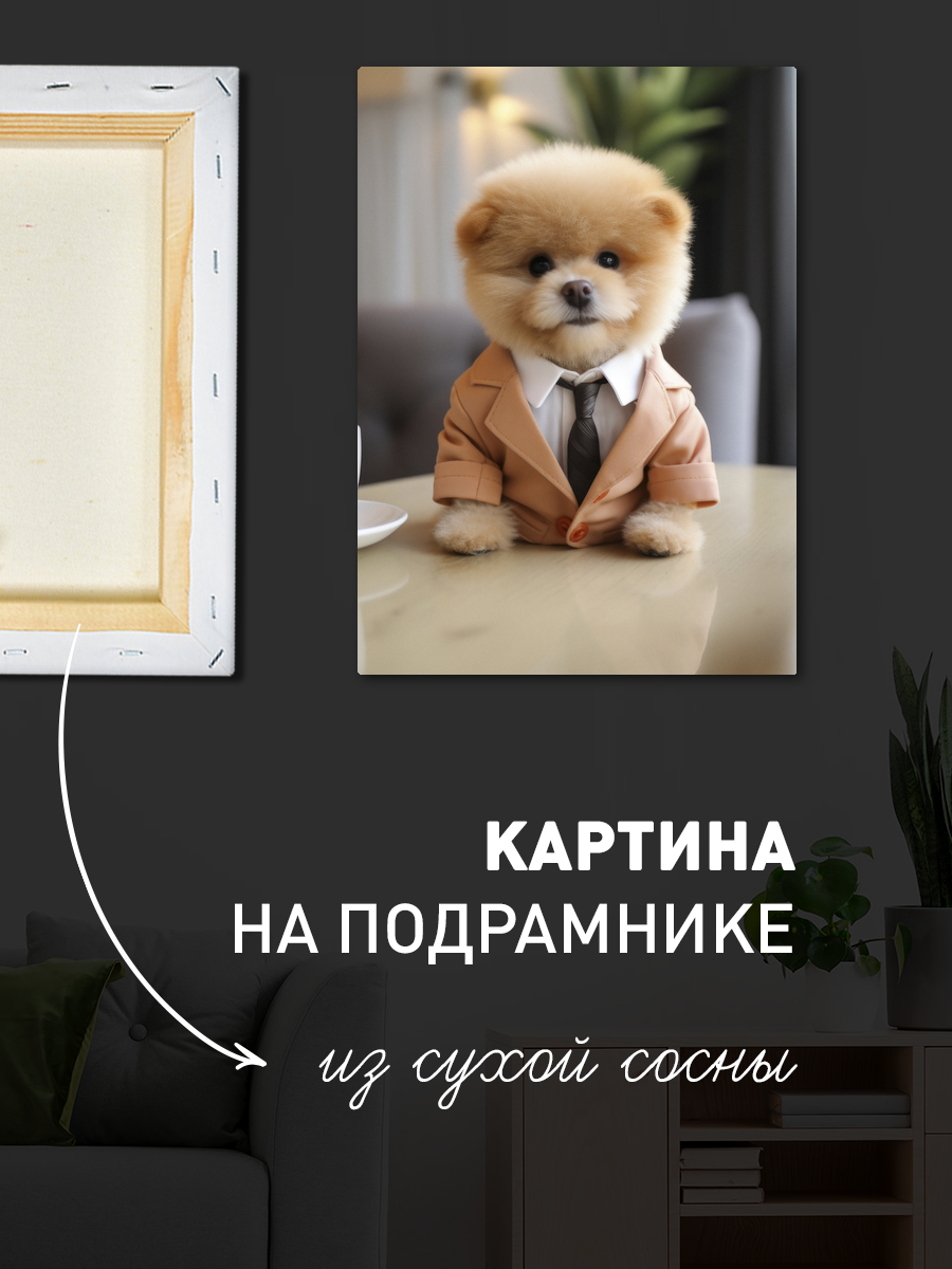 Описание: Картина 50 на 70 "Собака в костюме" — это уникальное произведение искусства, изображающее милую собаку породы померанский шпиц, одетую в стильный деловой костюм. Эта картина привносит в пространство нотки игривости и элегантности, сочетая в себе элементы юмора и профессионализма. Она станет отличным акцентом в любом интерьере, от современного до классического. Эмоции, которые вызывает это изображение, — это радость и теплота, а также улыбка, которая появляется при взгляде на забавную собаку, готовую к важной встрече. Эта картина станет замечательным дополнением для кабинета, гостиной или даже детской комнаты, создавая атмосферу уюта и позитива. Она отлично впишется в интерьер с нейтральными и пастельными тонами, а также станет ярким акцентом в более насыщенных цветах. Не упустите возможность сделать свой дом более привлекательным и необычным с помощью этой оригинальной картины.