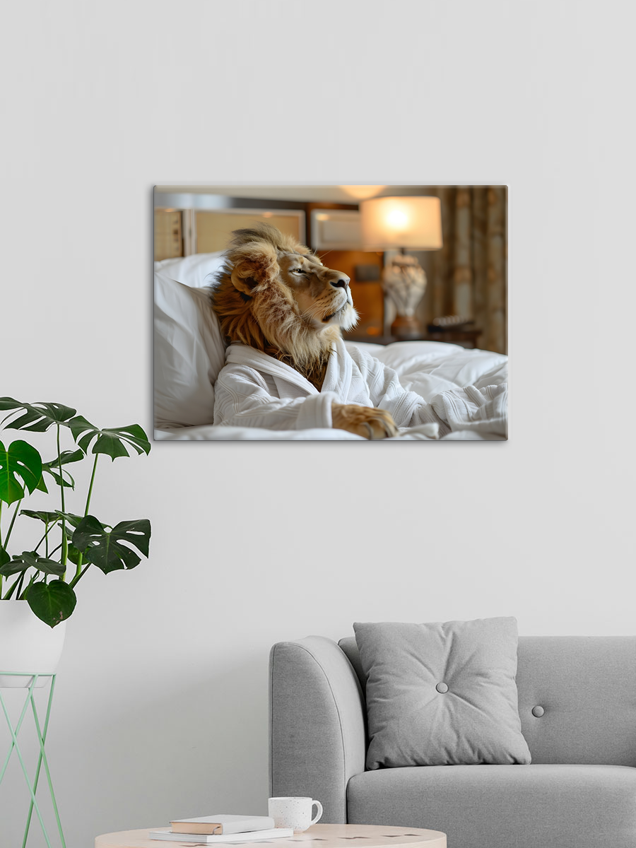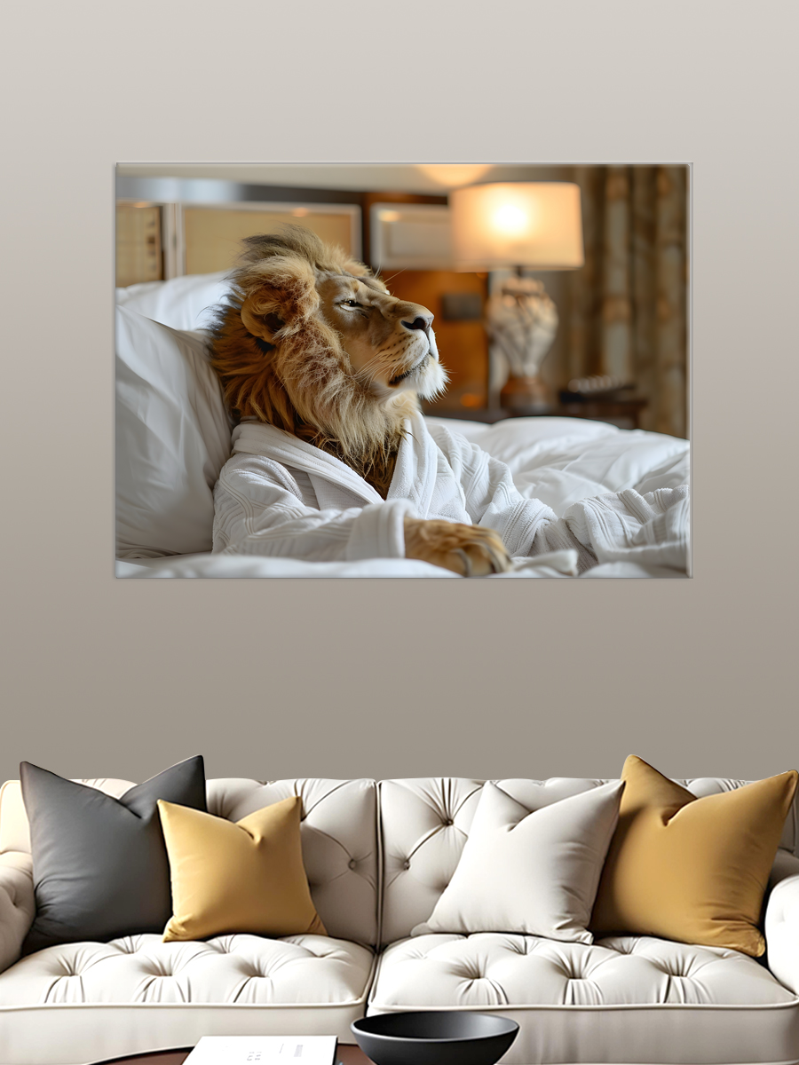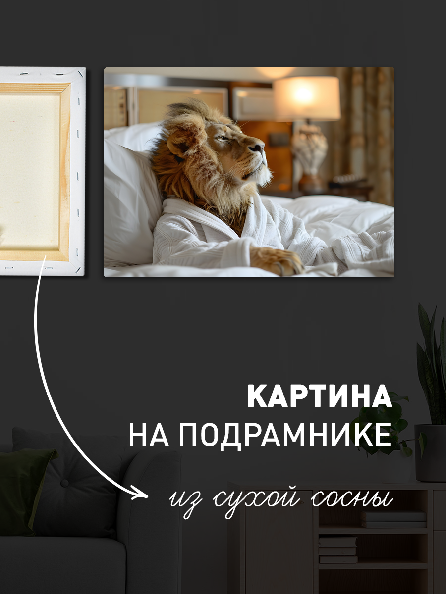 Описание: Картина 50 на 70 'Львиный Рассвет' изображает величественного льва, уютно устроившегося на белоснежной постели в роскошном интерьере. Лев, облаченный в мягкий халат, символизирует комфорт и царственность. Эта уникальная работа вызывает восхищение и умиротворение, заставляя зрителя задуматься о гармонии между дикой природой и человеческим уютом. Сложная игра света и тени придает картине особую атмосферу, наполняя её теплом и спокойствием. Каждый взгляд на 'Львиный Рассвет' пробуждает чувство спокойствия и уверенности, создавая ощущение, что в вашем доме царит гармония и благополучие. Эта картина идеально подойдет для современного интерьера, добавляя интересный акцент в спальню, кабинет или гостиную. Она может стать великолепным украшением любого пространства, вызывая восхищение у гостей и создавая незабываемую атмосферу. Разместите её на стене, где её смогут видеть все, и наслаждайтесь тем, как она преобразит ваше окружение.