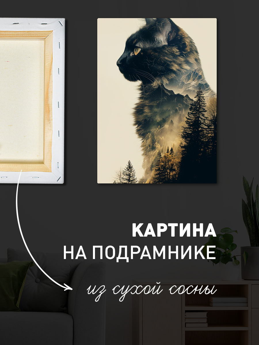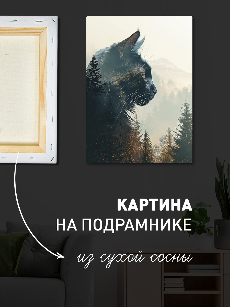 Описание: Картина 50 на 70 "Тайны леса" изображает величественный силуэт черной кошки на фоне загадочного горного пейзажа, где лесные деревья и горы сливаются в уникальную композицию. Основная идея картины заключается в соединении природы и животного мира, создавая атмосферу гармонии и спокойствия. Уникальность этой работы заключается в ее способности вызывать глубокие чувства и эмоции, напоминая о свободе и дикой природе. Картина погружает зрителя в мир мечты и размышлений, вызывая ощущение умиротворения и вдохновения. Она идеально подходит для тех, кто ценит красоту природы и хочет добавить в свой интерьер элемент загадочности. Мягкие, но выразительные цвета создают уютную атмосферу, что делает картину идеальным дополнением для гостиной, спальни или кабинета. "Тайны леса" станет прекрасным акцентом на стене, привлекая внимание и создавая живую дискуссию среди гостей. Ее можно повесить над диваном, на стене рядом с библиотекой или в творческом уголке, где она будет вдохновлять на новые идеи. Эта картина не только украсит ваш дом, но и станет источником вдохновения и спокойствия в повседневной жизни.