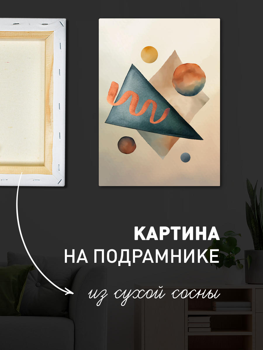 Описание: Картина 50 на 70 "Абстракция в цветах" представляет собой уникальное сочетание геометрических форм и мягких водяных оттенков. На ней изображены треугольные и круглые элементы, выполненные в теплых и холодных тонах, что создает гармоничное и умиротворяющее настроение. Основная идея картины заключается в исследовании взаимосвязи форм и цвета, что позволяет зрителю погрузиться в мир абстракции и задуматься о красоте простоты. Эта картина вызывает теплые и позитивные эмоции, наполняя пространство уютом и спокойствием. Она словно приглашает вас остановиться на мгновение и насладиться моментом. Мягкие переходы цветов создают ощущение легкости и воздушности, что делает её идеальным элементом для создания расслабляющей атмосферы в любом интерьере. Картина идеально подойдет для гостиных, спален или офисов, где вы хотите создать спокойное и вдохновляющее пространство. Она станет отличным акцентом на стене, добавив изюминку в классический или современный интерьер. Вне зависимости от стиля вашего дома, "Абстракция в цветах" станет прекрасным дополнением, подчеркивающим индивидуальность вашего пространства. Не упустите возможность привнести в свой дом частичку искусства, которая будет радовать глаз и вдохновлять каждый день.
