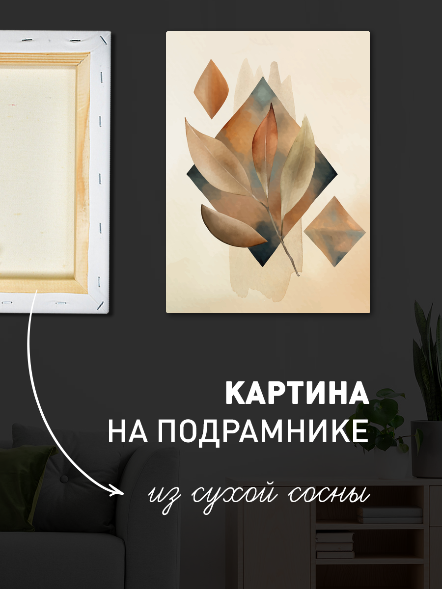Описание: Картина 50 на 70 "Листья осени" изображает изящные листья в теплых осенних тонах, аккуратно расположенные на фоне мягких пастельных оттенков. Основная идея картины заключается в передаче красоты природы и ее трансформации в осенний период, когда листья принимают разнообразные оттенки, от золотистого до глубоких коричневых. Уникальность этой работы заключается в гармоничном сочетании форм и цветов, создающем ощущение спокойствия и уюта. Эта картина вызывает теплые, ностальгические эмоции, напоминая о тихих прогулках по парку в осеннюю пору, когда ветер нежно шепчет между деревьями, а листья покрывают землю красочным ковром. Она поможет создать атмосферу гармонии и умиротворения в вашем пространстве, добавляя нотку природы и тепла. Картина отлично подойдет для различных интерьеров: от современных минималистичных до уютных скандинавских стилей. Ее можно повесить в гостиной, спальне или даже в кабинете, где она будет вдохновлять на размышления и творчество. "Листья осени" станет прекрасным акцентом на стене, придавая помещению завершенный и стильный вид.