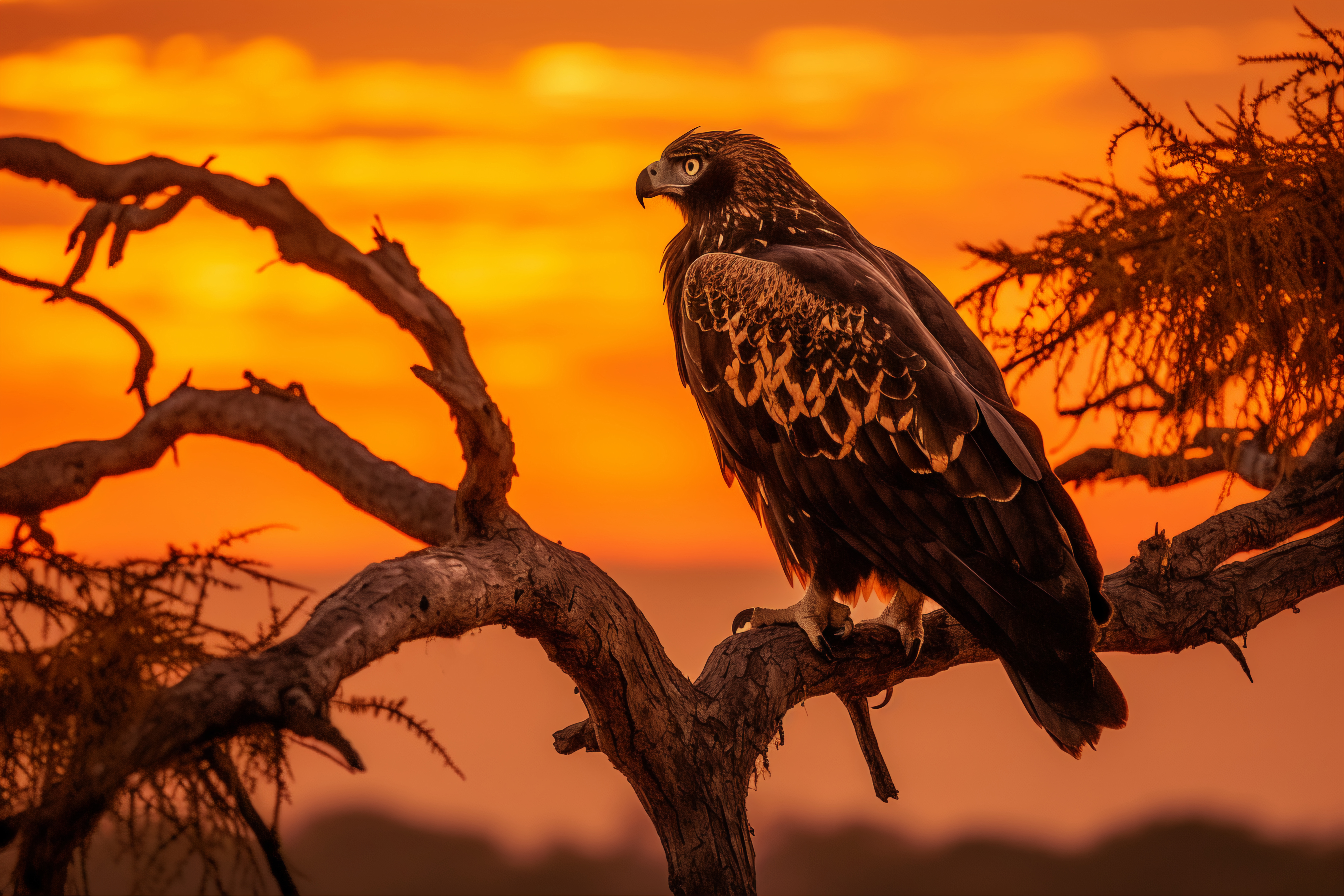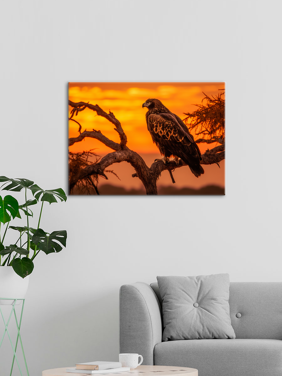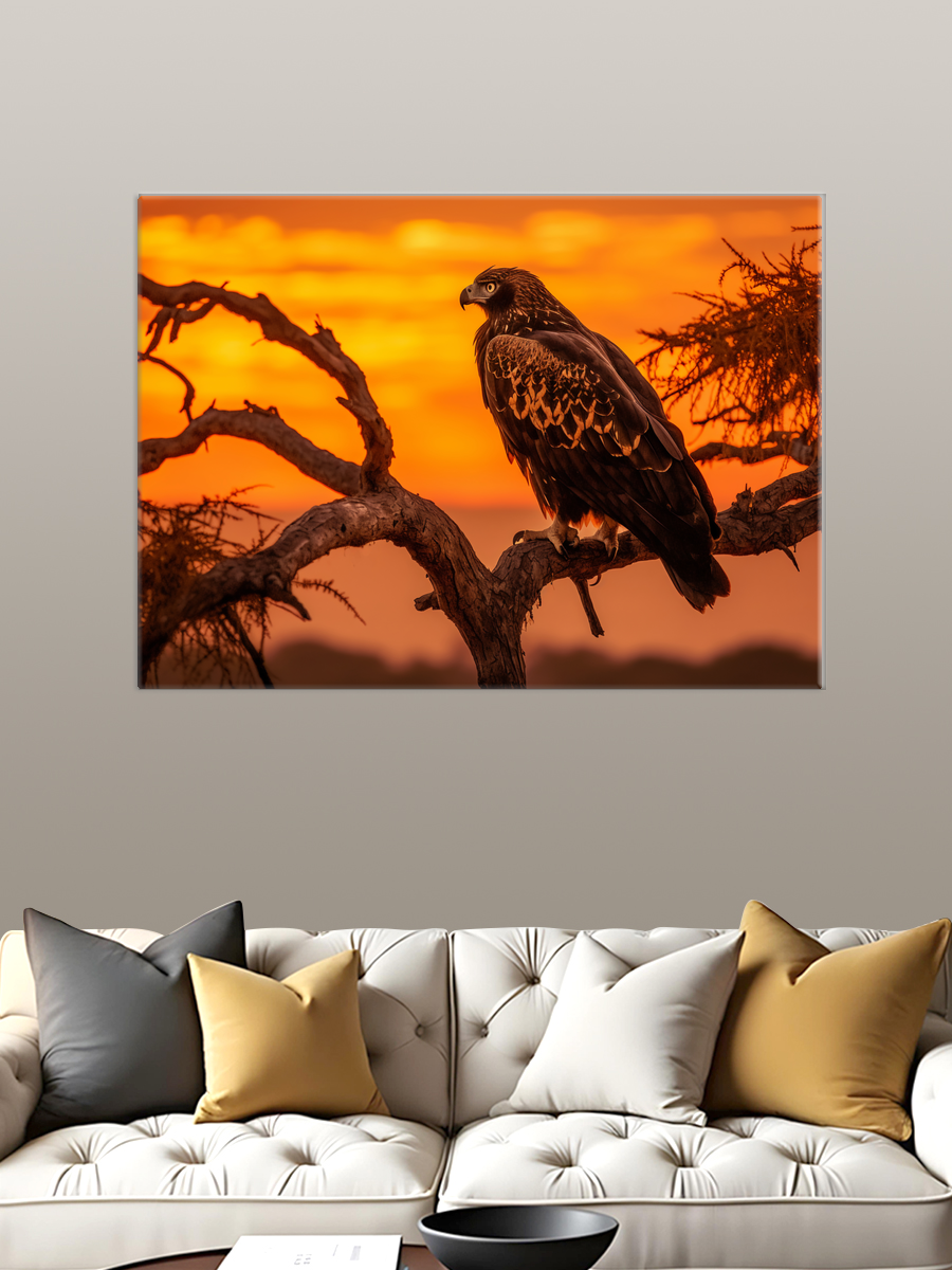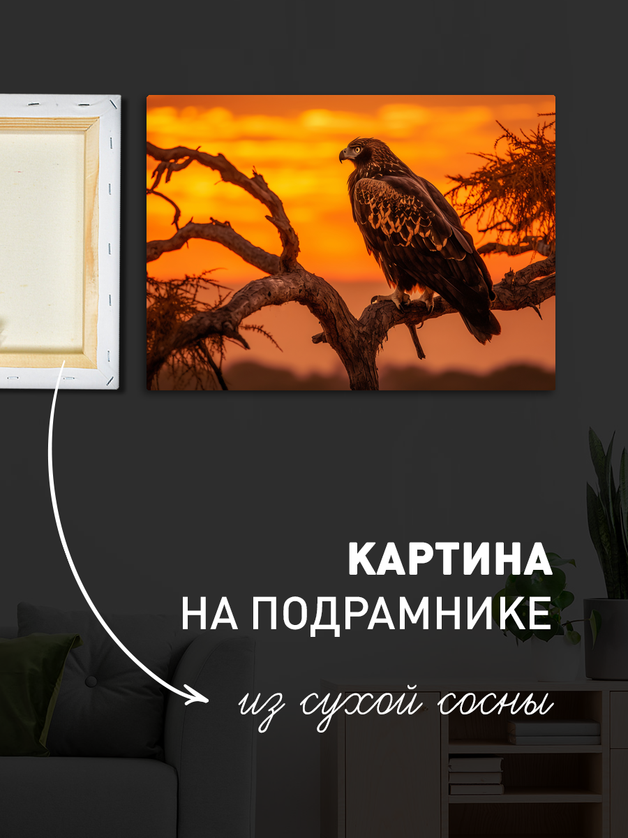 Описание: Картина 50 на 70 "Величие орла" изображает величественного орла, сидящего на ветке дерева на фоне яркого заката. Яркие оттенки оранжевого и жёлтого создают атмосферу тепла и спокойствия, в то время как тёмные силуэты орла и дерева добавляют глубину и контраст. Эта картина уникальна своей способностью передать мощь и грацию природы, а также момент тишины на фоне динамичного заката. Каждый раз, когда вы смотрите на эту картину, вы можете ощутить чувство вдохновения и свободы, которое приносит с собой образ орла, парящего в небесах. Эта работа способна вызвать восхищение и умиротворение, она будет напоминать вам о величественной красоте природы и её мощи. "Величие орла" идеально впишется в любой интерьер, будь то уютная гостиная, кабинет или спальня. Она станет ярким акцентом на стене, добавляя нотку элегантности и стиля. Эта картина также отлично подойдёт для офисного пространства, где она будет вдохновлять и поднимать настрой. Не упустите возможность сделать свой интерьер более живым и выразительным с помощью этой уникальной работы, которая станет не только украшением, но и источником положительных эмоций.