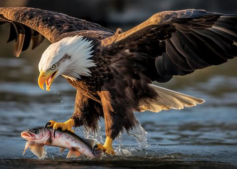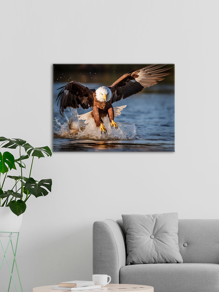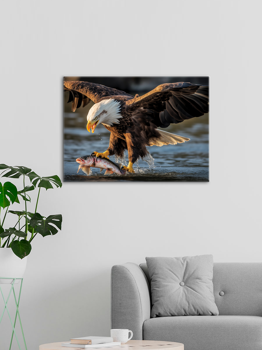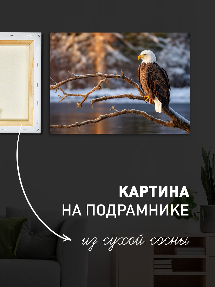 Описание: Картина 50 на 70 "Охота орла" изображает величественного орла, ловко пикирующего на свою добычу — рыбу. Эта сцена, наполненная динамикой и мощью природы, привлекает внимание зрителя и создает ощущение мгновения, застывшего во времени. Уникальность картины заключается в ее детализированном изображении орла с размахом его крыльев и водной поверхности, олицетворяющей мощь и грацию хищника. Эта картина вызывает широкий спектр эмоций: от восхищения силой природы до умиротворения, когда наблюдаешь за гармонией между хищником и его добычей. Она наполняет пространство ощущением свободы и величия, вдохновляя на размышления о красоте дикой природы и ее гармонии. "Охота орла" станет отличным дополнением для различных интерьеров. Она идеально впишется в комнаты, оформленные в стиле экостиля, где ценится естественность и близость к природе. Также картина будет прекрасно смотреться в кабинете, создавая атмосферу силы и решительности, или в гостиной, добавляя ей уникальности и характера. Повесьте ее над диваном или в коридоре, и каждый раз, проходя мимо, вы будете ощущать вдохновение и связь с природой.
