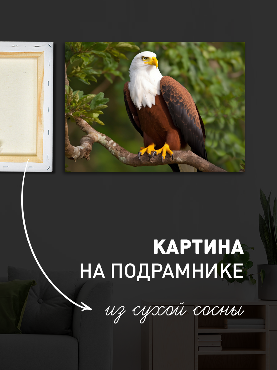 Описание: Картина 50 на 70 "Величие орла" представляет собой впечатляющее изображение могучего орла, сидящего на ветке в окружении зелени. Эта работа передает величие и грацию природы, запечатлевая момент, когда орел внимательно наблюдает за окружающим миром. Уникальность картины заключается в её детализированной передаче текстуры перьев и яркости глаз, что создает эффект присутствия. Эта картина вызывает чувство восхищения и вдохновения, позволяя зрителю ощутить мощь и свободу, которые символизирует орел. Она наполняет пространство энергией и гармонией, что делает её идеальным акцентом для любого интерьера. Картина "Величие орла" прекрасно впишется в гостиные, офисы или кабинеты, придавая им атмосферу спокойствия и силы. Она станет отличным дополнением к эко-стилю, а также подойдет для помещений, оформленных в классическом или современном направлении. Повесьте её на видное место, и она обязательно привлечет внимание и станет предметом обсуждения среди гостей. Позвольте этому произведению искусства украсить ваш дом и вдохновлять на новые свершения каждый день.