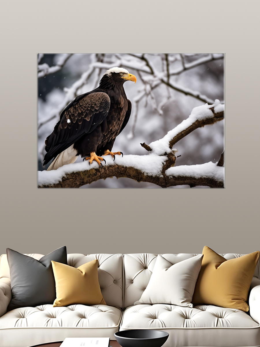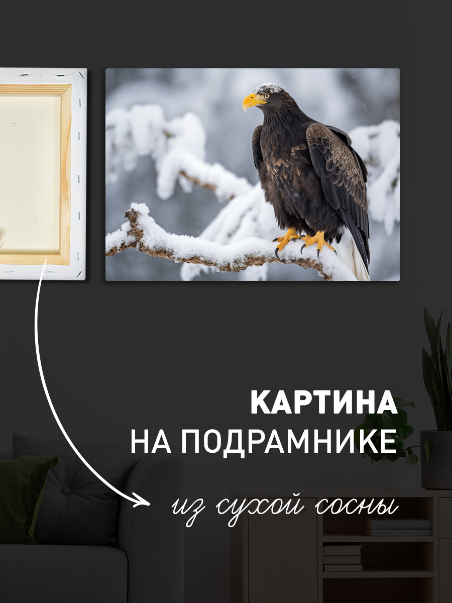 Описание: Картина 50 на 70 "Величие орла" представляет собой потрясающее изображение гордого орла, сидящего на ветке, окруженного снежным пейзажем. Эта уникальная работа передает мощь и грацию этого величественного хищника, который кажется, словно ожидает момента, чтобы взлететь в небо. Основная идея картины заключается в символике свободы и силы, которые ассоциируются с орлом, и она вдохновляет зрителя на размышления о величии природы. Эта картина вызывает глубокие чувства восхищения и спокойствия. Снежный фон создает атмосферу тишины и умиротворения, а орел в центре внимания придаёт картине динамичность и энергию. Она способна пробудить в зрителе чувство связи с природой и величия жизни. "Величие орла" идеально подойдет для различных интерьеров: от современных минималистичных до классических, где она станет ярким акцентом. Ее можно повесить в гостиной, кабинете или даже спальне, создавая атмосферу вдохновения и силы. Эта картина станет отличным подарком для любителей природы и тех, кто ценит искусство, которое вызывает эмоции и заставляет задуматься.