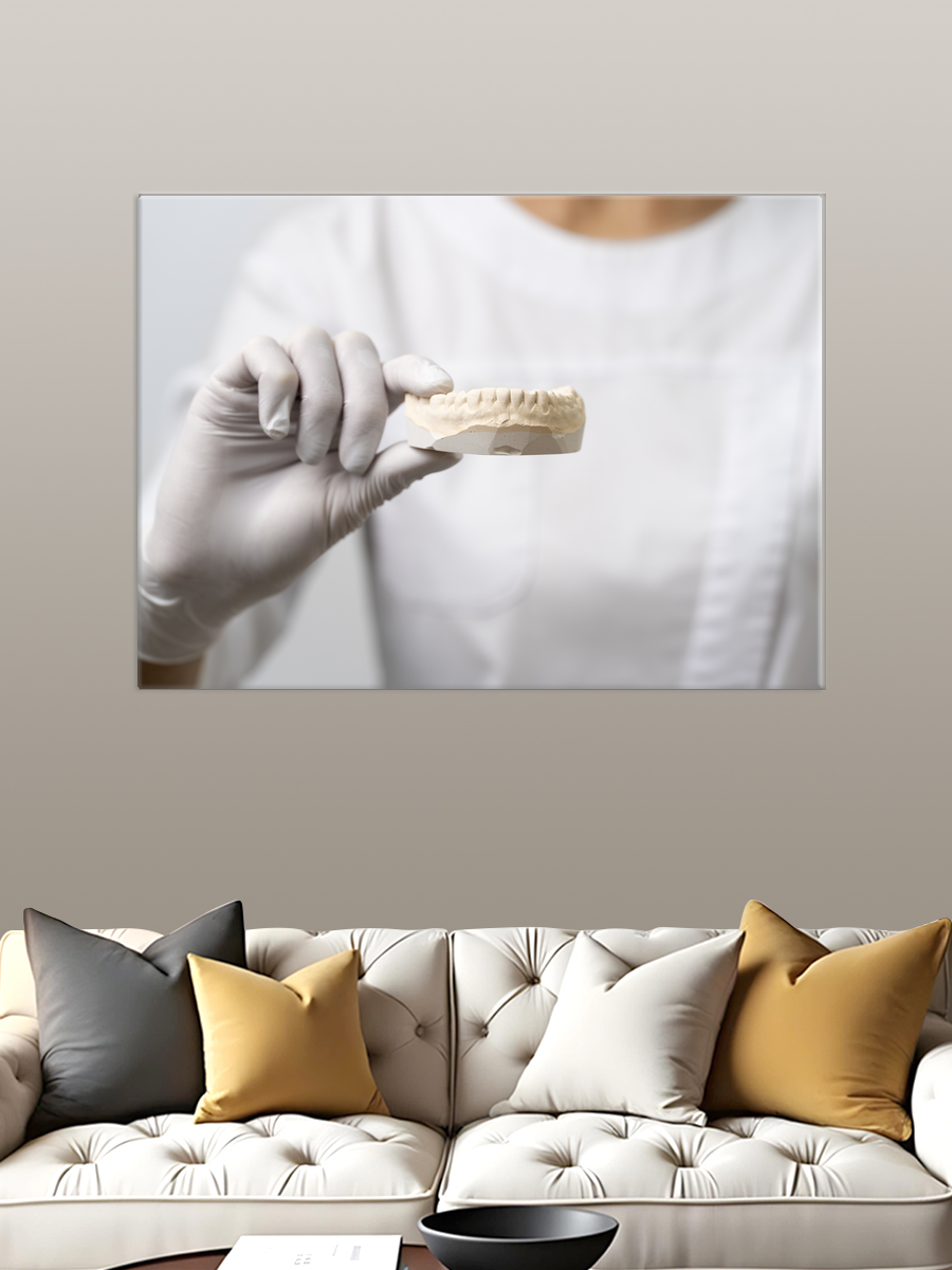 Описание: Картина 50 на 70 "Зубная модель" изображает детализированную модель зубного протеза, которую держит специалист в белом халате. Эта картина символизирует заботу о здоровье и важность стоматологических услуг. Уникальность работы заключается в гармоничном сочетании цветов и текстур, что придает изображению реалистичность и глубину. Она вызывает чувство доверия и уверенности, напоминая о важности ухода за зубами и о профессионализме врачей. Эта работа станет прекрасным акцентом в любом стоматологическом кабинете или медицинском учреждении, создавая атмосферу спокойствия и надежности. Также картина может успешно вписаться в интерьер современного офиса или домашнего пространства, где ценится эстетика и внимание к деталям. Ее можно разместить в зоне ожидания, на стене кабинета или даже в личной коллекции, подчеркивая стиль и индивидуальность владельца.
