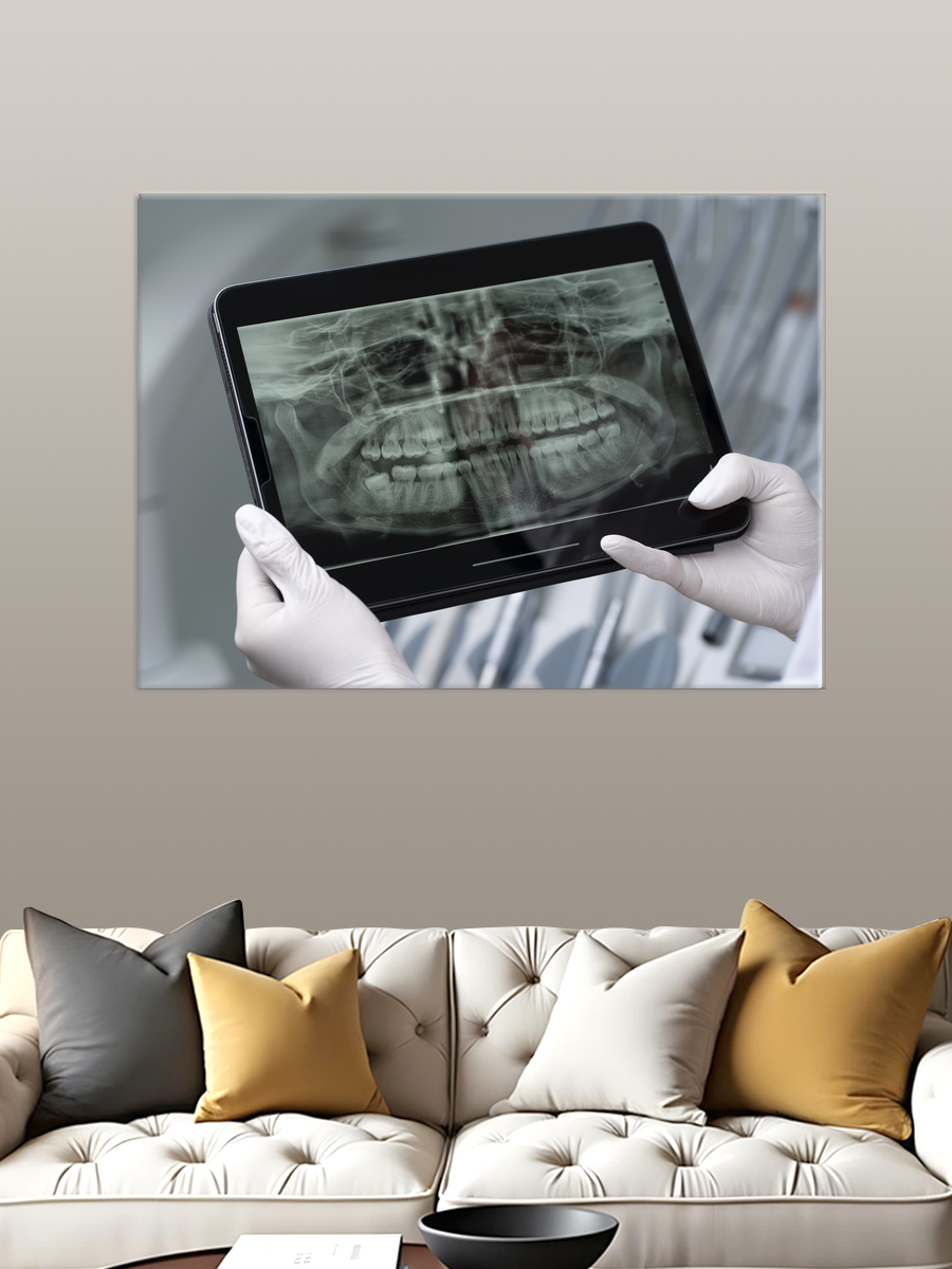 Описание: Картина 50 на 70 "Медицинская Мгла" является уникальным произведением искусства, которое запечатлело момент в стоматологическом кабинете. На изображении мы видим, как врач с аккуратно одетыми перчатками держит планшет с рентгеновским снимком челюсти пациента. Основная идея картины — передать атмосферу заботы и профессионализма, с которой медицинские работники подходят к своей работе. Уникальность этого произведения заключается в сочетании реалистичного изображения и мягкой, приглушенной палитры, создающей ощущение уюта и спокойствия. Картина вызывает широкий спектр эмоций. Она может напомнить о важности заботы о здоровье и профессионализме медицинских работников, а также о том, как важно доверять специалистам. Это произведение сможет стать отличным акцентом в интерьере, создавая атмосферу доверия и спокойствия. Эта картина идеально подходит для размещения в кабинетах стоматологов, медицинских учреждений или даже в домашних условиях, в зонах отдыха, где важно создать атмосферу комфорта и уюта. Она станет не только стильным элементом декора, но и напоминанием о важности здоровья. Разместив её на стене, вы добавите в пространство нотки профессионализма и заботы, что сделает вашу обстановку более гармоничной.