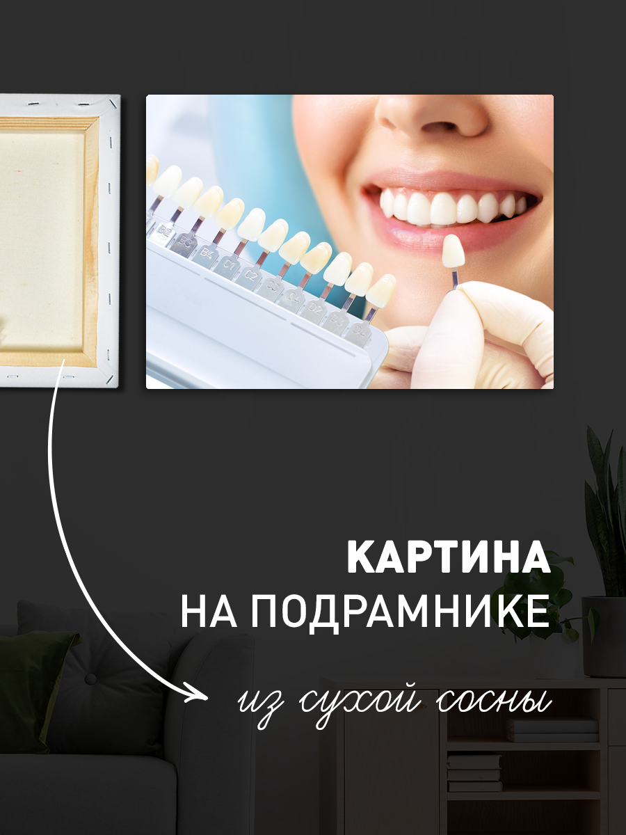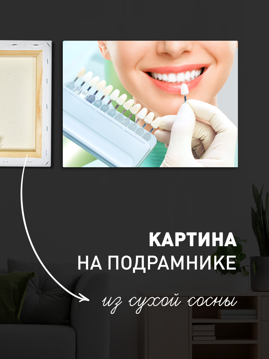 Описание: Картина 50 на 70 "Улыбка стоматолога" изображает момент, когда стоматолог подбирает оттенок зуба для пациента. На переднем плане — яркая, добрая улыбка женщины с идеально белыми зубами, а в руках специалиста — палитра с различными оттенками. Основная идея картины — передать атмосферу заботы и профессионализма в стоматологии. Это уникальное сочетание реализма и легкости вызывает чувство уверенности и спокойствия, помогая избавиться от страха перед лечением зубов. Эмоции, которые вызывает данная картина, — это радость и счастье от здоровой улыбки. Она наполняет пространство позитивной энергией и вдохновляет на заботу о собственном здоровье. Картина идеально впишется в интерьер стоматологического кабинета, создавая дружелюбную атмосферу для пациентов. Но также она будет уместна в домашнем пространстве: в кухне, где собирается семья, или в кабинете, где важно настроение. Благодаря своей яркой цветовой гамме и положительному посланию, она станет центром внимания и поводом для обсуждения.