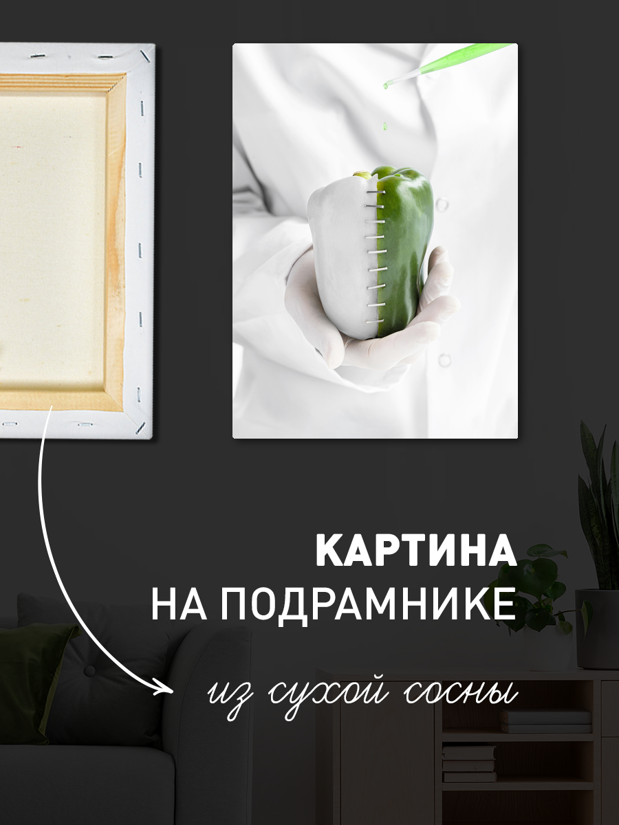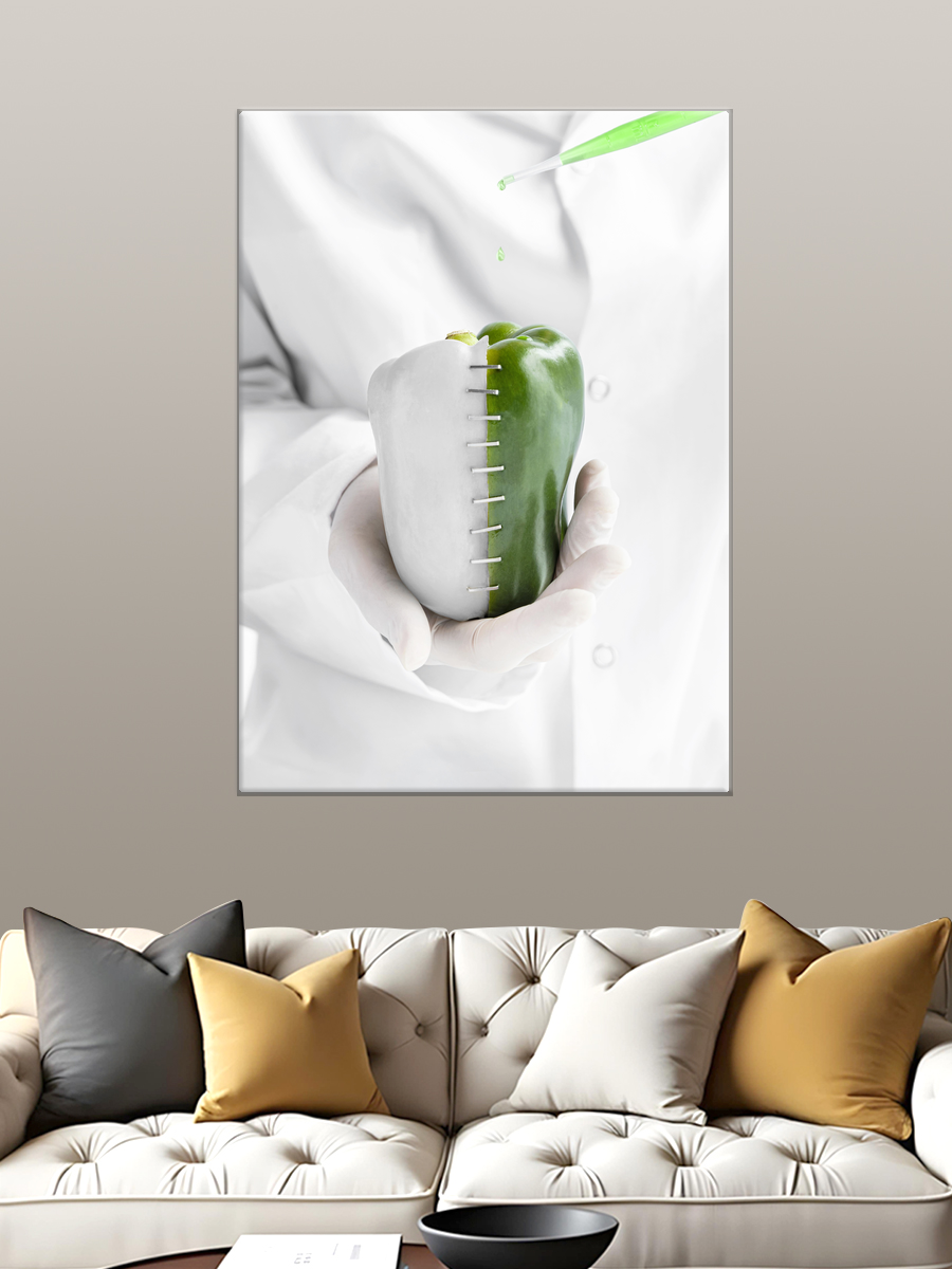 Описание: Картина 50 на 70 "Научный эксперимент с перцем" представляет собой уникальное и вдохновляющее изображение, на котором сочетаются элементы науки и природы. На картине изображен зеленый болгарский перец, который разделен на две половины: одна половина выглядит как натуральный овощ, а другая – как искусственно созданная, белая, с швами, будто бы она прошла через научный эксперимент. Это символизирует взаимодействие природы и науки, подчеркивая уникальность генетически модифицированных продуктов. Эта картина вызывает множество эмоций: от удивления до размышлений о будущем нашей еды и ее производстве. Она побуждает зрителя задуматься о важности научных исследований в нашей жизни и о том, как они могут изменить наш подход к еде и экологии. Картина отлично подойдет для современных интерьеров: офисов, лабораторий, кухонь или даже гостиных, где она станет не только стильным украшением, но и поводом для обсуждения. Ее уникальный дизайн и яркие цвета привнесут свежесть и оригинальность в любое пространство, создавая атмосферу любопытства и вдохновения. Добавьте эту картину в свое окружение и дайте возможность ей стать частью ваших ежедневных размышлений о мире науки и природы.