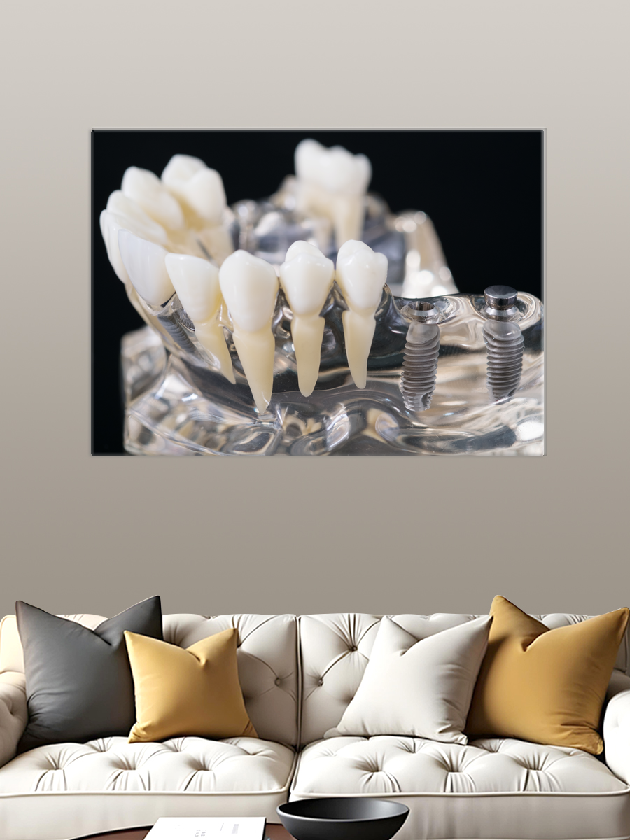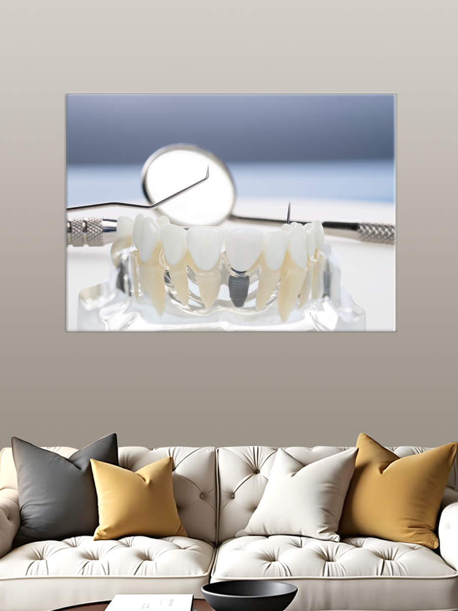 Описание: Картина 50 на 70 "Имплантация зубов" представляет собой детализированное изображение зубной модели, демонстрирующей процесс установки имплантатов. Эта работа не только информирует, но и вызывает интерес к стоматологии, подчеркивая важность здоровья зубов. Уникальность картины заключается в её способности сочетать научный подход с художественным выражением, что делает её идеальной для кабинетов стоматологов или медицинских учреждений. Картина вызывает чувства уверенности и надежды, напоминая о возможностях современной медицины и стоматологии. Она может вдохновить на заботу о собственном здоровье и создать атмосферу профессионализма, что особенно важно в медицинской практике. Эта работа прекрасно вписывается в интерьеры, оформленные в современном или минималистском стиле, а также в клиниках и стоматологических кабинетах. Она станет отличным дополнением к стенам, создавая атмосферу уверенности и комфорта для пациентов. Не упустите возможность украсить ваше пространство этой уникальной картиной, которая подчеркнёт вашу приверженность к качеству и профессионализму.