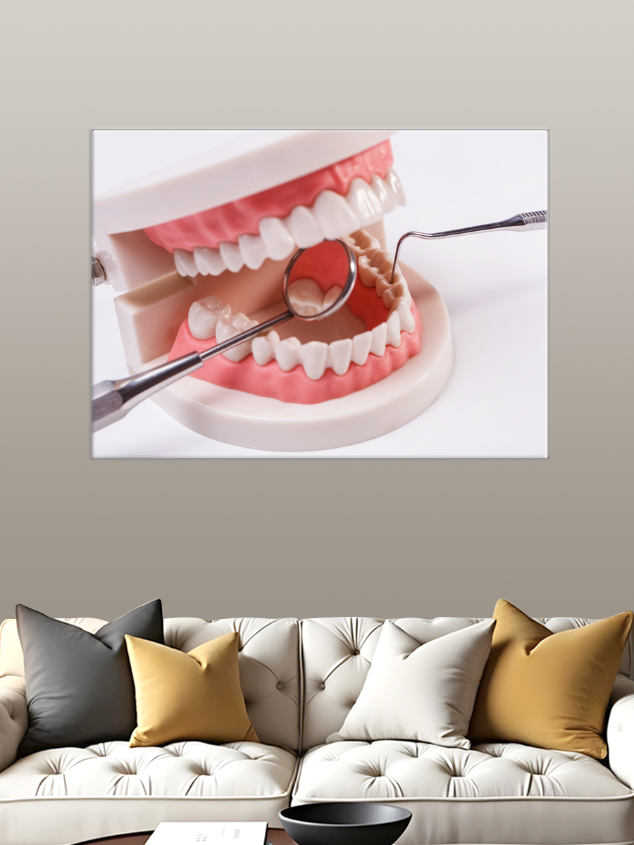 Описание: Картина 50 на 70 "Название картины" представляет собой динамичное изображение зубной модели, выполненное с высокой степенью детализации. Эта уникальная работа погружает зрителя в мир стоматологической эстетики, показывая не только красоту зубов, но и важность их здоровья. С помощью игры света и тени картина передает ощущение объема и реальности, что делает её особенно привлекательной для профессионалов в области стоматологии и любителей искусства. Эмоции, которые вызывает эта картина, варьируются от восхищения до глубокого уважения к искусству стоматологии. Она способна пробудить у зрителя интерес к теме зубной эстетики, напомнить о важности заботы о здоровье зубов и вдохновить на ежедневную гигиену и профилактику. Эта картина отлично впишется в интерьер стоматологического кабинета, создавая атмосферу профессионализма и уюта, или в домашний офис, где она будет напоминать о важности здоровья. Также она станет оригинальным акцентом в современном интерьере, привлекая внимание гостей и создавая обсуждения на тему здоровья и искусства. Подобная работа станет отличным подарком для стоматологов, студентов медицинских вузов или всех, кто ценит уникальность и креативность в искусстве.
