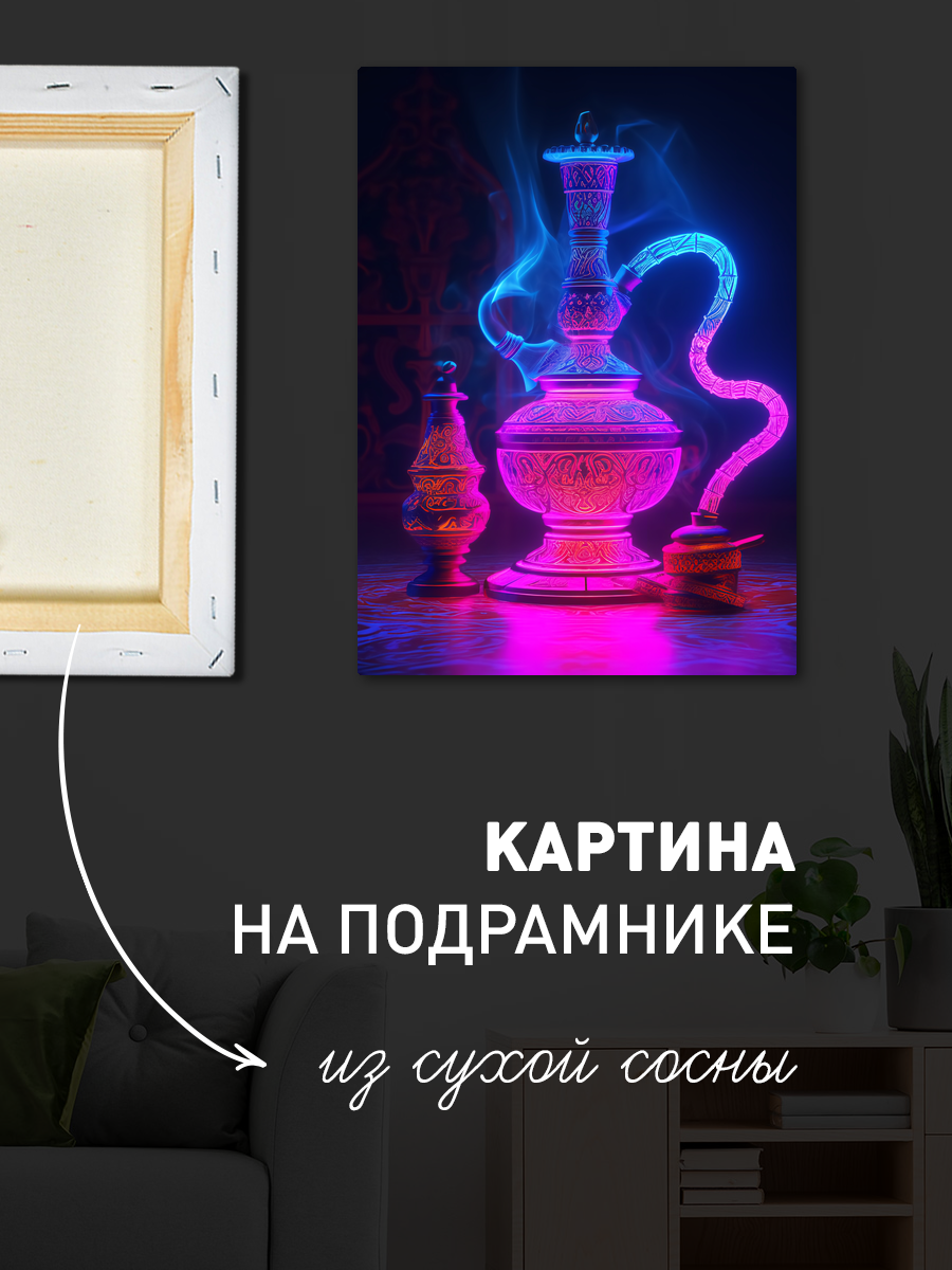 Описание: Картина 50 на 70 "Тайна ночи" — это завораживающее произведение искусства, которое погружает зрителя в атмосферу таинственного вечера. На картине изображена изящная кальянная, освещенная мягким светом, который отражается на стекле и создает волшебную игру теней. Основная идея картины заключается в передаче уюта и расслабления, которые испытывают люди во время общения в теплой обстановке. Уникальность этого произведения заключается в сочетании современных элементов и традиционного восточного стиля, что делает его универсальным для различных интерьеров. Эмоции, которые вызывает эта картина, — это спокойствие и умиротворение. Она заставляет задуматься о приятных моментах, проведенных с близкими, и о том, как важно находить время для отдыха и общения. Цветовая палитра картины, насыщенная глубокими синими и фиолетовыми оттенками, создает атмосферу загадки и уюта, что делает её идеальной для расслабляющего пространства. Эта картина прекрасно впишется в интерьер современных квартир, оформленных в стиле минимализма или лофта. Она станет ярким акцентом в гостиной, кабинете или даже в зоне отдыха, добавляя глубину и характер в любое пространство. Повесьте её на стену рядом с мягким диваном или в уголок, где вы любите проводить время с книгой, и пусть она вдохновляет вас на новые беседы и идеи.