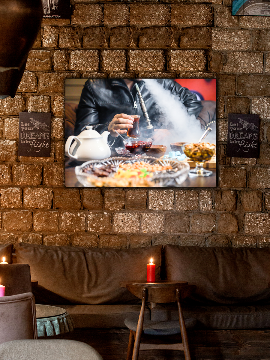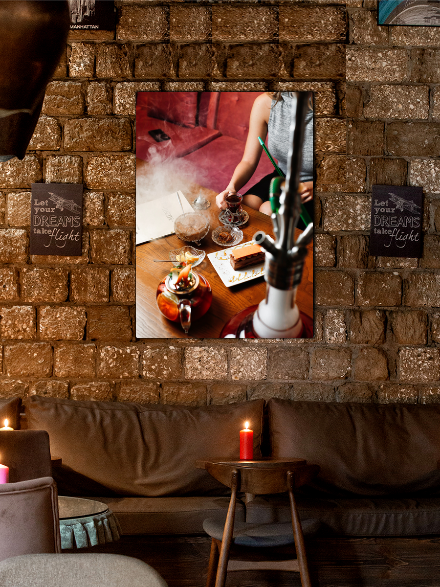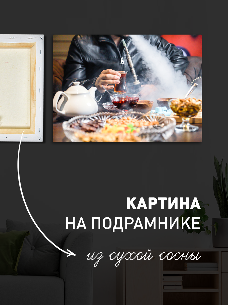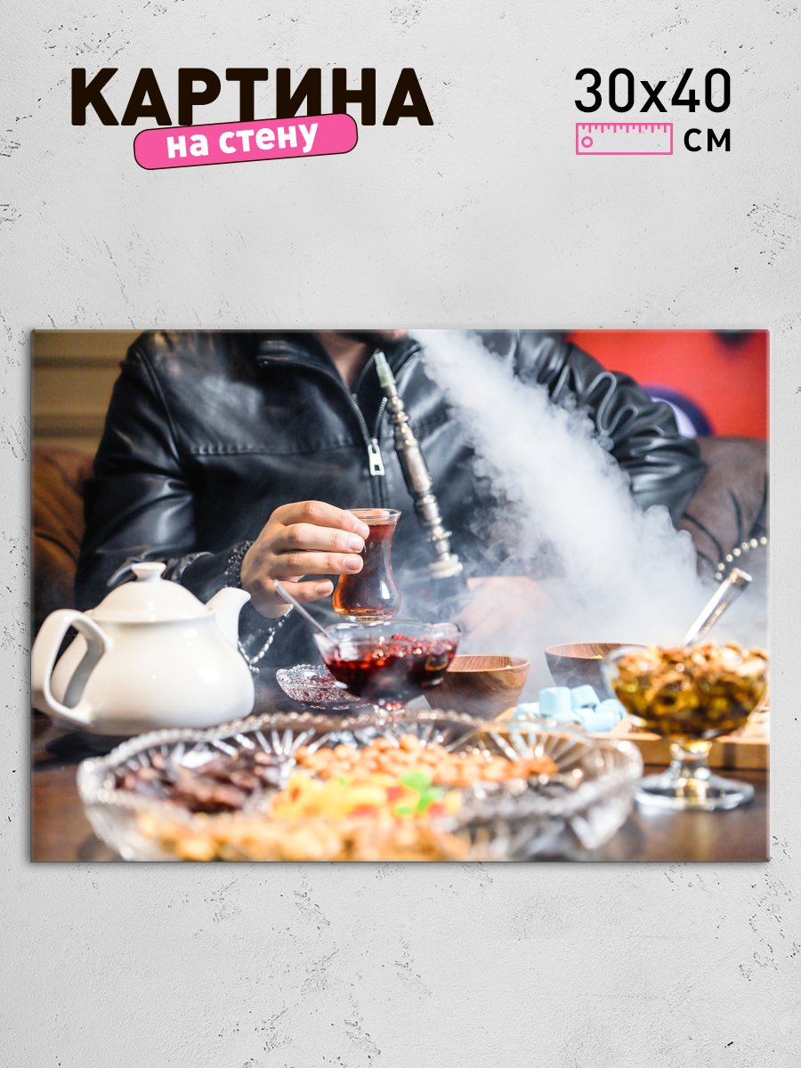 Описание: Картина 50 на 70 "Восточная дымка" переносит зрителя в атмосферу уютного восточного кафе, где мягкий свет и ароматы создают неповторимую атмосферу. На картине изображен человек, наслаждающийся ароматным чаем, в окружении изысканных сладостей и дымящегося кальяна, что символизирует расслабление и наслаждение жизнью. Уникальность этой работы заключается в сочетании теплых тонов и деталей, которые заставляют зрителя почувствовать себя частью этой интимной обстановки. Эта картина вызывает чувство тепла, спокойствия и умиротворения, напоминая о важных моментах, проведенных с близкими людьми. Она может стать центральным элементом вашего интерьера, привнося в него нотки восточной культуры и уюта. Подойдет для гостиной, кафе или ресторана, где хочется создать атмосферу дружелюбия и комфорта. Также картина будет уместна в спальне, добавляя романтические акценты. "Восточная дымка" — это не просто картина, это возможность добавить в ваш дом частичку восточной магии.