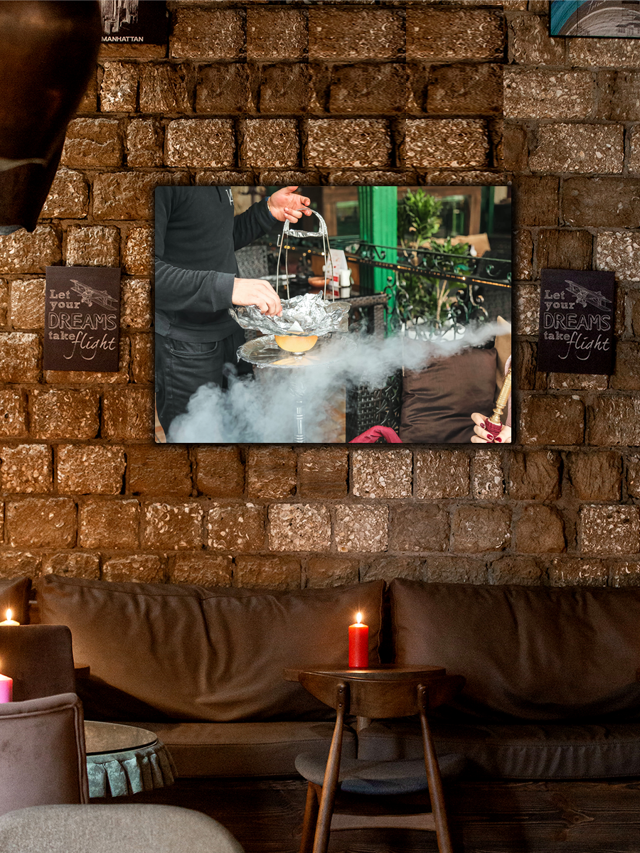 Описание: Картина 50 на 70 "Дымный вечер" представляет собой завораживающий момент, запечатленный на холсте. На изображении мы видим молодого человека, погруженного в процесс курения кальяна, окруженного облаками густого дыма. Основная идея картины — передать атмосферу расслабления и уединения, в которой каждый может найти свой момент покоя. Уникальность этой работы заключается в контрасте между яркими цветами дыма и темным фоном, создающим мистическую и уютную атмосферу. Эта картина вызывает чувства спокойствия и интроспекции. Белый и голубой дым, плавно перетекающий друг в друга, создает ощущение легкости и свободы, в то время как темные оттенки фона добавляют глубины и загадочности. Смотря на эту картину, зритель может ощутить себя частью уединенного вечера, когда время останавливается, и все заботы уходят на второй план. "Дымный вечер" станет прекрасным акцентом в любом интерьере, будь то современная квартира, стильный лофт или уютная гостиница. Она отлично впишется в гостиную, создавая атмосферу расслабления и уюта, или в кабинет, добавляя нотку креативности. Также эта картина может стать интересным дополнением к зоне отдыха в кафе или баре, привлекая внимание клиентов и создавая уникальную атмосферу. Подходя к любому стилю оформления, она станет настоящим произведением искусства, которое будет радовать глаз и вдохновлять на новые идеи.