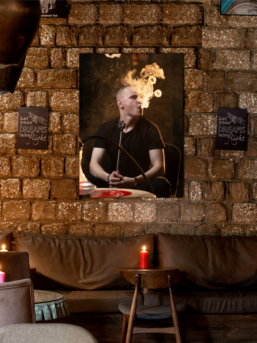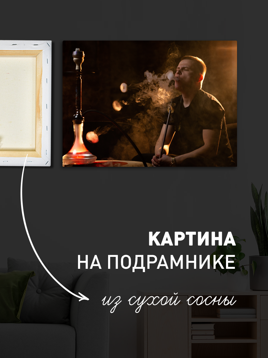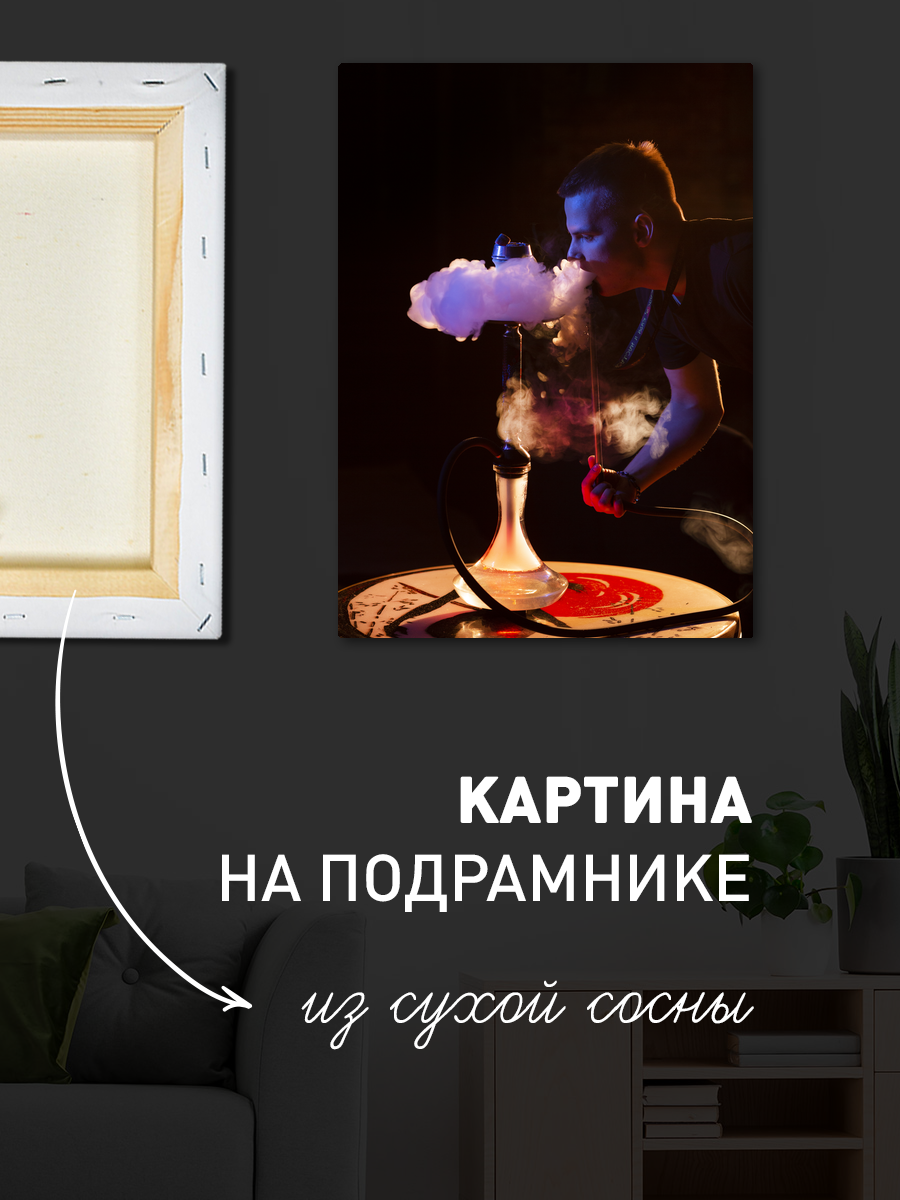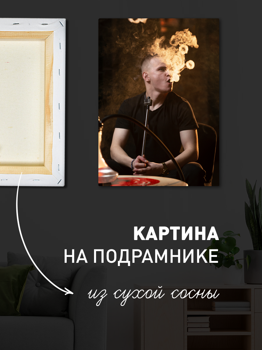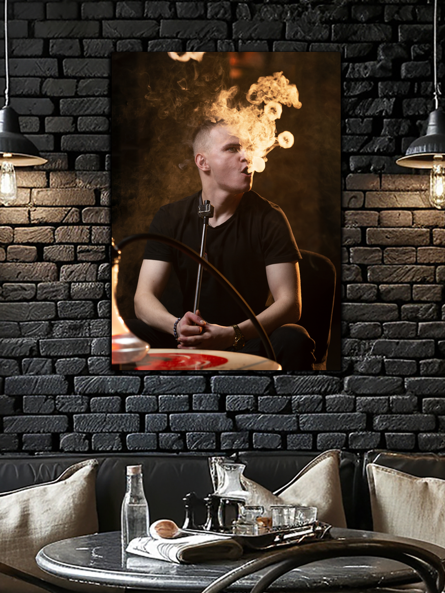 Описание: Картина 50 на 70 "Дым и расслабление" изображает молодого человека, погруженного в атмосферу уюта и спокойствия, наслаждающегося процессом курения кальяна. На фоне теплых деревянных стен и мягкой мебели картину наполняет особая гармония, создавая уникальную атмосферу расслабления и уединения. Эта работа пробуждает в зрителе чувства спокойствия и умиротворения, позволяя на мгновение отвлечься от повседневной суеты. Эмоции, которые вызывает данное произведение, – это сочетание умиротворения и легкой ностальгии. Глядя на картину, вы можете почувствовать запах ароматного табака и услышать тихий звук шипения углей. Это изображение идеально передает момент, когда вы просто сидите, наслаждаясь обществом друзей и беседой, или проводите время в одиночестве, погружаясь в свои мысли. Эта картина станет отличным дополнением к интерьеру, оформленному в стиле лофт или минимализм, а также к уютным кафе и lounge-зонам. Она прекрасно впишется в пространство гостиной, делая его более уютным и стильным, или в кабинет, создавая атмосферу спокойствия для работы и размышлений. Каждый, кто увидит эту картину, будет привлечён её уникальным стилем и глубиной, что делает её не только украшением, но и разговорным элементом вашего интерьера.