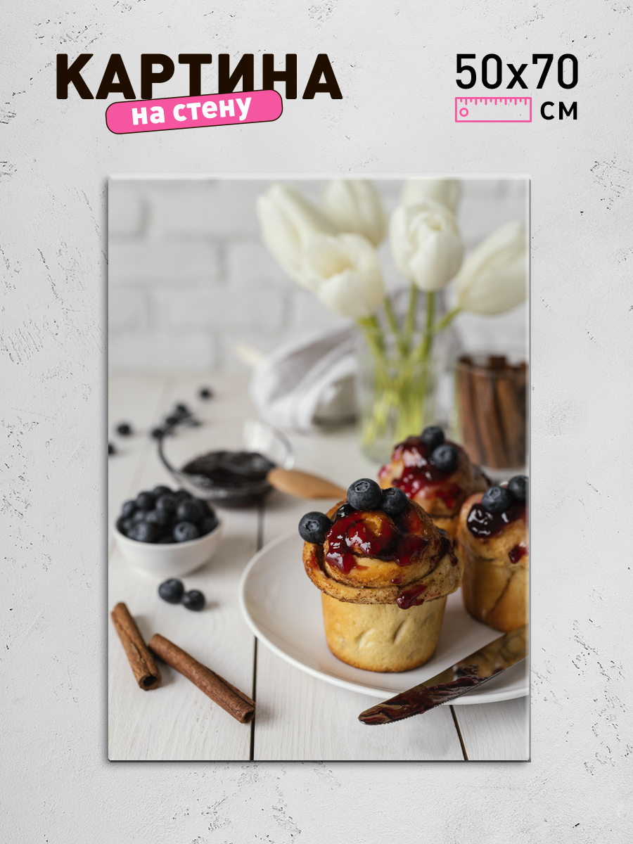Описание: Картина 50 на 70 "Блюда с ягодами и корицей" представляет собой яркий и аппетитный натюрморт. На изображении запечатлены свежие булочки с ягодами и корицей, украшенные сладкой глазурью и черникой. Эта работа не только радует глаз, но и вызывает желание насладиться вкусом этих лакомств. Уникальность картины заключается в её способности передать атмосферу уюта и домашнего тепла, что делает её идеальным дополнением для кухни или столовой. Картина вызывает тёплые эмоции и ассоциации с семейными встречами и праздниками, когда на столе всегда присутствуют вкусные угощения. Она наполнена светом и радостью, создавая ощущение счастья и благополучия. Каждый взгляд на эту картину пробуждает аппетит и желание собраться за столом с близкими. Эта работа отлично впишется в любой интерьер, будь то современная кухня, уютная столовая или даже гостиная. Она станет центром притяжения внимания и отличным поводом для обсуждения, а также добавит ярких красок в ваше пространство. Не упустите возможность украсить свой дом этой замечательной картиной, которая привнесет в ваш интерьер атмосферу тепла и радости.