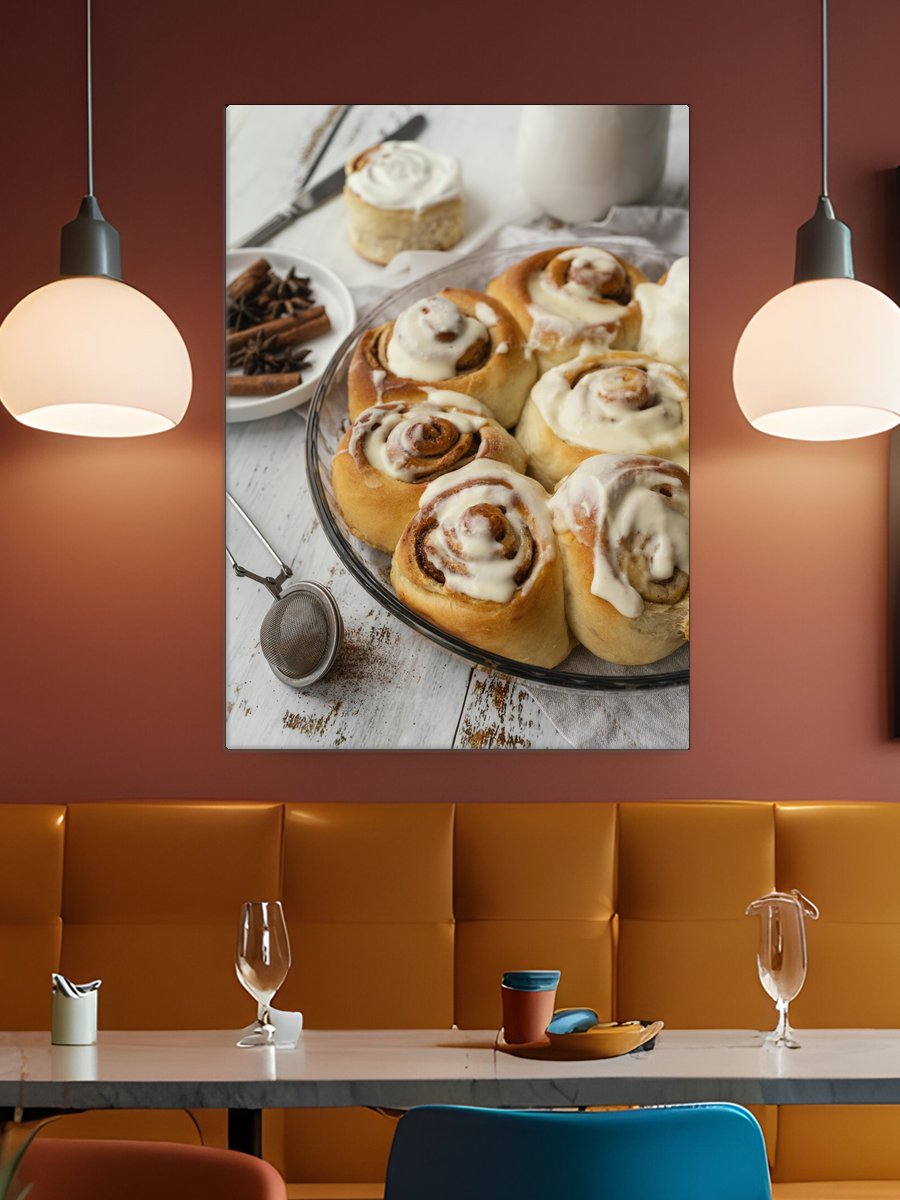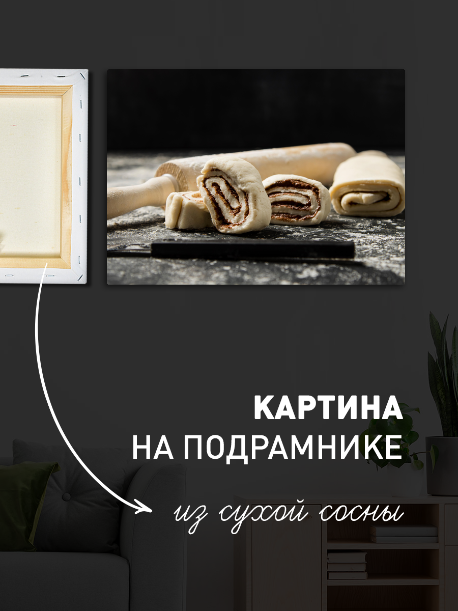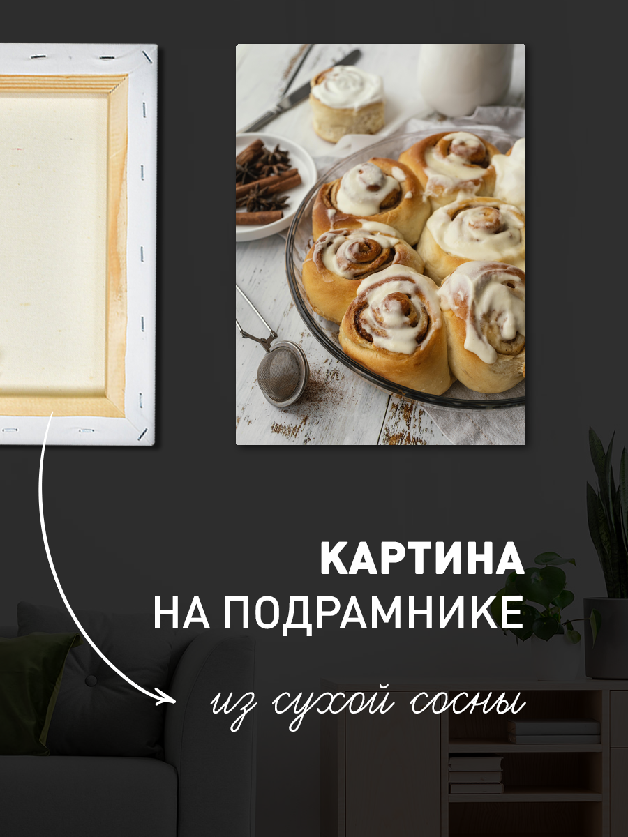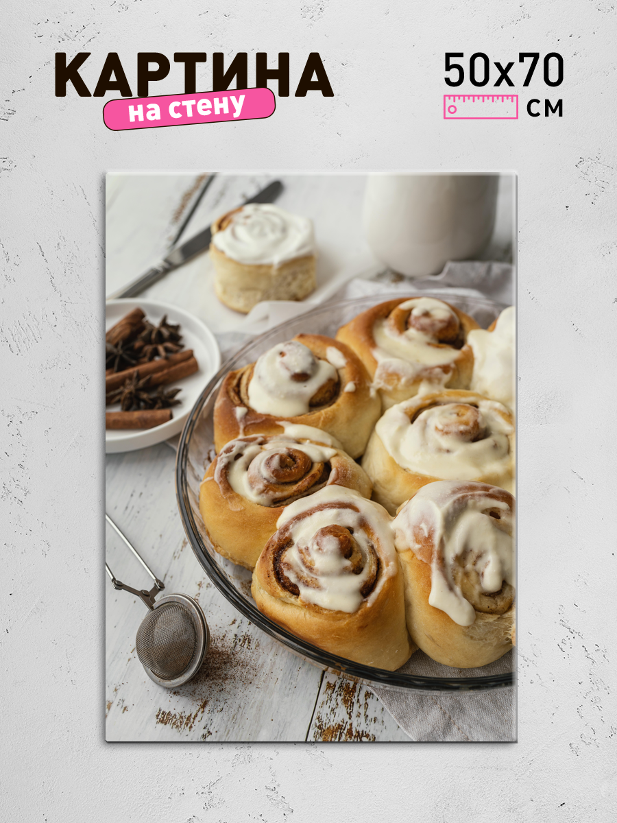 Описание: Картина 50 на 70 "Сочные булочки" изображает аппетитные коричневые булочки с белоснежной глазурью, аккуратно расположенные на прозрачной тарелке. Рядом с ними находятся ароматные палочки корицы и звездочки аниса, создавая атмосферу уюта и домашнего тепла. Основная идея картины заключается в празднике жизни и наслаждении простыми радостями, такими как свежая выпечка. Эта картина вызывает теплые, приятные эмоции, напоминая о счастливо проведенных моментах за столом с близкими. Она пробуждает желание насладиться вкусом и ароматом домашней выпечки, создавая атмосферу уюта и комфорта. Картина отлично впишется в кухонный интерьер, добавляя ему изысканности и стиля, а также станет замечательным акцентом в гостиной или столовой. Ее можно повесить над обеденным столом или на стене рядом с кухонным гарнитуром, где она будет радовать глаз и вдохновлять на кулинарные эксперименты. Сочетание теплых и нейтральных тонов делает эту картину универсальной для различных стилей интерьера, от современного до классического.