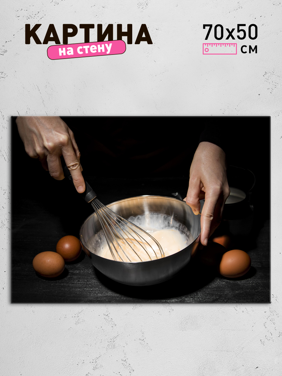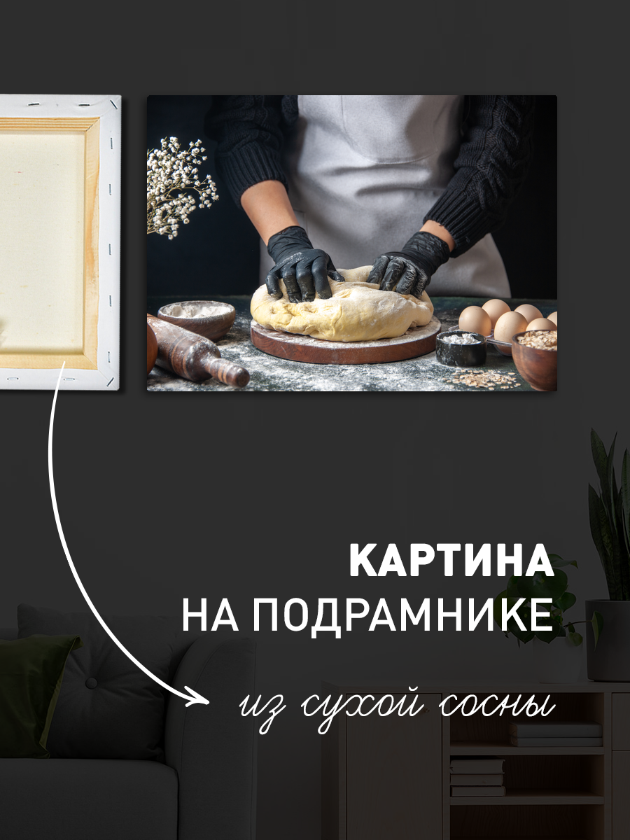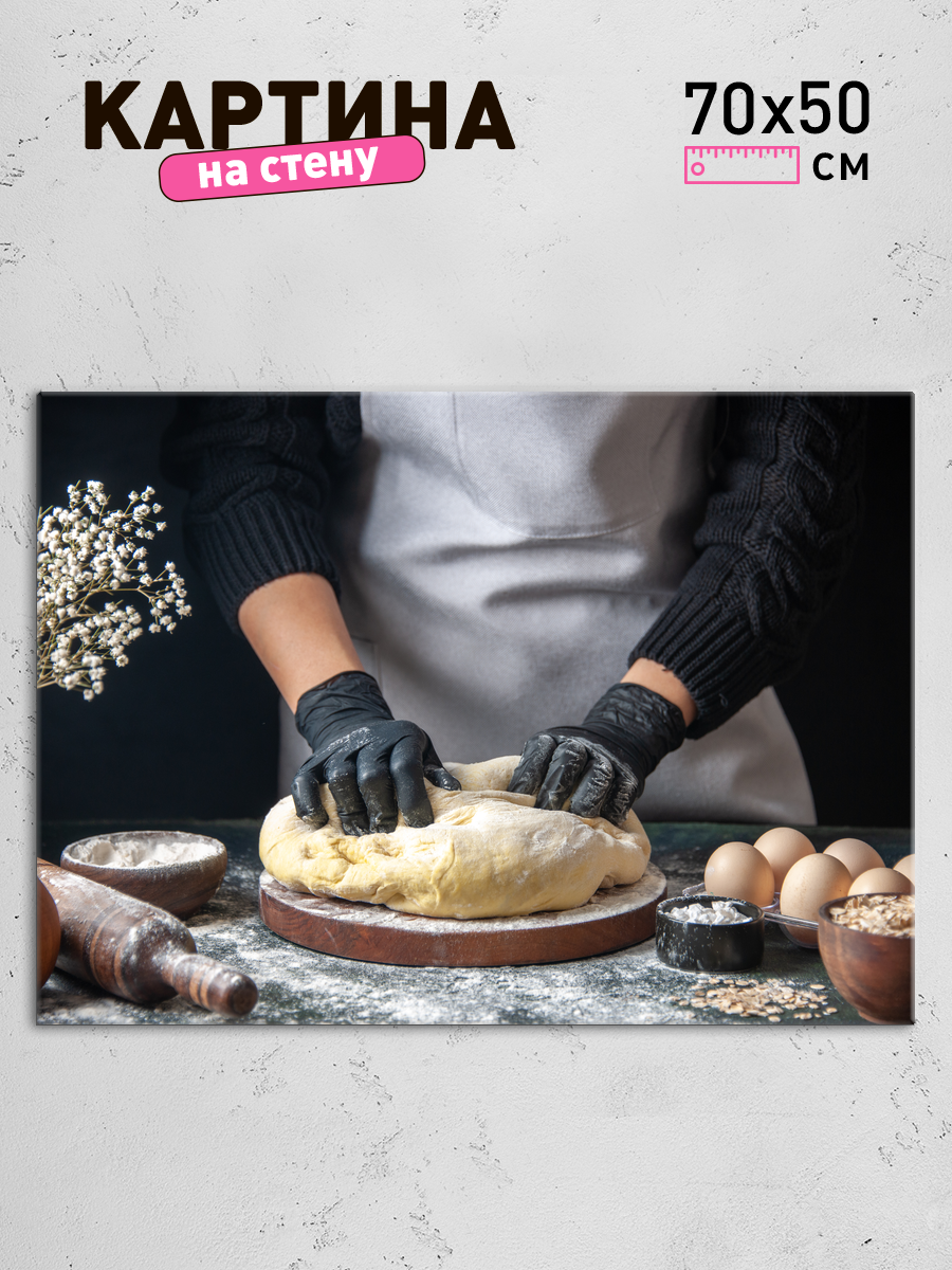 Описание: Картина 50 на 70 "Волшебство теста" изображает процесс замешивания теста, где руки мастера, облаченные в черные перчатки, с любовью и вниманием работают с мягким и эластичным тестом. Вокруг разложены ингредиенты: яйца, мука и овсянка, создающие атмосферу уюта и домашнего тепла. Эта картина вызывает приятные эмоции, напоминая о семейных традициях и радостных моментах, проведенных на кухне. Она станет отличным акцентом в кухонном интерьере или столовой, привнося в пространство тепло и уют. Важно отметить, что эта картина подчеркнёт стиль как классического, так и современного интерьера, создавая гармонию в вашем доме.