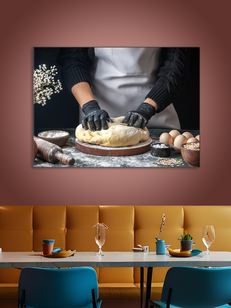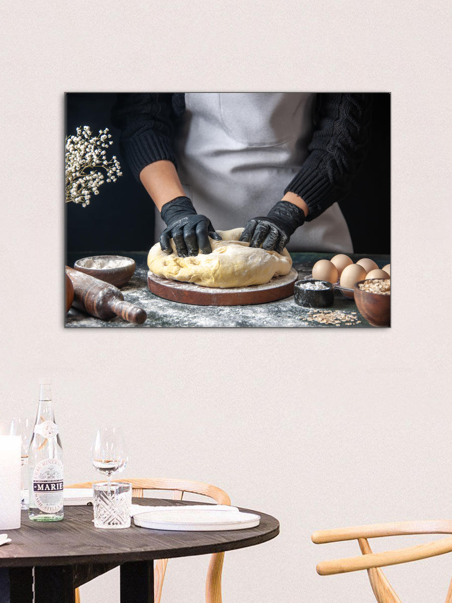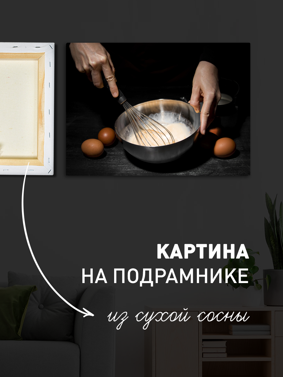 Описание: Картина 50 на 70 "Волшебство теста" изображает процесс замешивания теста, где руки мастера, облаченные в черные перчатки, с любовью и вниманием работают с мягким и эластичным тестом. Вокруг разложены ингредиенты: яйца, мука и овсянка, создающие атмосферу уюта и домашнего тепла. Эта картина вызывает приятные эмоции, напоминая о семейных традициях и радостных моментах, проведенных на кухне. Она станет отличным акцентом в кухонном интерьере или столовой, привнося в пространство тепло и уют. Важно отметить, что эта картина подчеркнёт стиль как классического, так и современного интерьера, создавая гармонию в вашем доме.