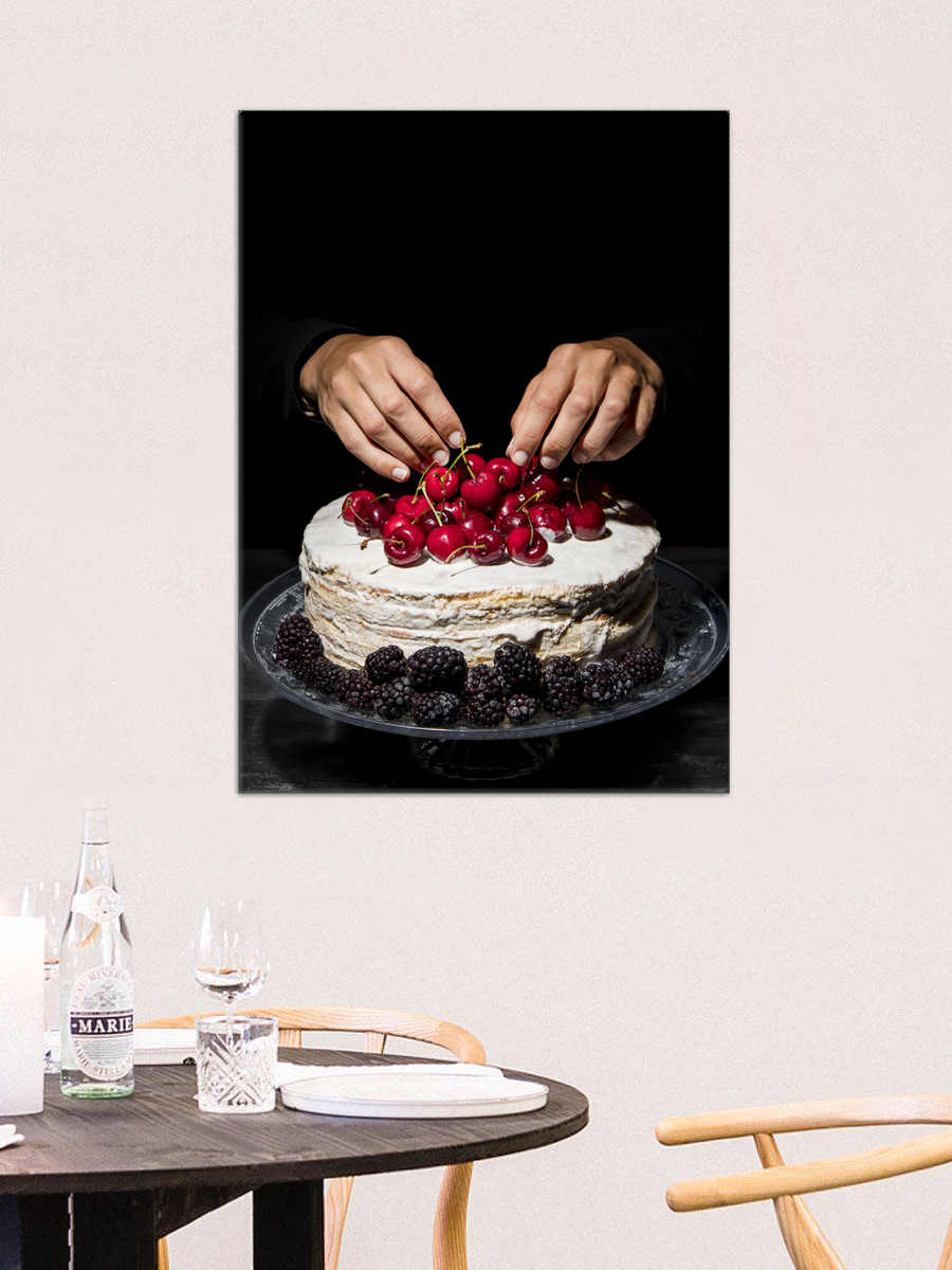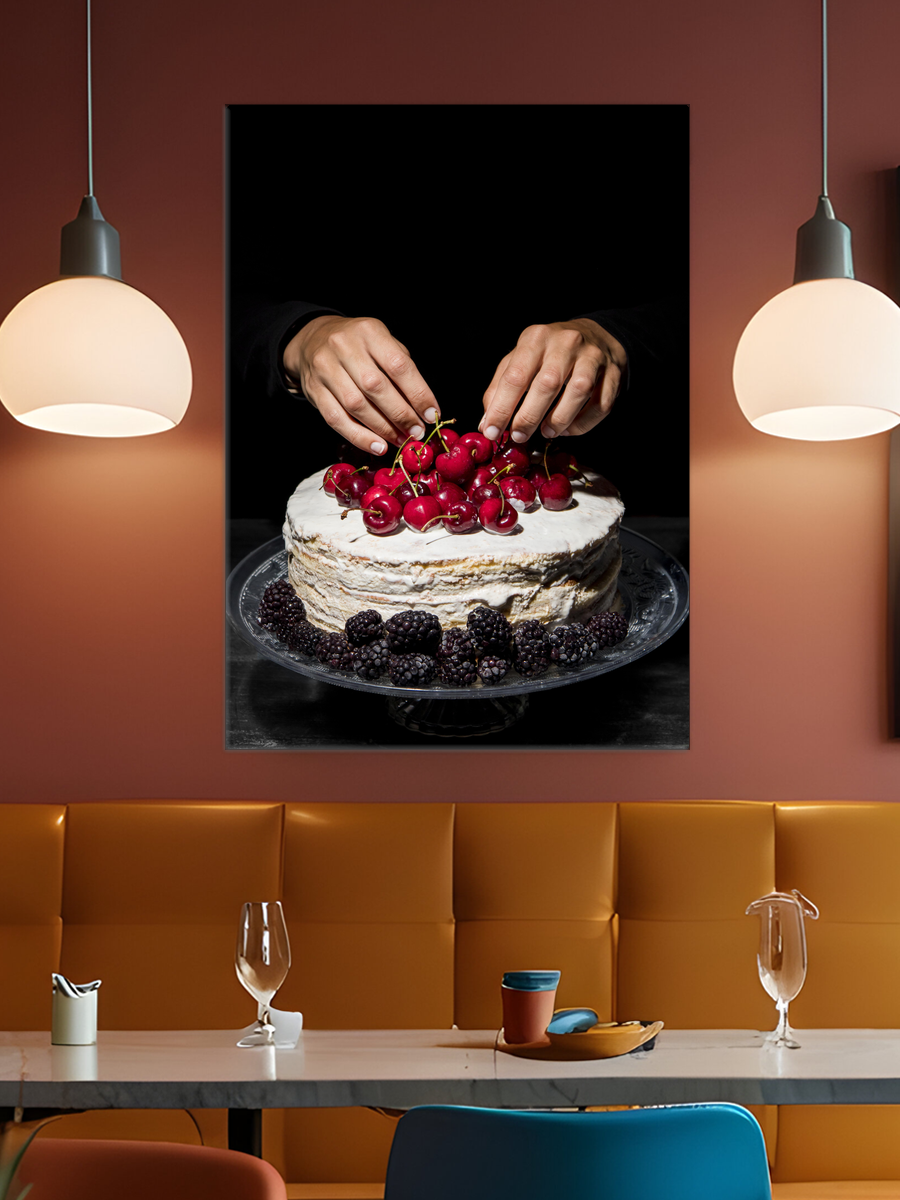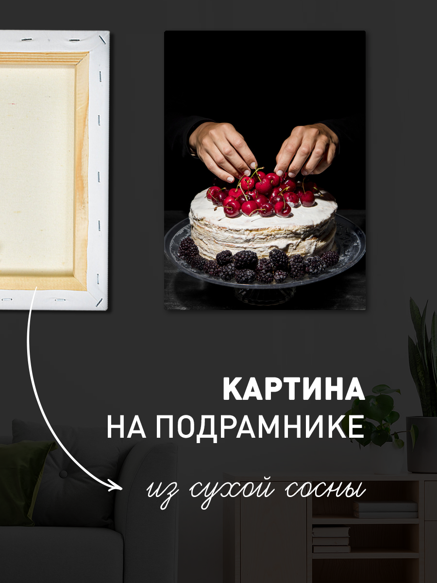 Описание: Картина 50 на 70 "Вишневая симфония" изображает изысканный торт, украшенный свежими вишнями и черникой, на фоне глубокого черного цвета. Это произведение искусства привлекает внимание своей уникальной композицией и текстурой, создавая атмосферу праздника и уюта. Яркие вишни, контрастирующие с нежным кремом и темным фоном, вызывают чувство радости и вдохновения. Эта картина станет акцентом в любом интерьере, добавляя нотку элегантности и стиля. Она прекрасно впишется в кухню, столовую или даже гостиную, создавая атмосферу тепла и уюта. Она также идеально подойдет для оформления кафе или кондитерской, привлекая внимание гостей и создавая уютную обстановку. Уникальность данной картины заключается в её способности вызывать позитивные эмоции и воспоминания о приятных моментах, связанных с десертами и праздниками.