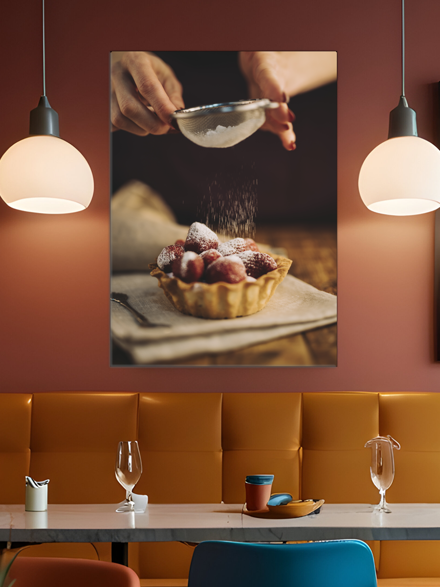 Описание: Картина 50 на 70 "Пирог с ягодами" изображает изысканно оформленный десерт, который вызывает чувство уюта и домашнего тепла. На переднем плане находится тарт с ягодами, покрытый легким слоем сахарной пудры, который словно искрится на свету, создавая атмосферу праздника. Основная идея картины — передать радость простых моментов жизни и наслаждение сладкими угощениями. Уникальность картины заключается в мастерски переданных деталях, которые делают её почти реалистичной. Каждый штрих создает ощущение свежести и аппетита. Эта работа пробуждает приятные воспоминания о семейных встречах и праздниках, наполняя пространство теплом и гармонией. Картина прекрасно подойдет для кухни, столовой или даже гостиной, добавляя уют и стиль в любое пространство. Её можно повесить над обеденным столом или на стене, где собираются друзья и семья, чтобы подчеркнуть атмосферу тепла и дружбы.