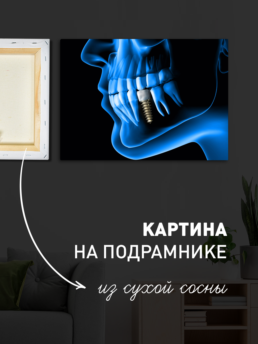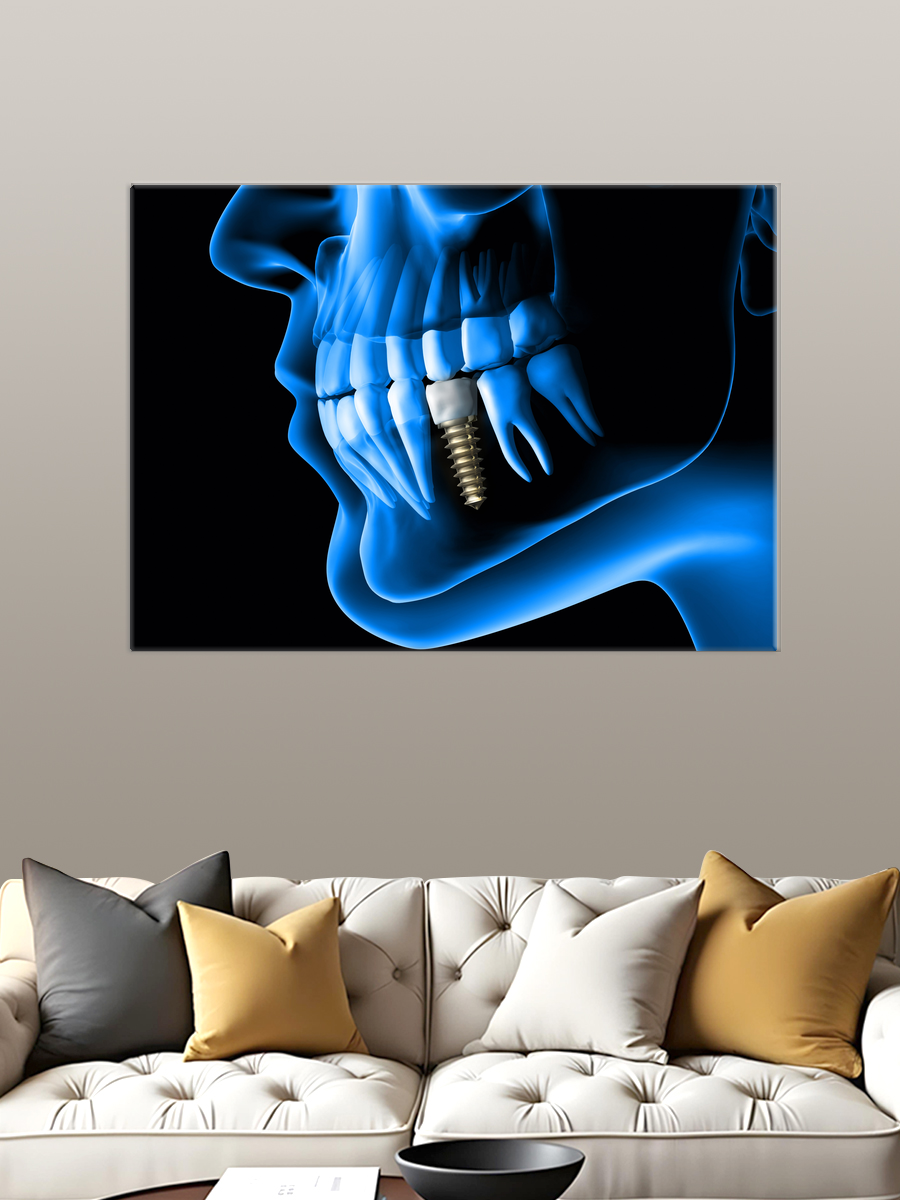 Описание: Картина 50 на 70 "Имплант" изображает детализированное изображение челюсти с установленным имплантом. Эта работа выполнена в стильной и современный манере, где сочетание голубого и белого цветов создает ощущение чистоты и медицинской точности. Основная идея картины заключается в исследовании темы стоматологии и здоровья, что делает ее уникальной и актуальной для современного общества. Эта картина вызывает чувство спокойствия и уверенности, благодаря её четким линиям и гармоничному цвету. Она может стать отличным акцентом в любом интерьере, особенно в кабинете стоматолога, медицинском учреждении или даже в домашнем пространстве, где ценят эстетику и здоровье. Картина прекрасно впишется в современный интерьер, добавляя ему изысканности и оригинальности. Она может быть повешена в коридоре, кабинете или даже в гостиной, где станет интересным разговорным элементом для гостей. Уникальность и стиль изображения сделают эту картину настоящим украшением вашего пространства.