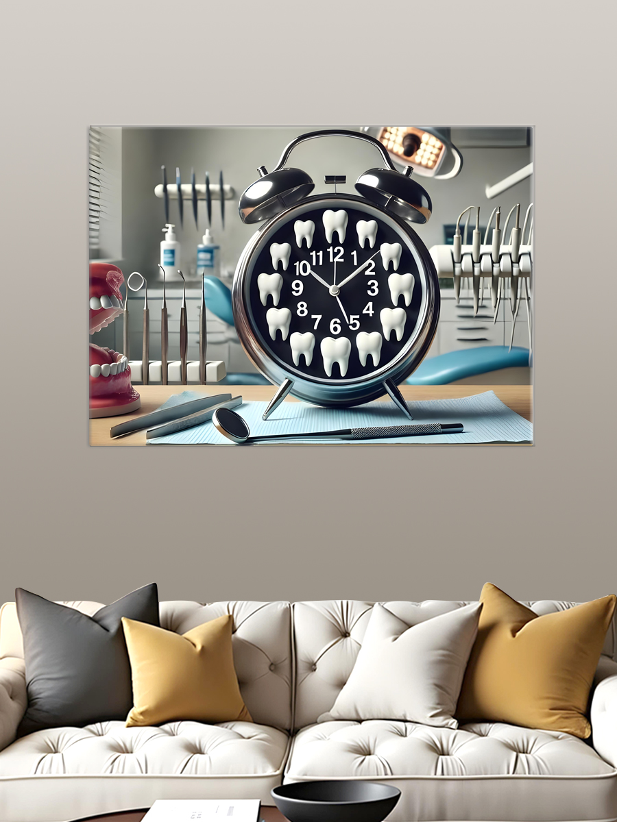 Описание: Картина 50 на 70 "Тема стоматологии" – это уникальное произведение искусства, которое сочетает в себе элементы юмора и профессионализма. На холсте изображены зубы, оформленные в виде циферблата, что придаёт картине необычный и запоминающийся вид. Основная идея картины – показать, как важно заботиться о здоровье зубов и при этом сохранять лёгкость и радость в этом процессе. Эта картина вызывает чувство ностальгии и улыбку, ведь она напоминает о том, как важно посещать стоматолога и следить за состоянием зубов, не забывая о позитивном взгляде на эту тему. Она может стать отличным источником вдохновения и поднятия настроения, особенно в кабинетах стоматологов, клиниках или даже в домашних условиях. Картину можно повесить в офисе, кабинете врача или даже на кухне, где она создаст дружелюбную атмосферу общения. Она прекрасно впишется в интерьеры, оформленные в современном стиле, и станет интересным акцентом в любом помещении. Эта работа станет не только украшением, но и напоминанием о важности заботы о здоровье. Подарите себе или своим близким эту оригинальную картину, которая обязательно вызовет улыбку и добавит немного яркости в повседневную жизнь.