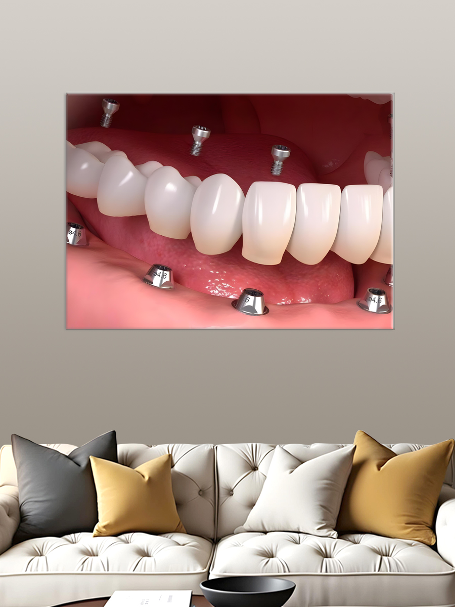 Описание: Картина 50 на 70 "Зубная гармония" изображает детализированную анатомию зубов с установкой имплантатов. Эта работа выделяется своим реалистичным подходом к стоматологической теме, подчеркивая важность здоровья зубов и ухода за ними. Уникальность картины заключается в мастерски выполненной текстуре и цветовой гамме, которая вызывает интерес и заставляет задуматься о стоматологической эстетике. Картина вызывает чувство спокойствия и уверенности, напоминая о важности заботы о своем здоровье. Она идеально подойдет для интерьеров стоматологических клиник, кабинетов врачей, а также для домашнего пространства, где ценят медицинскую тематику. Разместите её в кабинете или на стене в коридоре, чтобы создать атмосферу профессионализма и заботы.