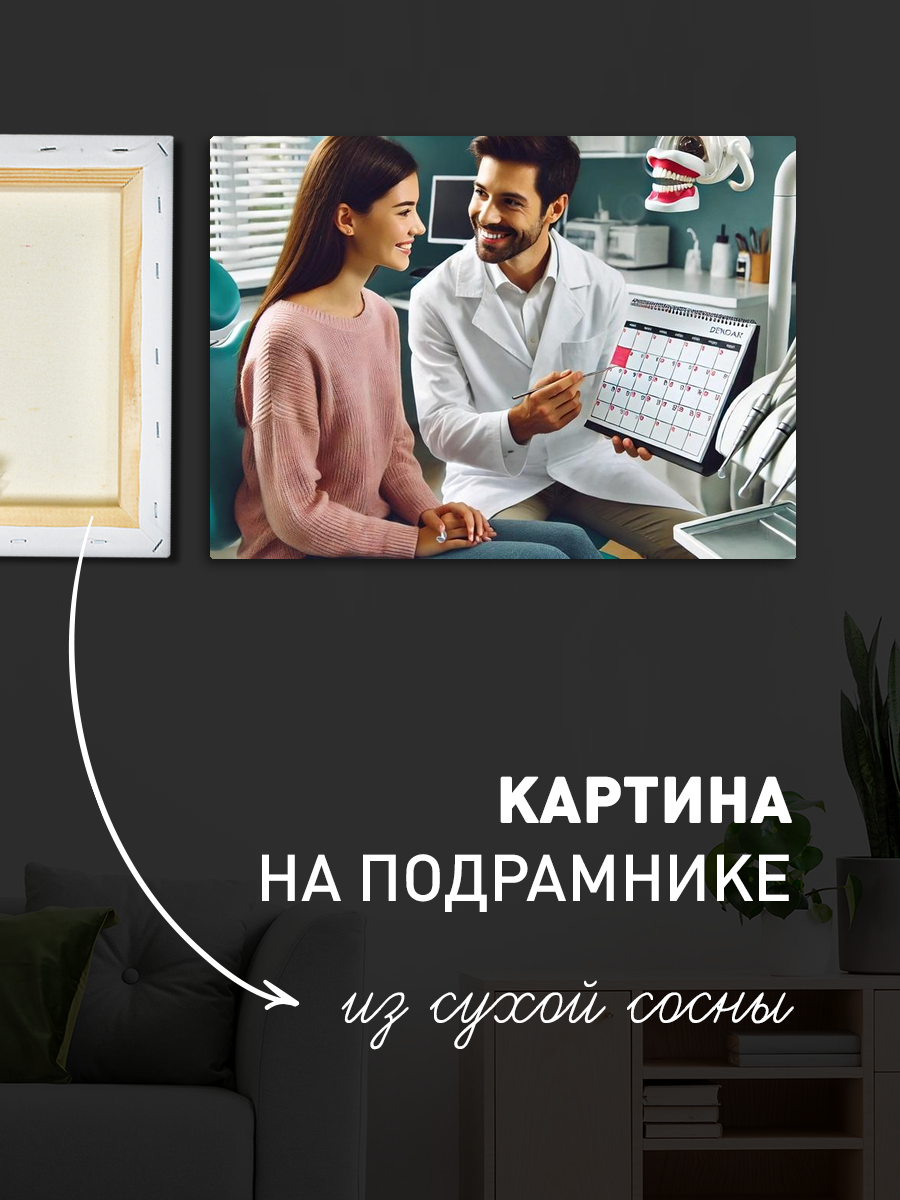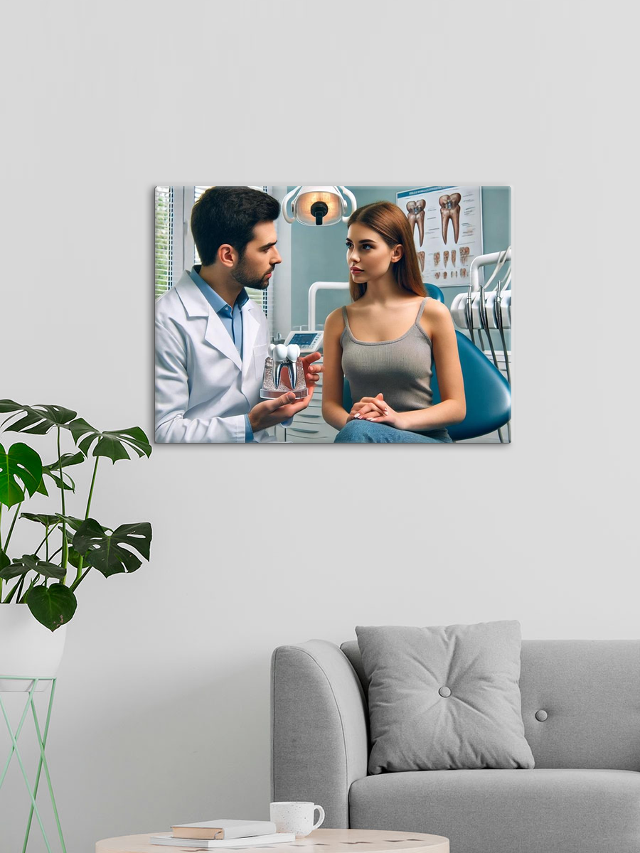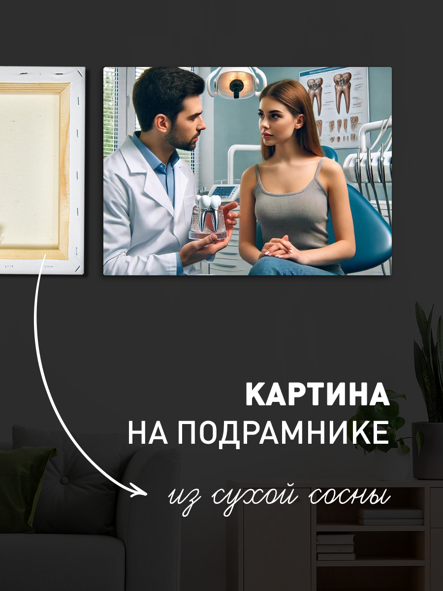 Описание: Картина 50 на 70 "Диалог в стоматологии" погружает зрителя в атмосферу доверия и профессионализма. На изображении врач объясняет пациенту особенности стоматологического лечения, используя модель зуба. Это искусство не только отражает важность стоматологической помощи, но и подчеркивает эмоциональную связь между врачом и пациентом. Картина вызывает чувство спокойствия и уверенности, напоминая о заботе о здоровье и важности профессионального подхода. Эмоции, которые пробуждает это произведение, варьируются от комфорта и доверия до надежды на лучшее здоровье. Оно создаст уютную атмосферу в вашем кабинете, стоматологической клинике или даже в домашнем интерьере, где важно ощущение заботы и внимания. Картина идеально впишется в современный интерьер, добавляя нотку профессионализма и тепла. Она станет прекрасным акцентом в зоне отдыха, кабинете врача или холле медицинского учреждения, создавая атмосферу доверия и уважения к профессии. Приобретая эту картину, вы не только обогатите свое пространство, но и подчеркнете значимость здоровья и профессионализма в жизни каждого человека.
