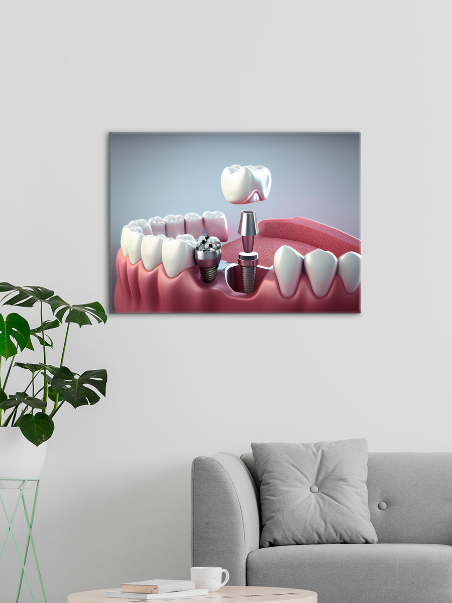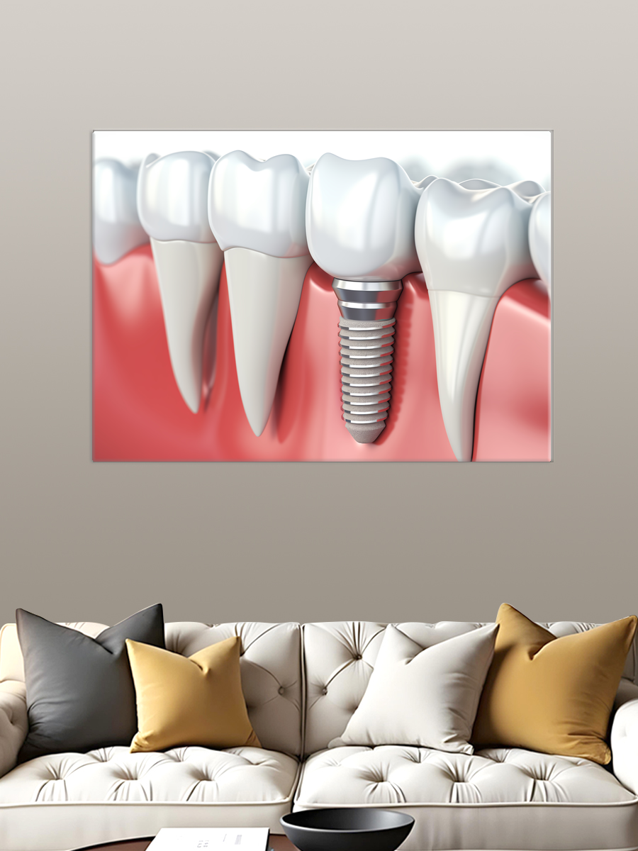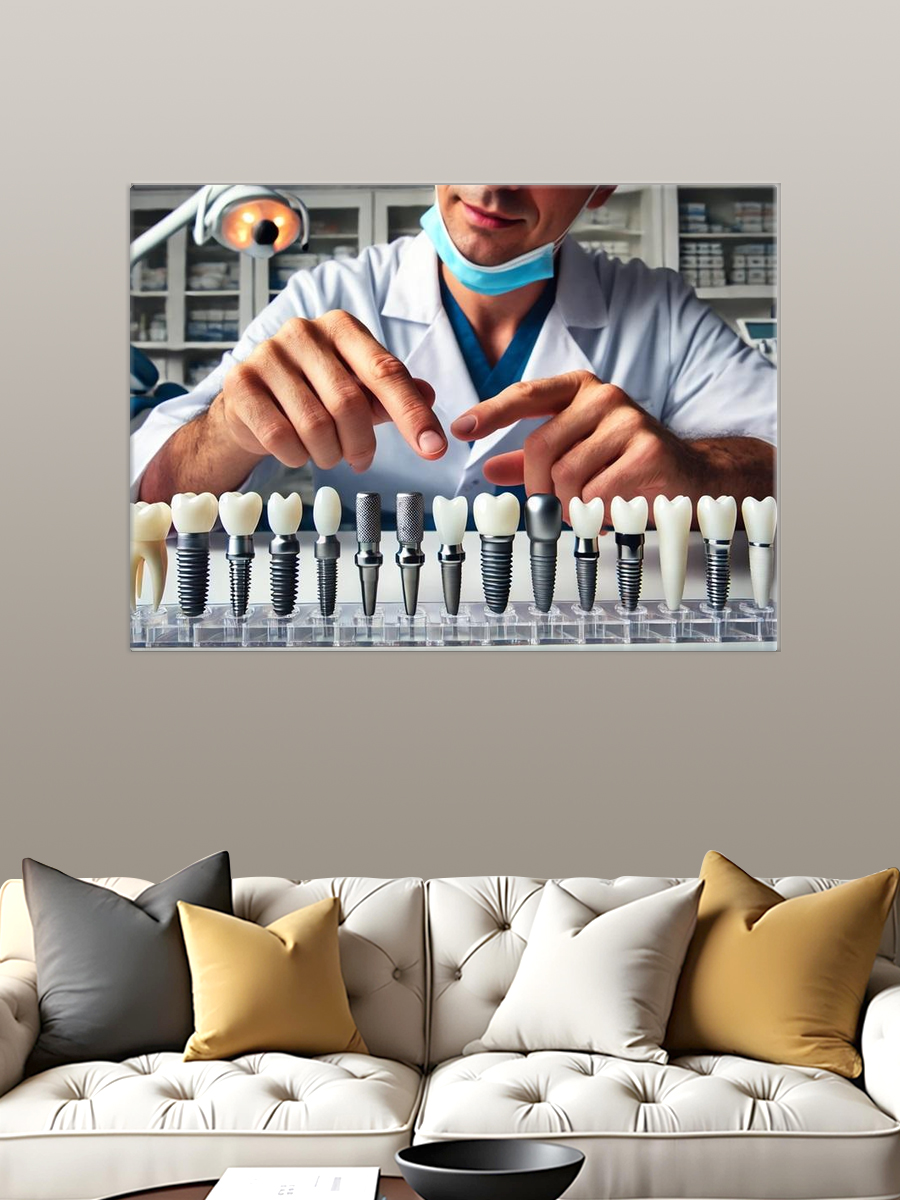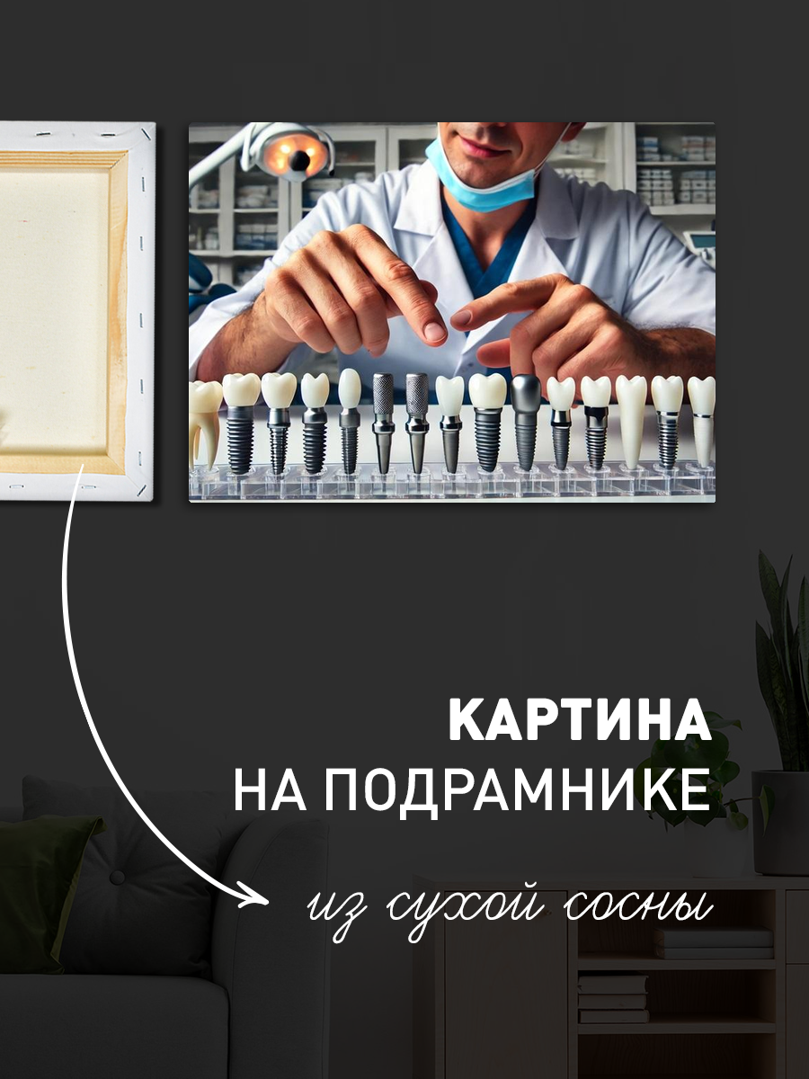 Описание: Картина 50 на 70 "Имплантация зуба" представляет собой реалистичное изображение процесса установки зубного имплантата. На картине показаны детали, которые подчеркивают важность стоматологической процедуры для восстановления улыбки. Основная идея картины заключается в том, чтобы показать, как с помощью современных технологий можно вернуть уверенность и комфорт в жизни. Уникальность данной работы заключается в тщательной проработке деталей и яркости цветовой гаммы, что делает её особенно привлекательной. Эта картина вызывает ощущение надежды и обновления, подчеркивая важность заботы о здоровье и внешнем виде. Она может стать отличным акцентом в интерьере стоматологической клиники или кабинета врача, а также украсить пространство в доме, где живут люди, заботящиеся о своем здоровье. Она идеально подойдет для современных интерьеров в стиле минимализма, а также для помещений, оформленных в светлых тонах. Разместив эту картину на стене, вы добавите в свое пространство не только эстетическое удовольствие, но и положительное настроение, а также подчеркнете внимание к деталям и заботе о себе. Это произведение искусства станет не только украшением вашего интерьера, но и напоминанием о важности здоровья и улыбки.