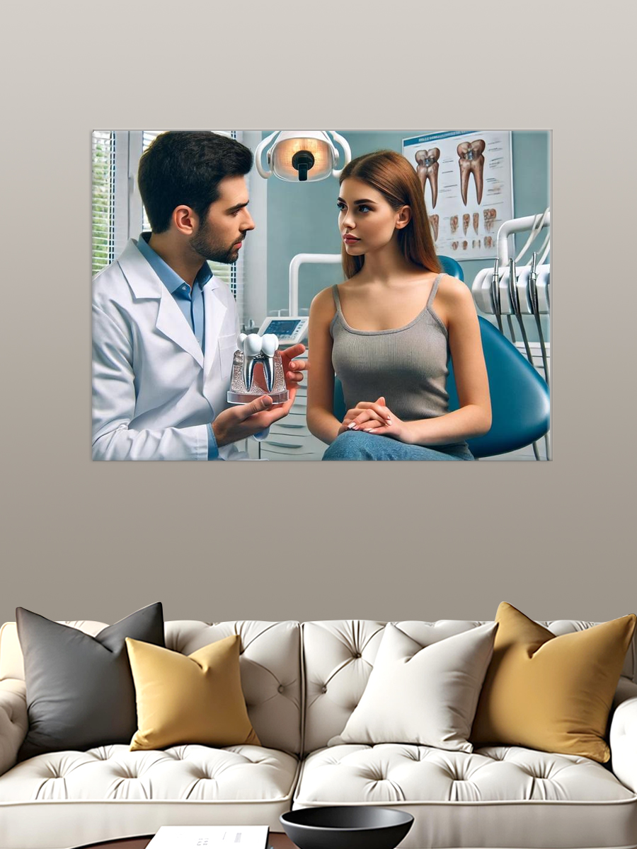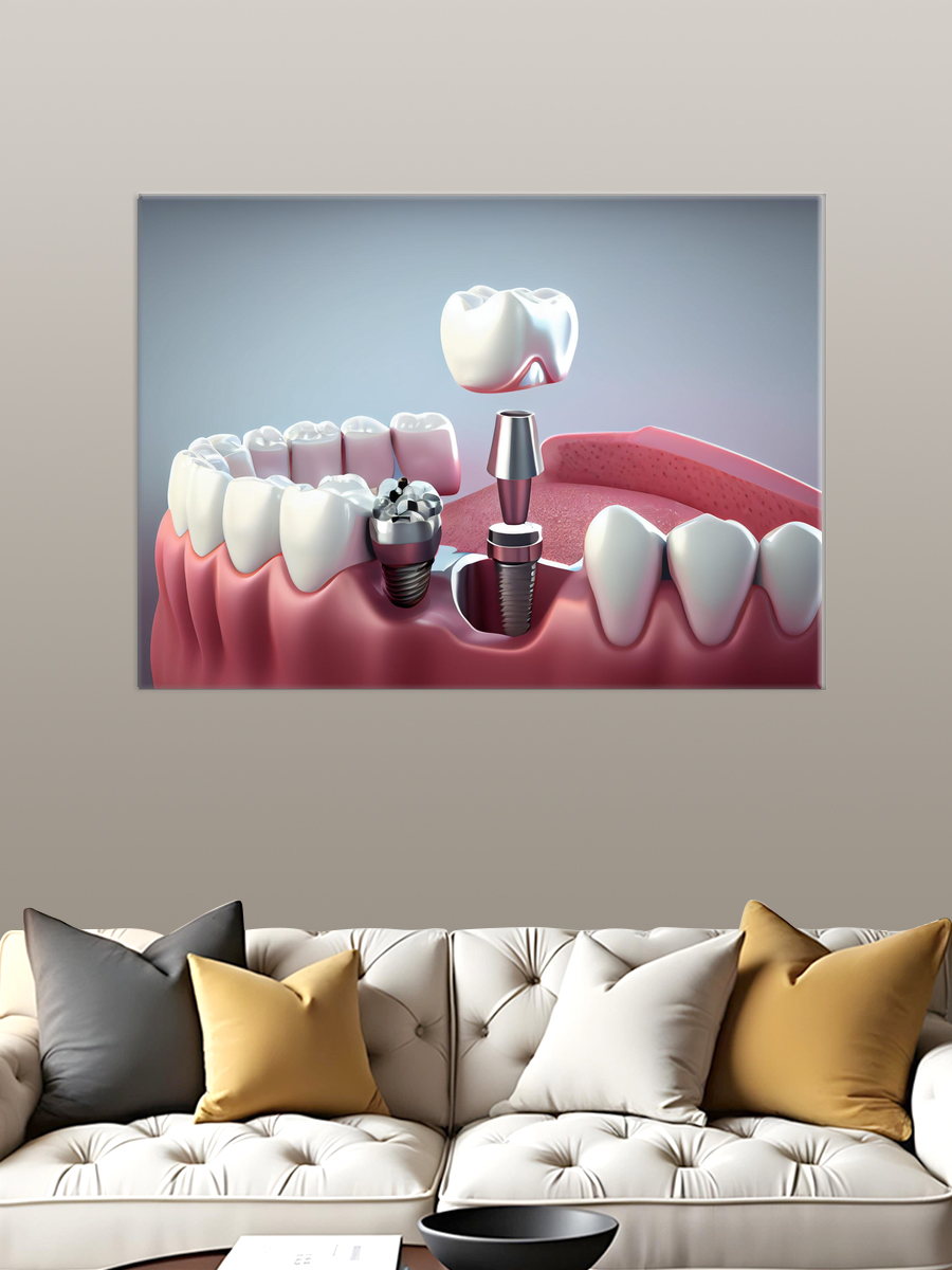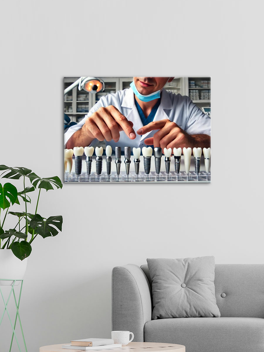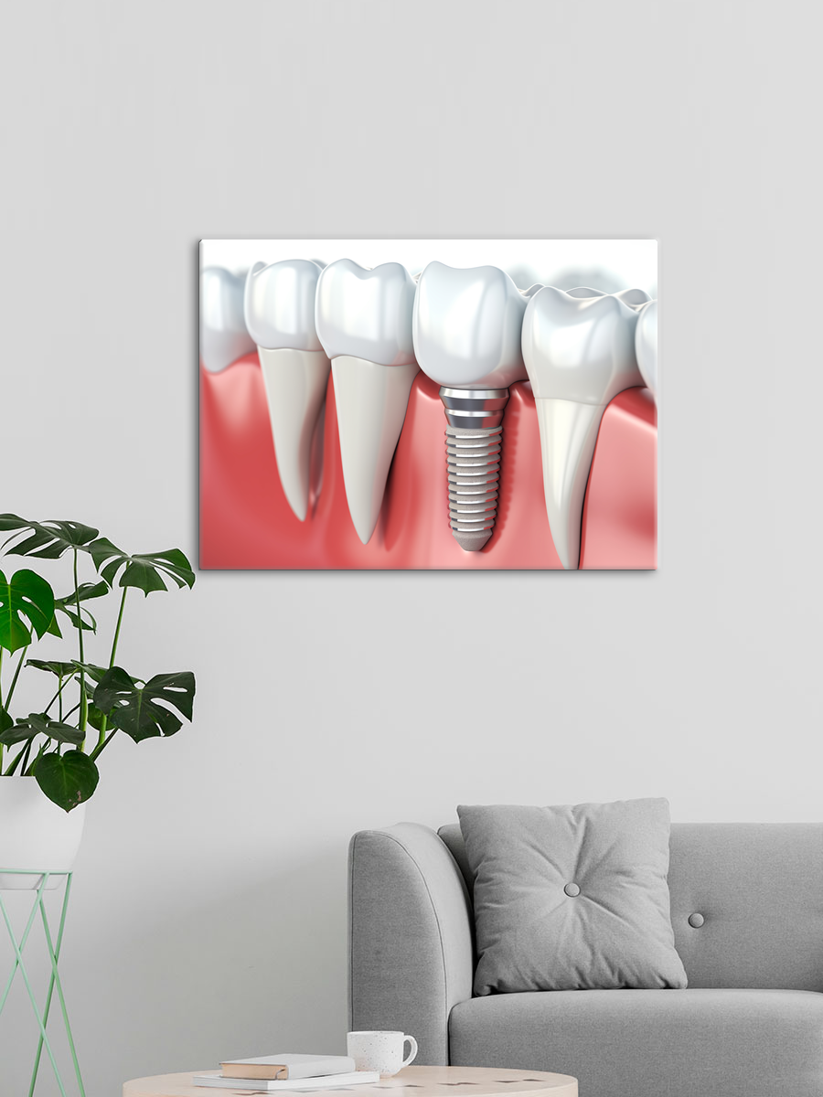 Описание: Картина 50 на 70 "Имплантация зуба" представляет собой реалистичное изображение процесса установки зубного имплантата. На картине показаны детали, которые подчеркивают важность стоматологической процедуры для восстановления улыбки. Основная идея картины заключается в том, чтобы показать, как с помощью современных технологий можно вернуть уверенность и комфорт в жизни. Уникальность данной работы заключается в тщательной проработке деталей и яркости цветовой гаммы, что делает её особенно привлекательной. Эта картина вызывает ощущение надежды и обновления, подчеркивая важность заботы о здоровье и внешнем виде. Она может стать отличным акцентом в интерьере стоматологической клиники или кабинета врача, а также украсить пространство в доме, где живут люди, заботящиеся о своем здоровье. Она идеально подойдет для современных интерьеров в стиле минимализма, а также для помещений, оформленных в светлых тонах. Разместив эту картину на стене, вы добавите в свое пространство не только эстетическое удовольствие, но и положительное настроение, а также подчеркнете внимание к деталям и заботе о себе. Это произведение искусства станет не только украшением вашего интерьера, но и напоминанием о важности здоровья и улыбки.