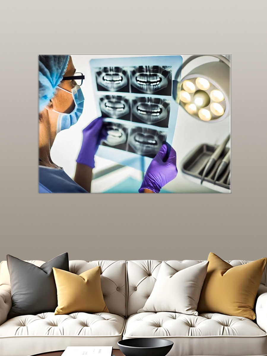 Описание: Картина 50 на 70 "Улыбка здоровья" изображает стоматолога, внимательно изучающего рентгеновские снимки. Основная идея картины заключается в важности заботы о здоровье зубов и профессионализме врачей, что делает её уникальной в своём роде. Эта работа вызывает впечатления надежности и уверенности, передавая чувство заботы и внимания к пациентам. Она наполняет пространство положительной энергией и подчеркивает важность здоровья. Картина прекрасно впишется в интерьер стоматологических клиник, медицинских учреждений, а также в домашние кабинеты или учебные заведения, создавая атмосферу профессионализма и доверия. Благодаря своим мягким цветовым решениям, она также подойдет для спокойных и уютных пространств, таких как гостиные или офисы, где ценится комфорт и эстетика.