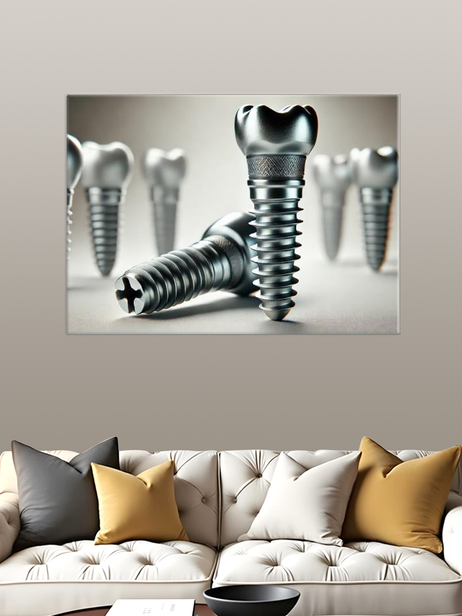 Описание: Картина 50 на 70 "Загадка природы" представляет собой удивительное изображение, на котором изображены металлические зубные имплантаты, выполненные с высокой степенью детализации. Основная идея картины заключается в сочетании науки и эстетики, что делает её уникальной в своём роде. Каждый имплантат олицетворяет надежду на восстановление и гармонию, что вызывает глубокие размышления о здоровье и красоте. Эта картина вызывает чувство удивления и восхищения, приглашая зрителя задуматься о прогрессе медицины и её роли в жизни человека. Она дарит ощущение спокойствия и уверенности, что особенно важно в современном мире, полном стрессов и неопределенности. Картина идеально впишется в интерьер современного кабинета врача, стоматологической клиники или домашнего кабинета. Её можно разместить на стене над рабочим столом или в зоне ожидания, чтобы создать атмосферу доверия и уюта. Уникальный стиль и современная тематика картины привлекут внимание как профессионалов, так и любителей искусства, подчеркивая вашу индивидуальность и вкус.